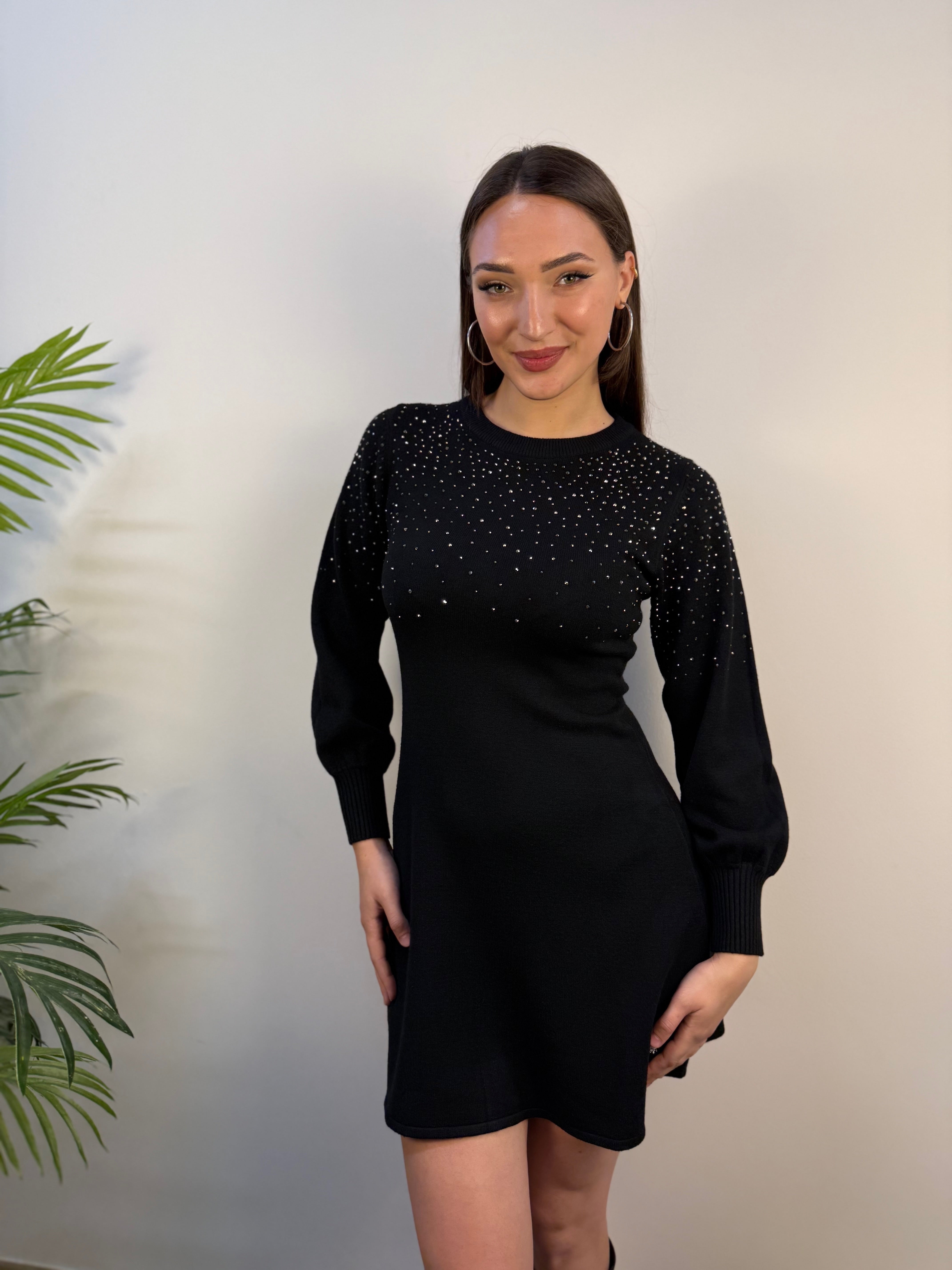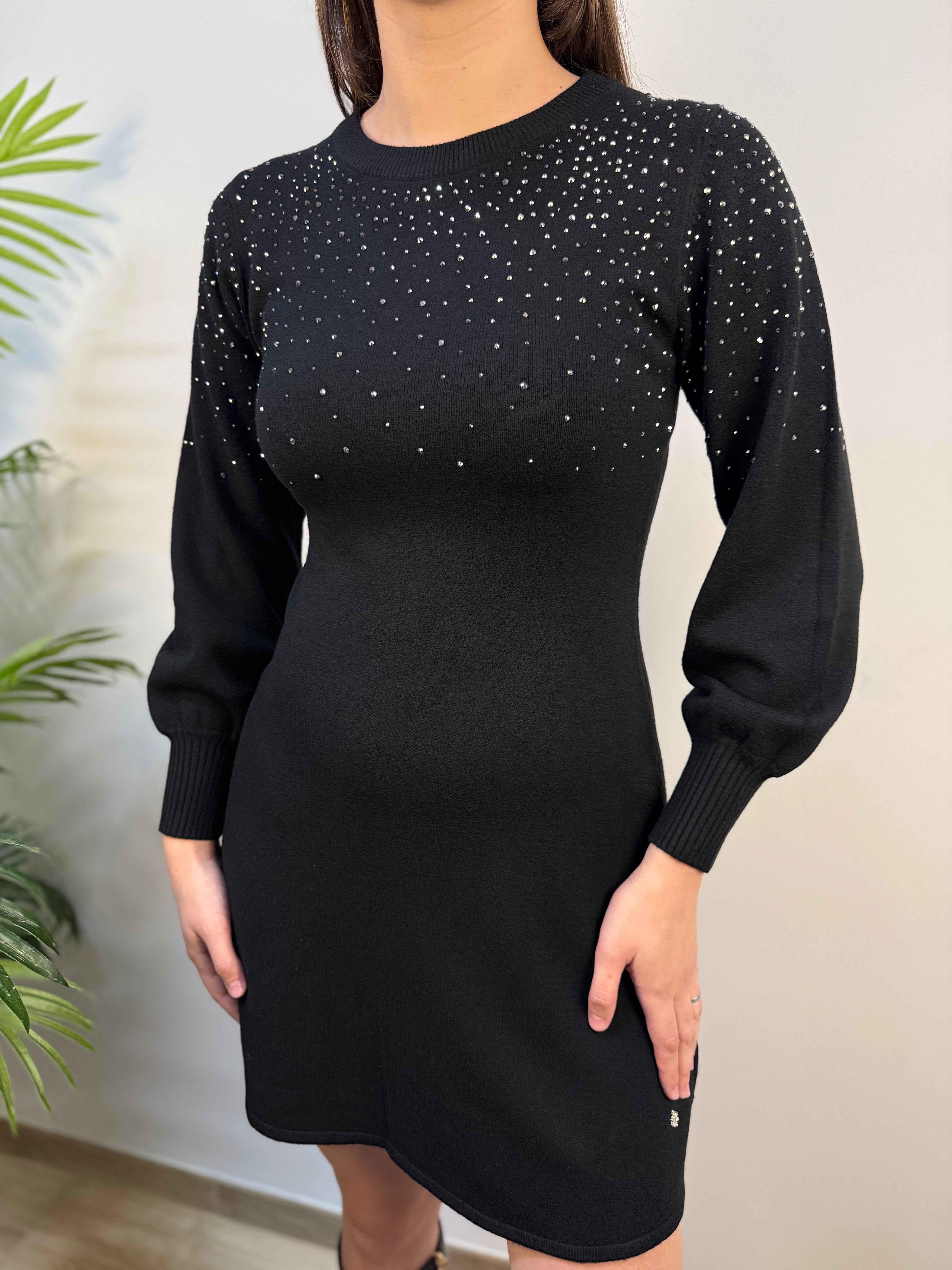 Abito in maglia con strass e maniche balloon