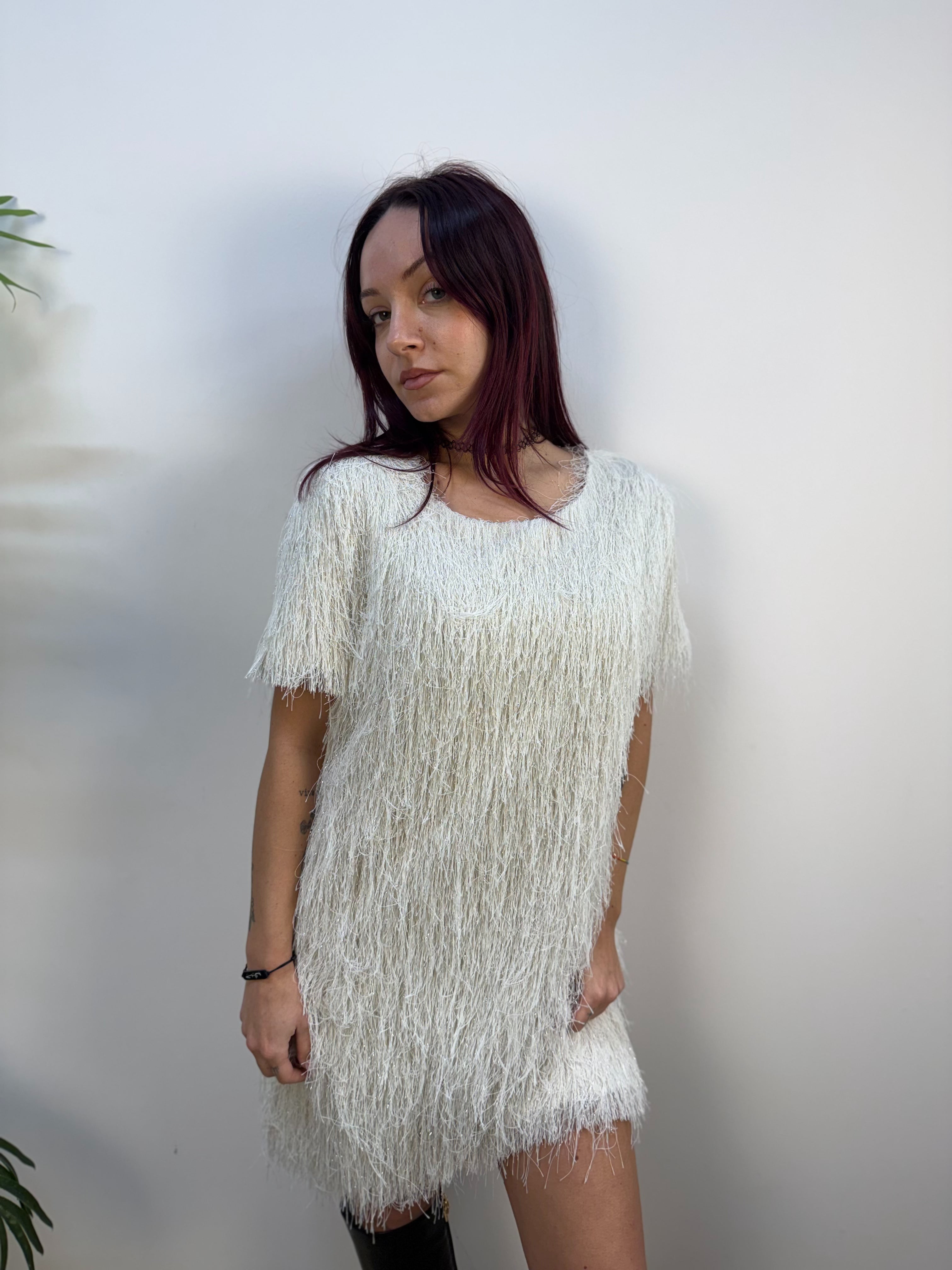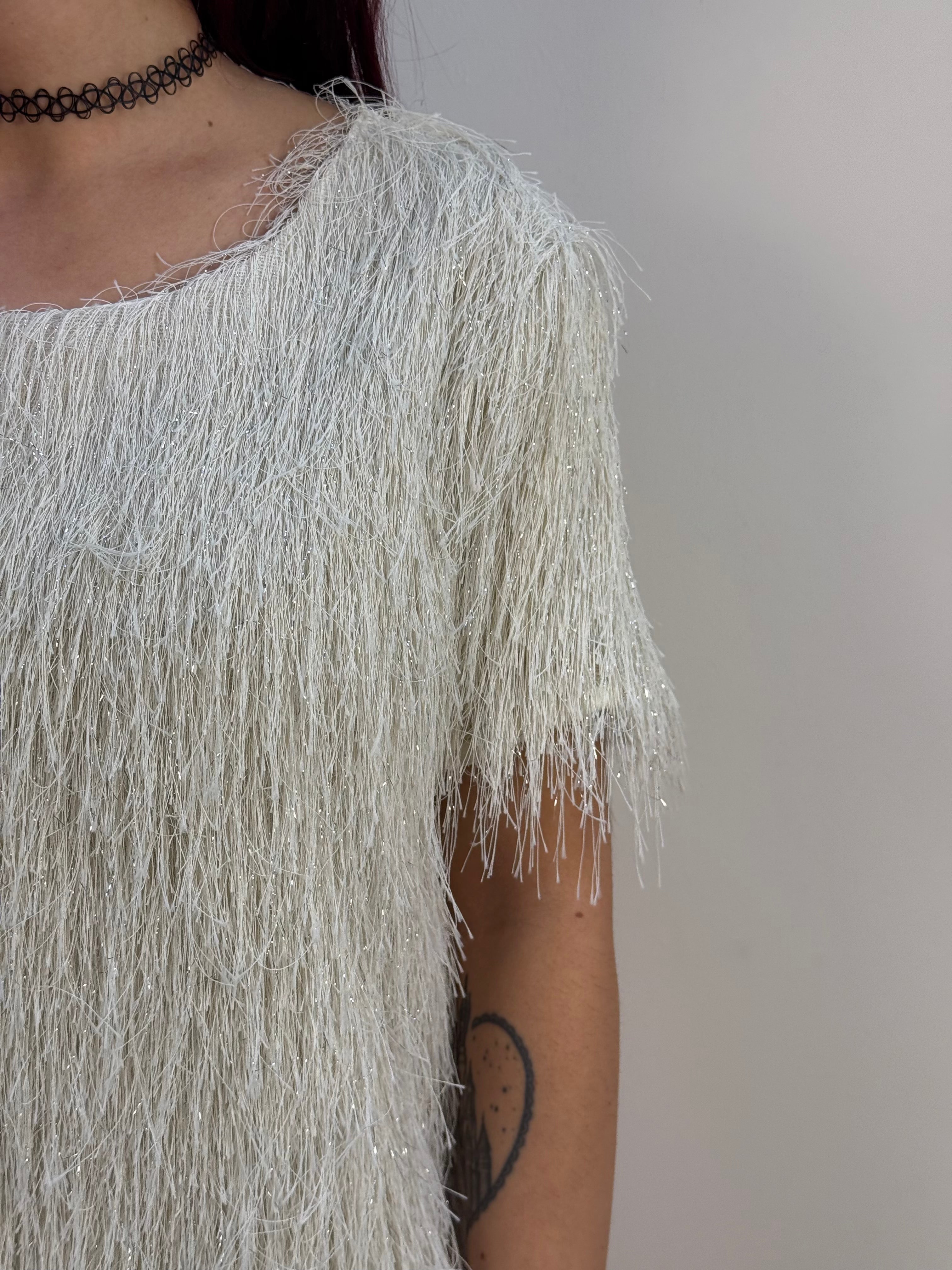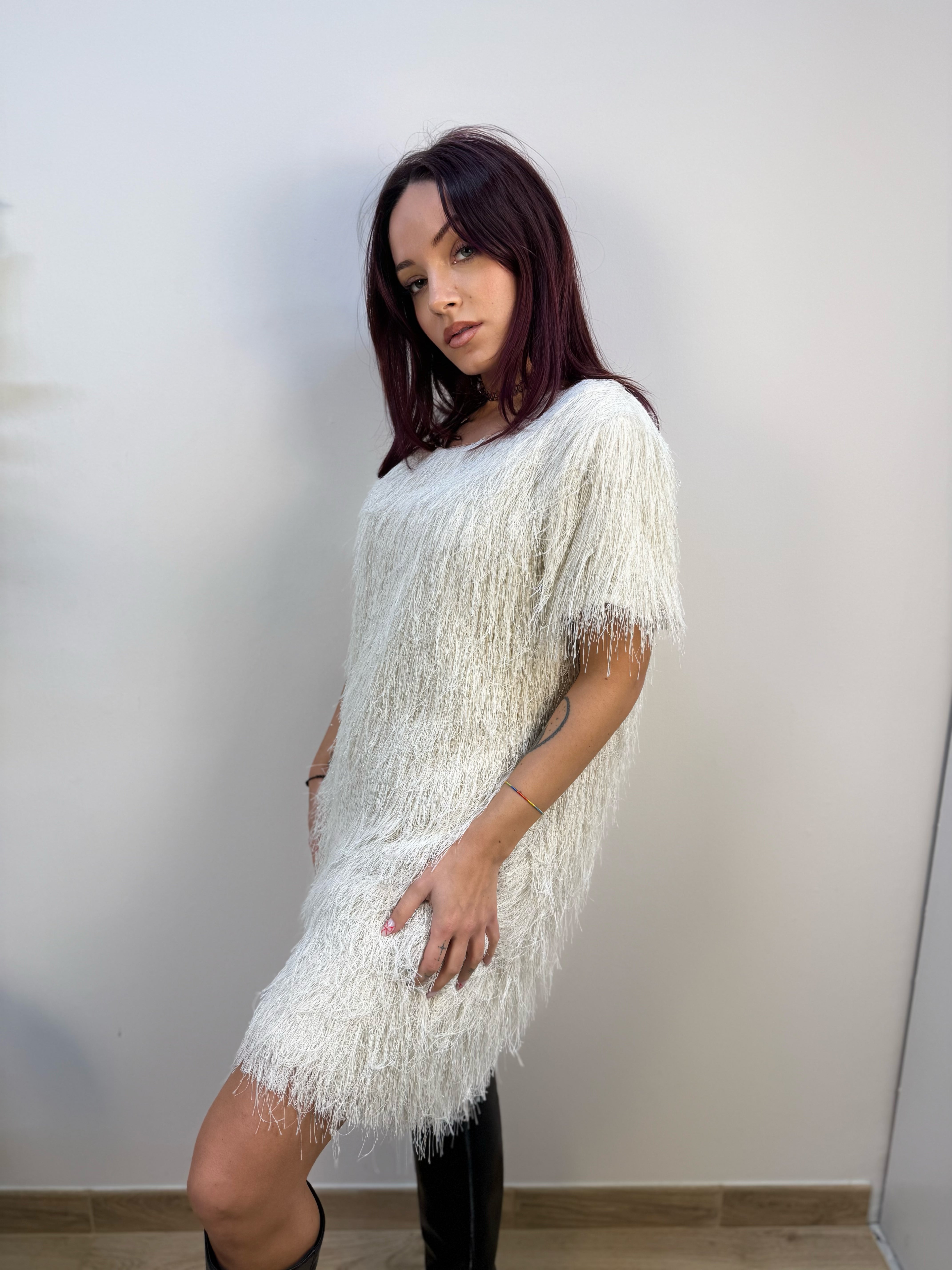 Abito AKE a tubo ricoperto di fili che creano una texture morbida con punti luce in micro lurex.