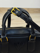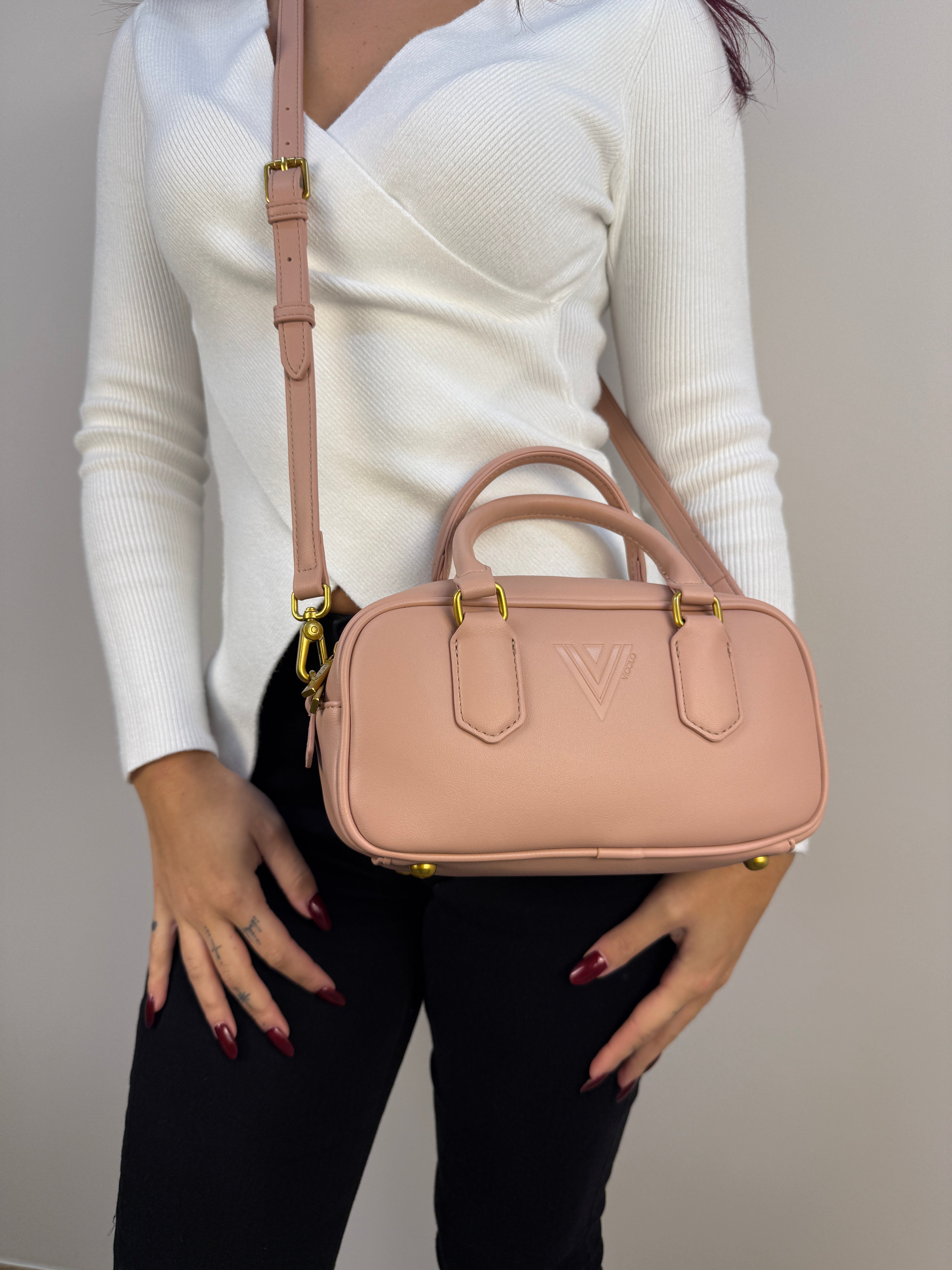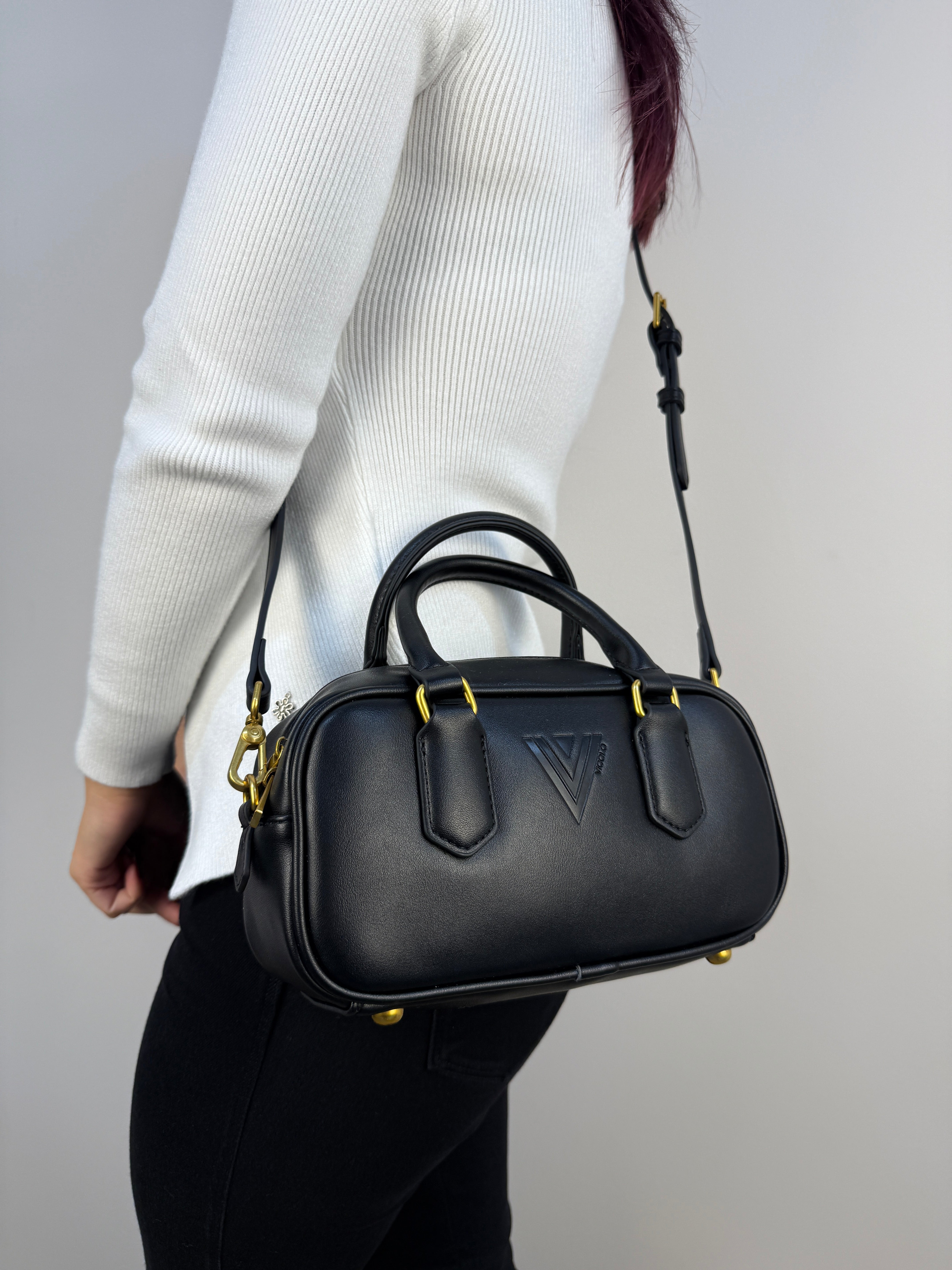 Borsetta in similpelle con manici rigidi e tracolla regolabile