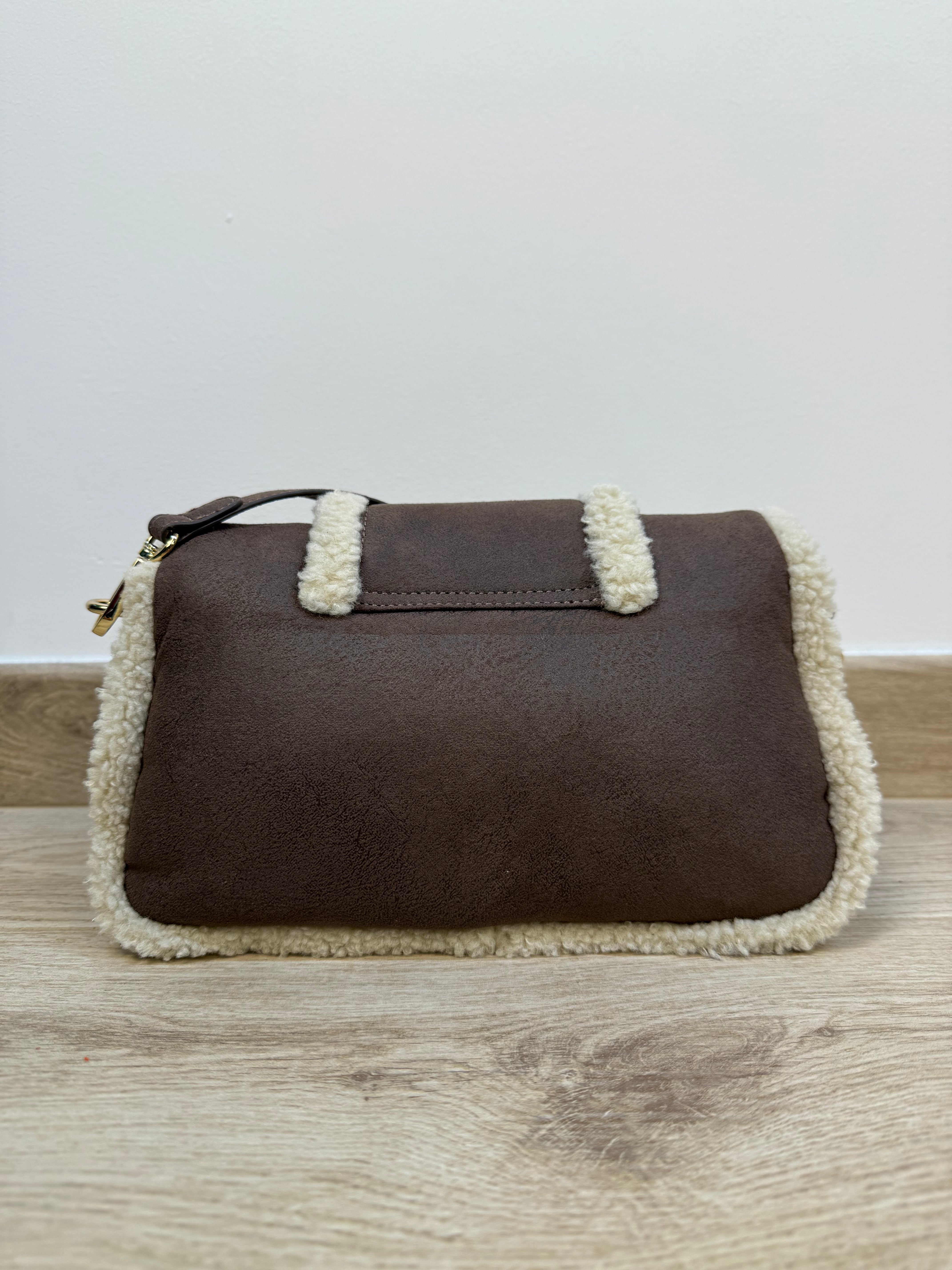 Borsa morbida effetto graffiato con rivestimento simil montone
