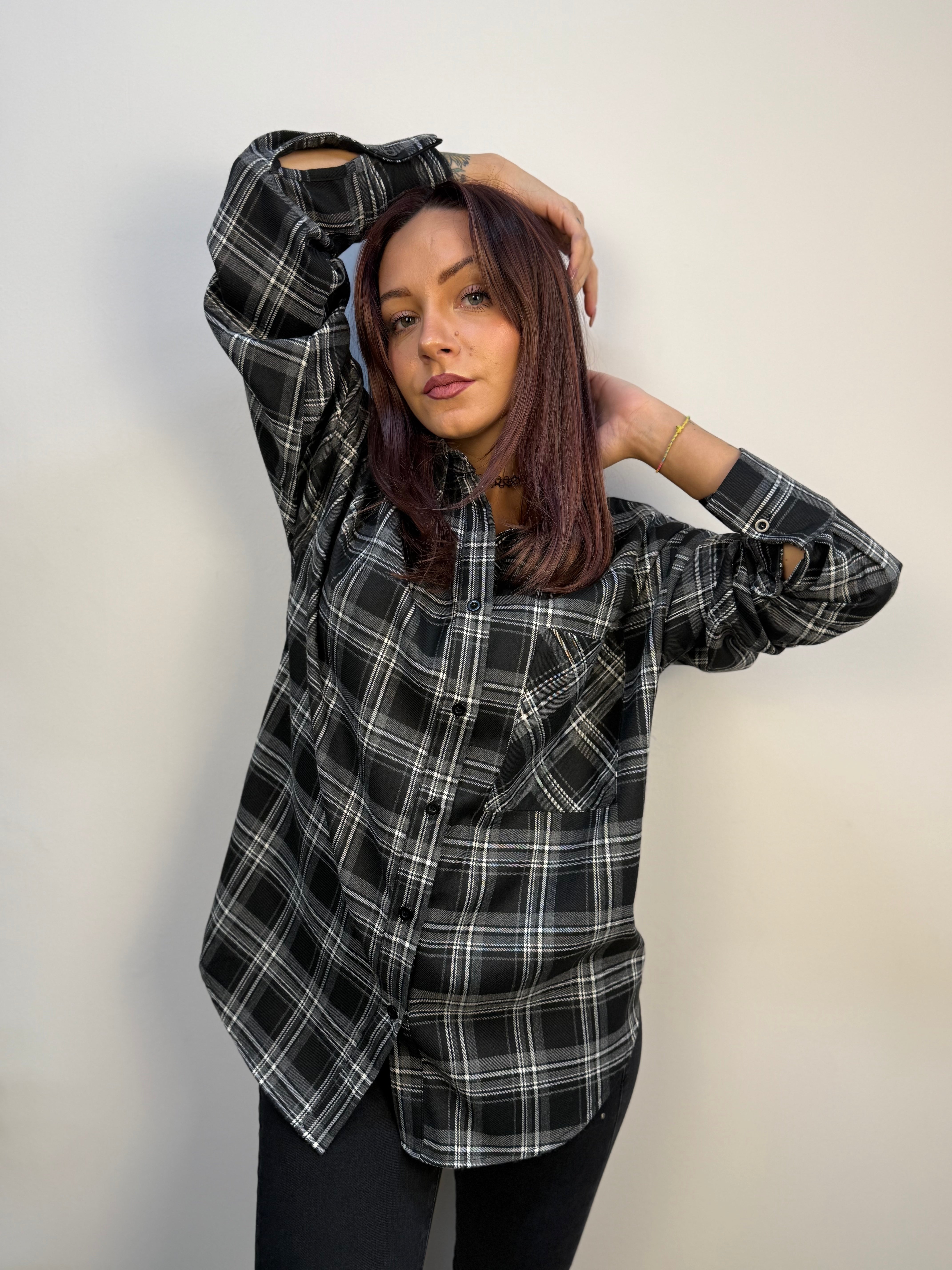 Camicia You Decide a quadri dal motivo check delicato, realizzata in tessuto caldo e morbido per un comfort avvolgente. La vestibilità oversize dona uno stile rilassato e contemporaneo, mentre il taschino frontale e i bottoni ad asola tono su tono completano il design con sobria eleganza.