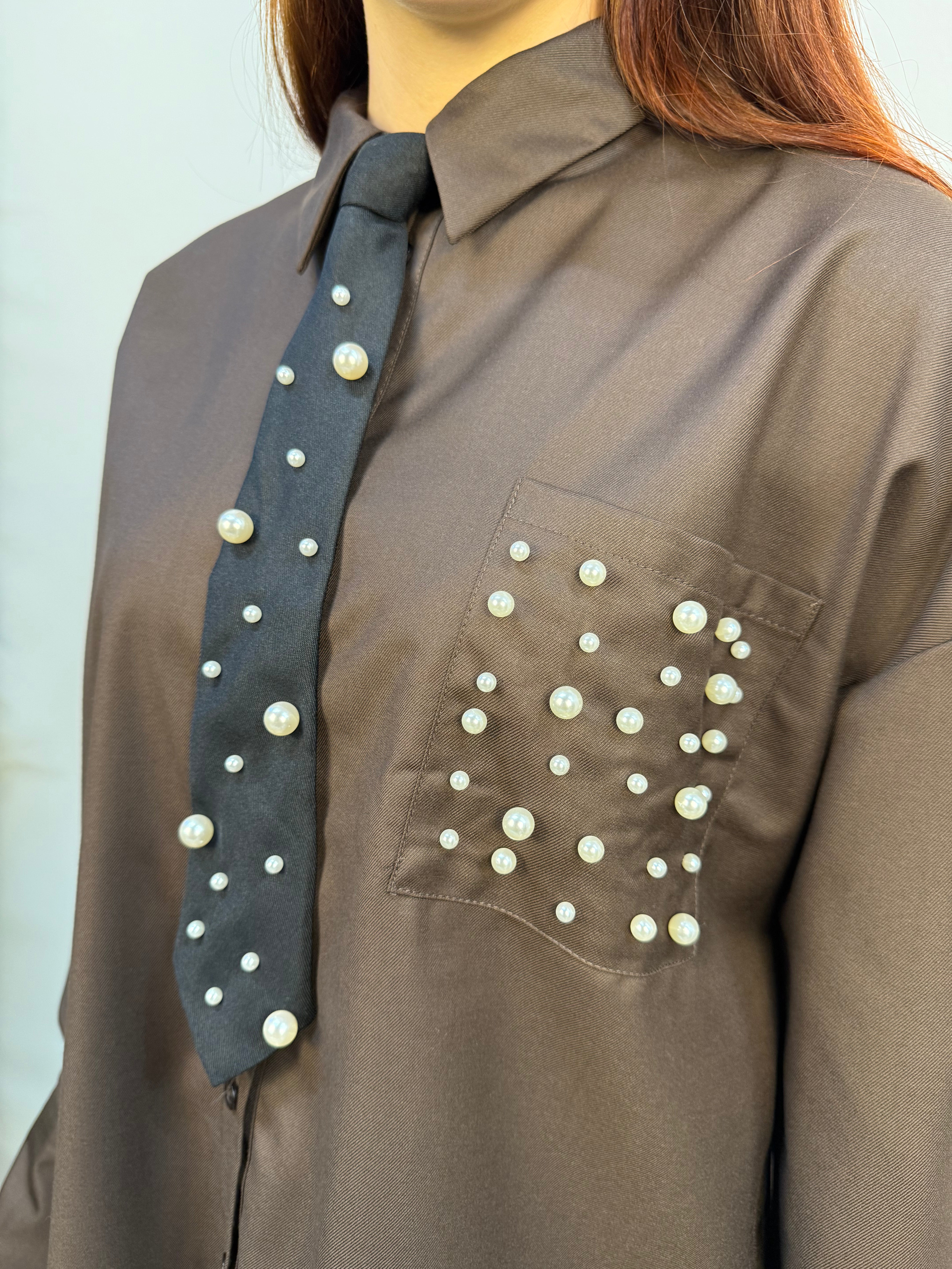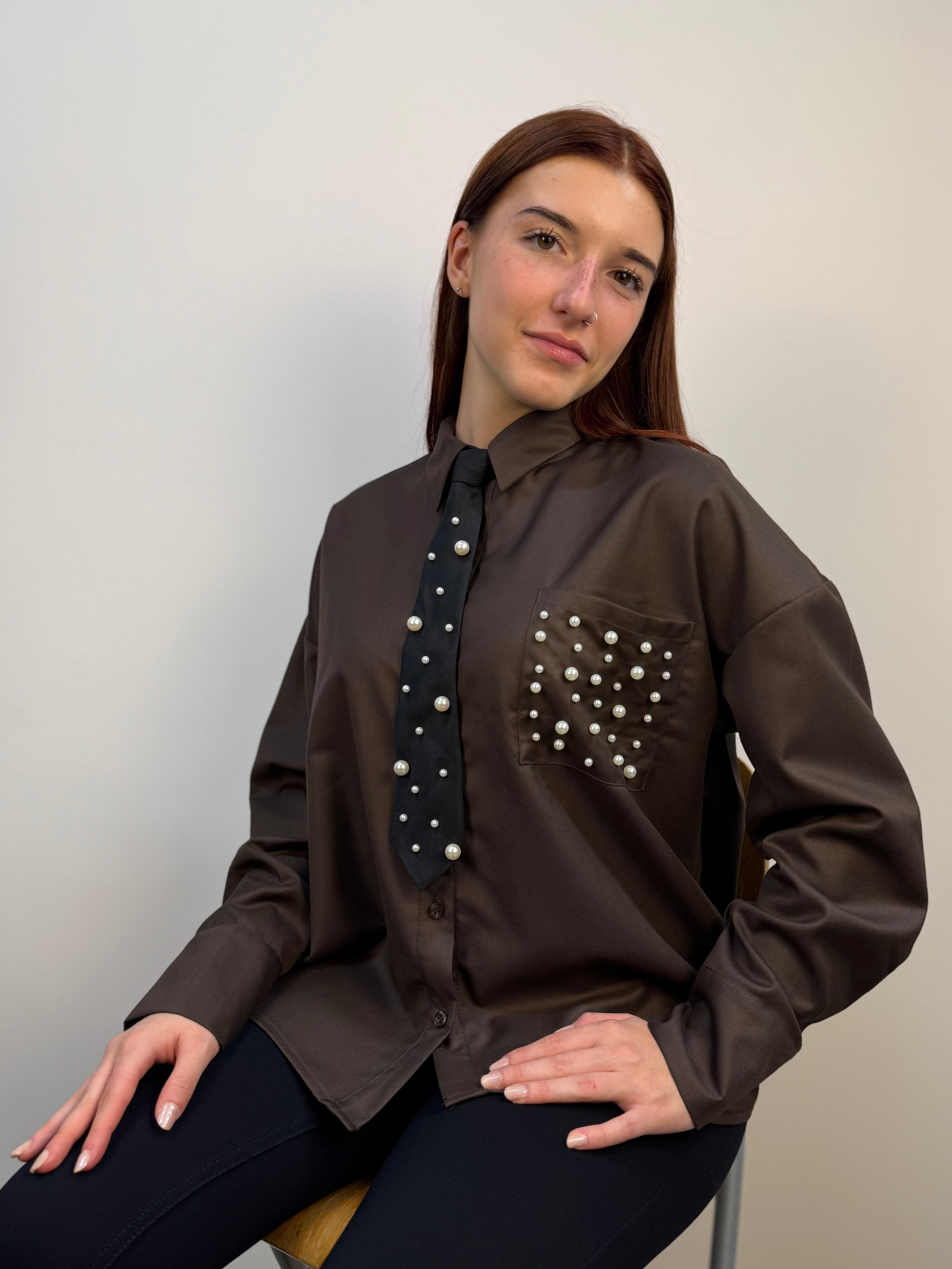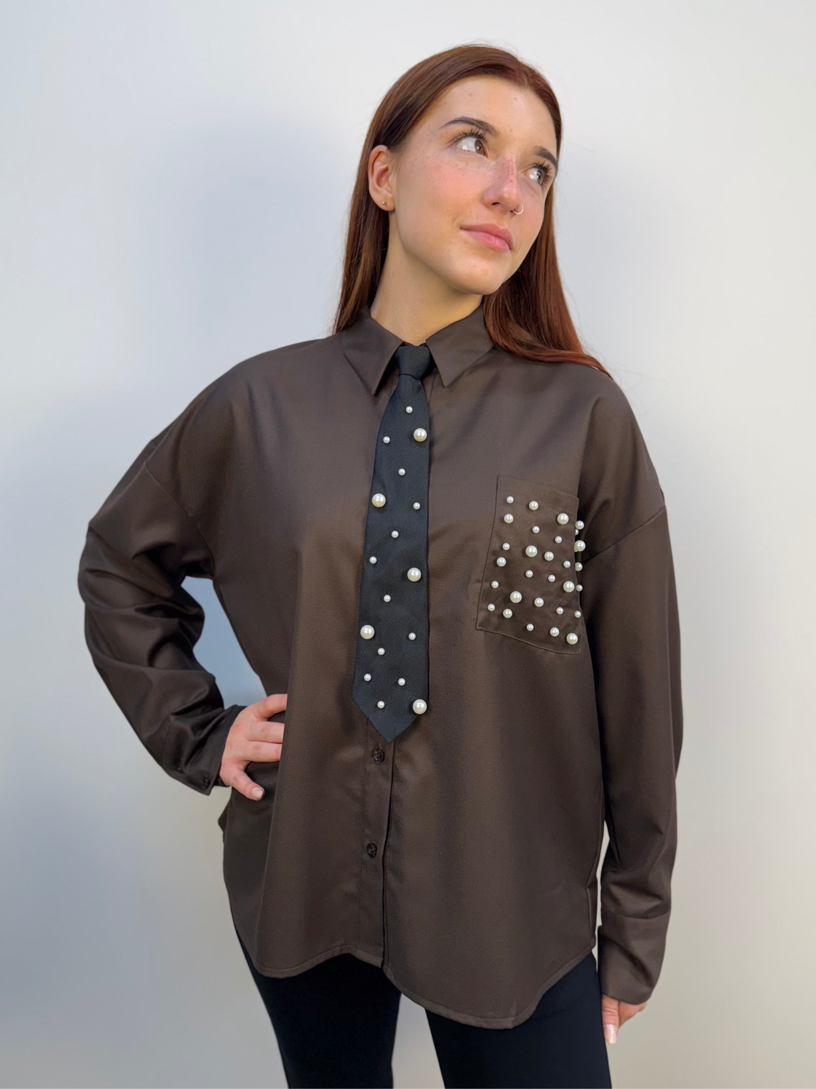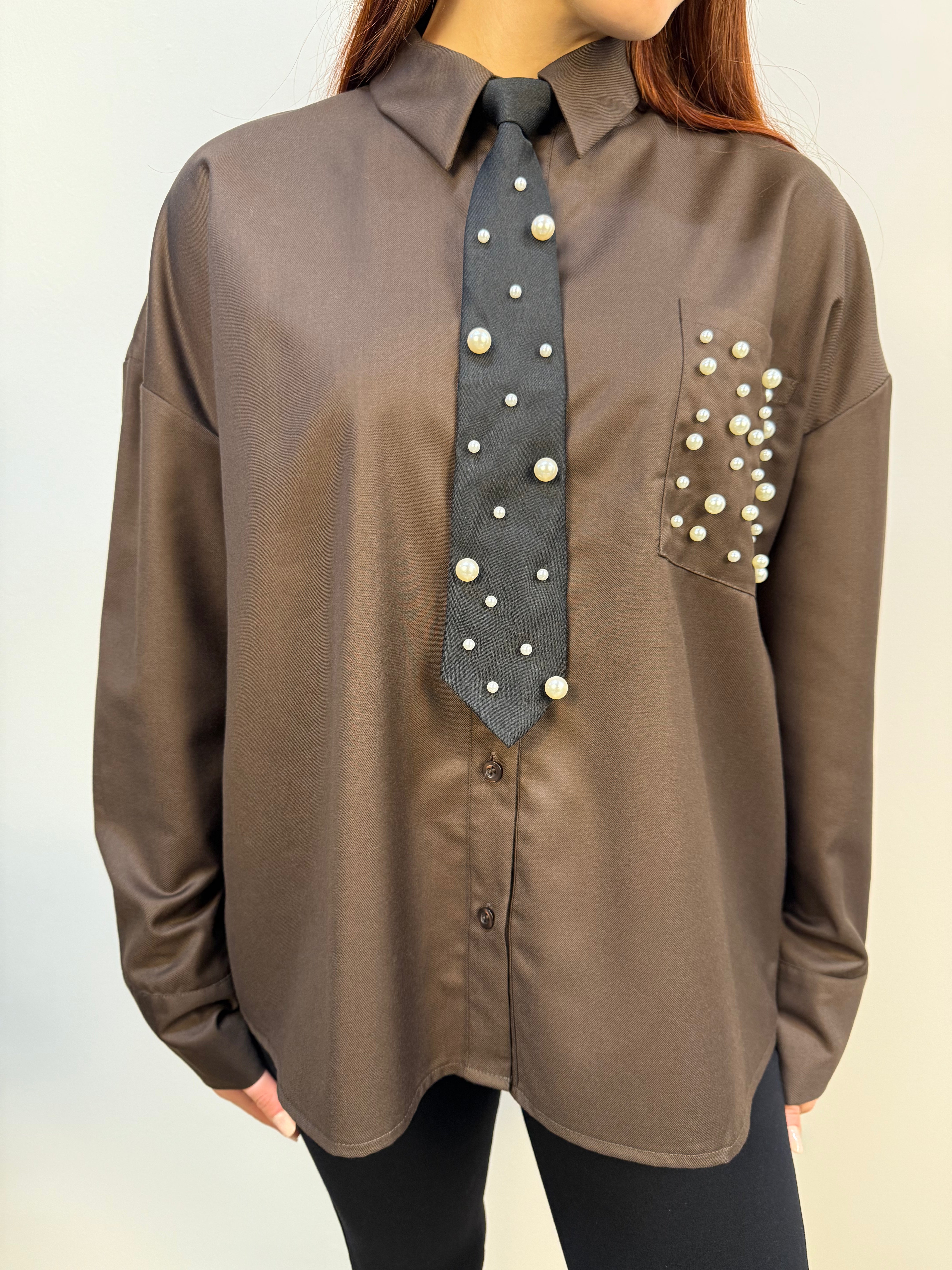 Morbida, elegante e con quel tocco di originalità che fa la differenza: questa camicia oversize firmata You Decide è pensata per chi ama distinguersi con stile, senza rinunciare al comfort. Il tessuto leggero avvolge delicatamente la silhouette, mentre la linea ampia dona un’allure rilassata ma curata. I bottoni ad asola aggiungono un dettaglio raffinato, così come il taschino frontale impreziosito da piccole perle applicate, che richiamano il decoro della cravatta nera elasticizzata, facilmente removibile. Un accessorio versatile che puoi scegliere di indossare o meno, a seconda dell’occasione o del tuo mood: più classica con, più minimal senza. Perfetta da abbinare a pantaloni sartoriali, denim o gonne strutturate, questa camicia è la scelta ideale per passare con disinvoltura dal lavoro all’aperitivo, con un solo gesto.