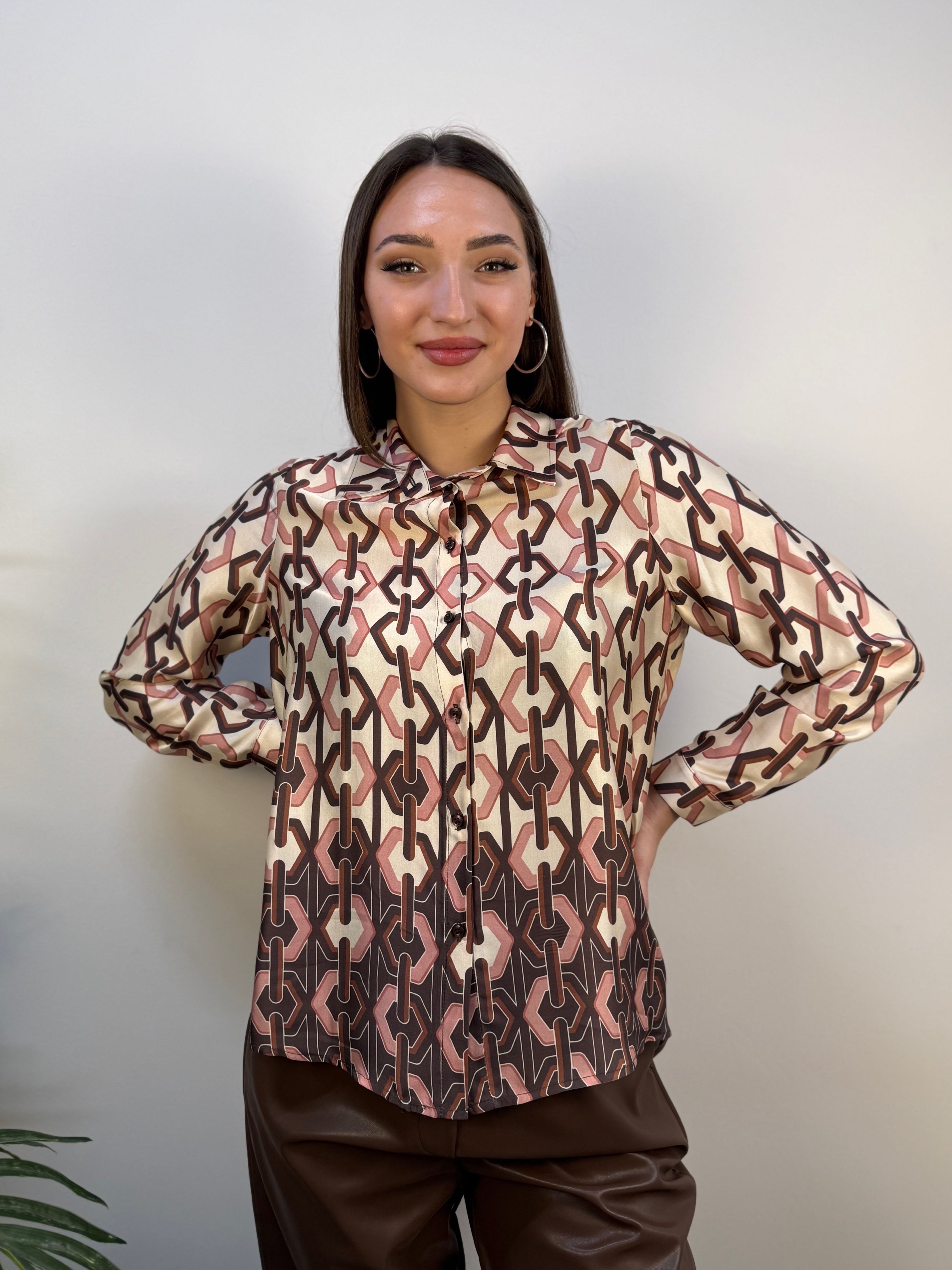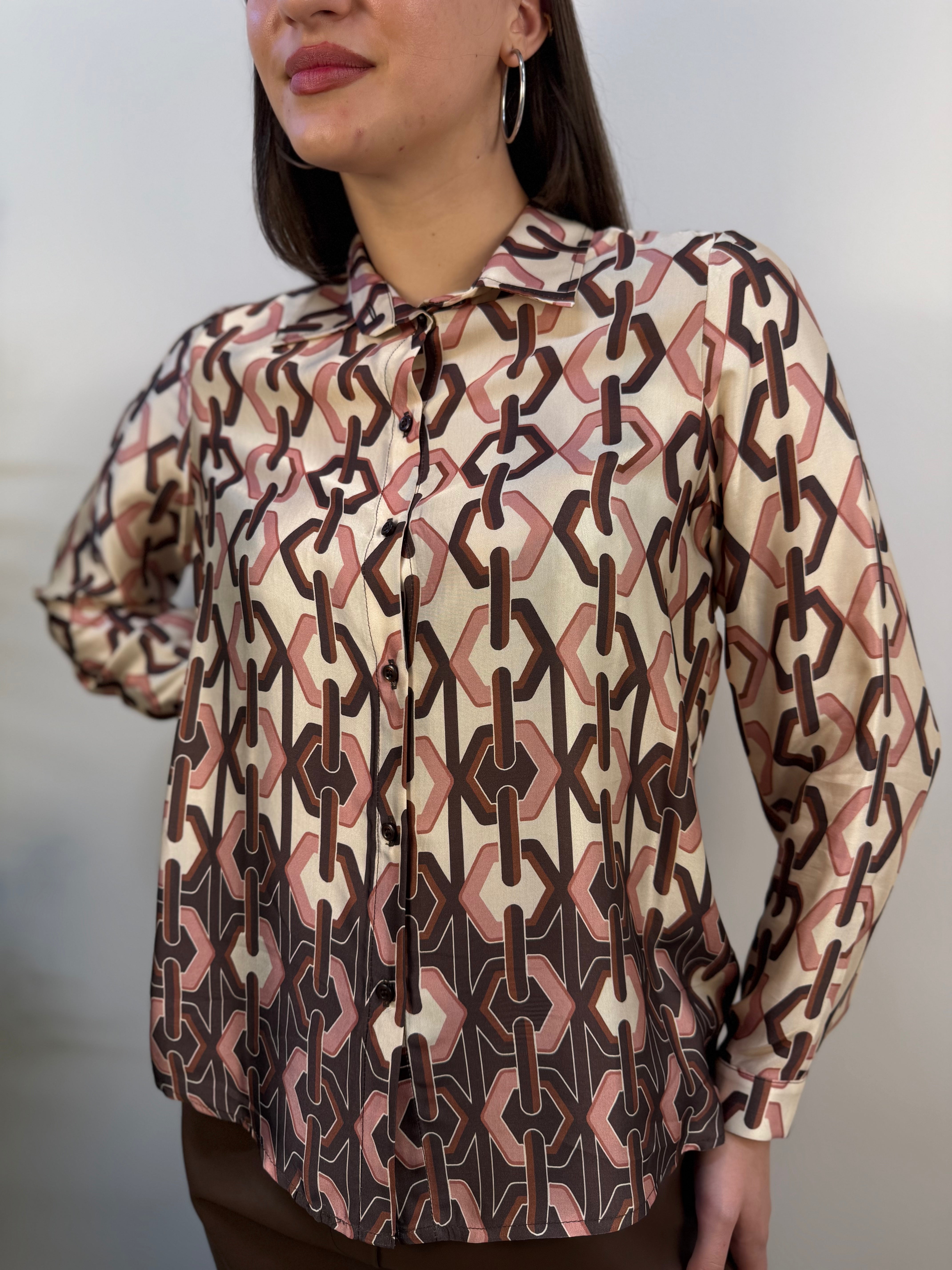 Camicia in viscosa con fantasia nei toni del beige, marrone e rosa