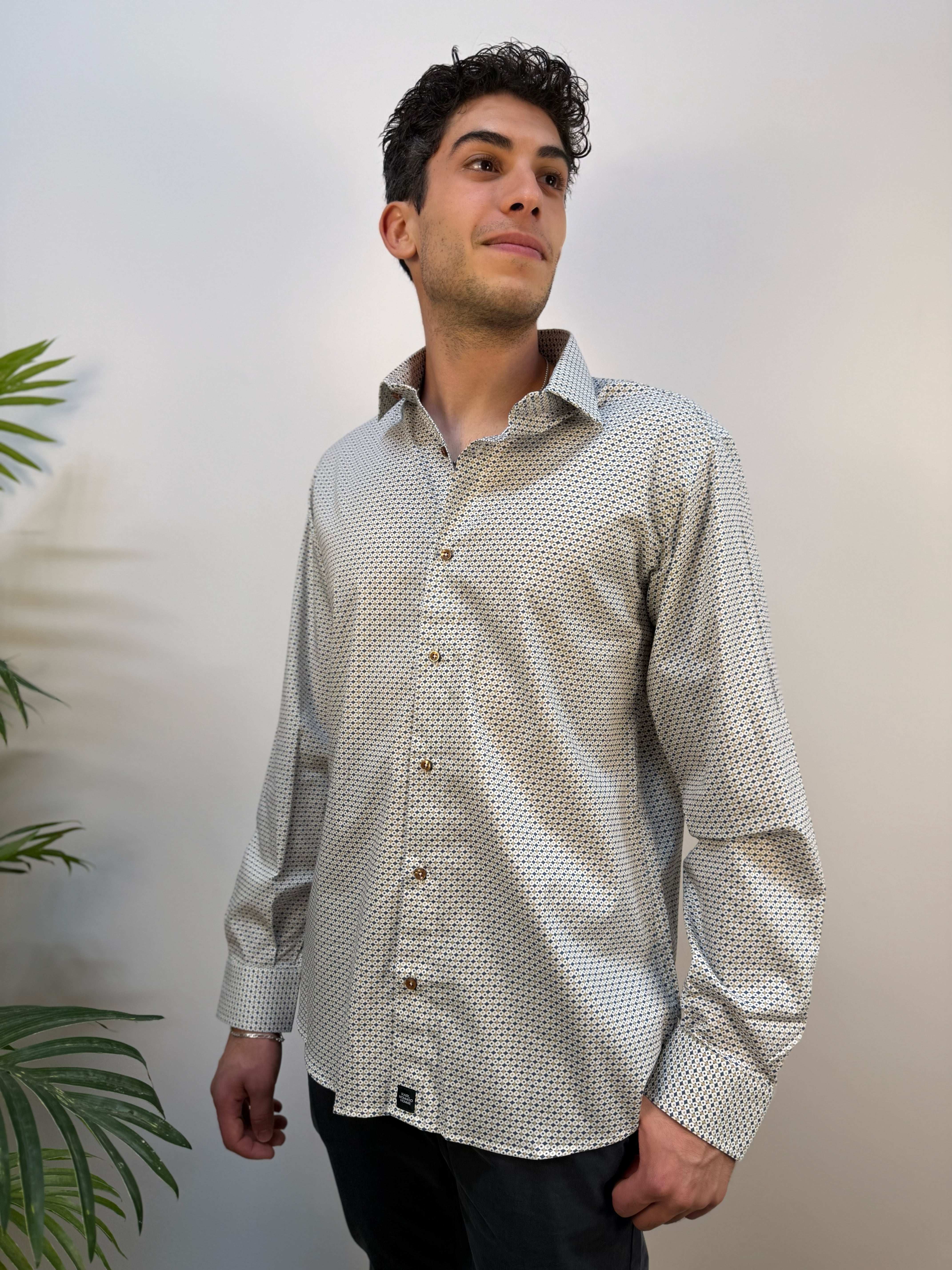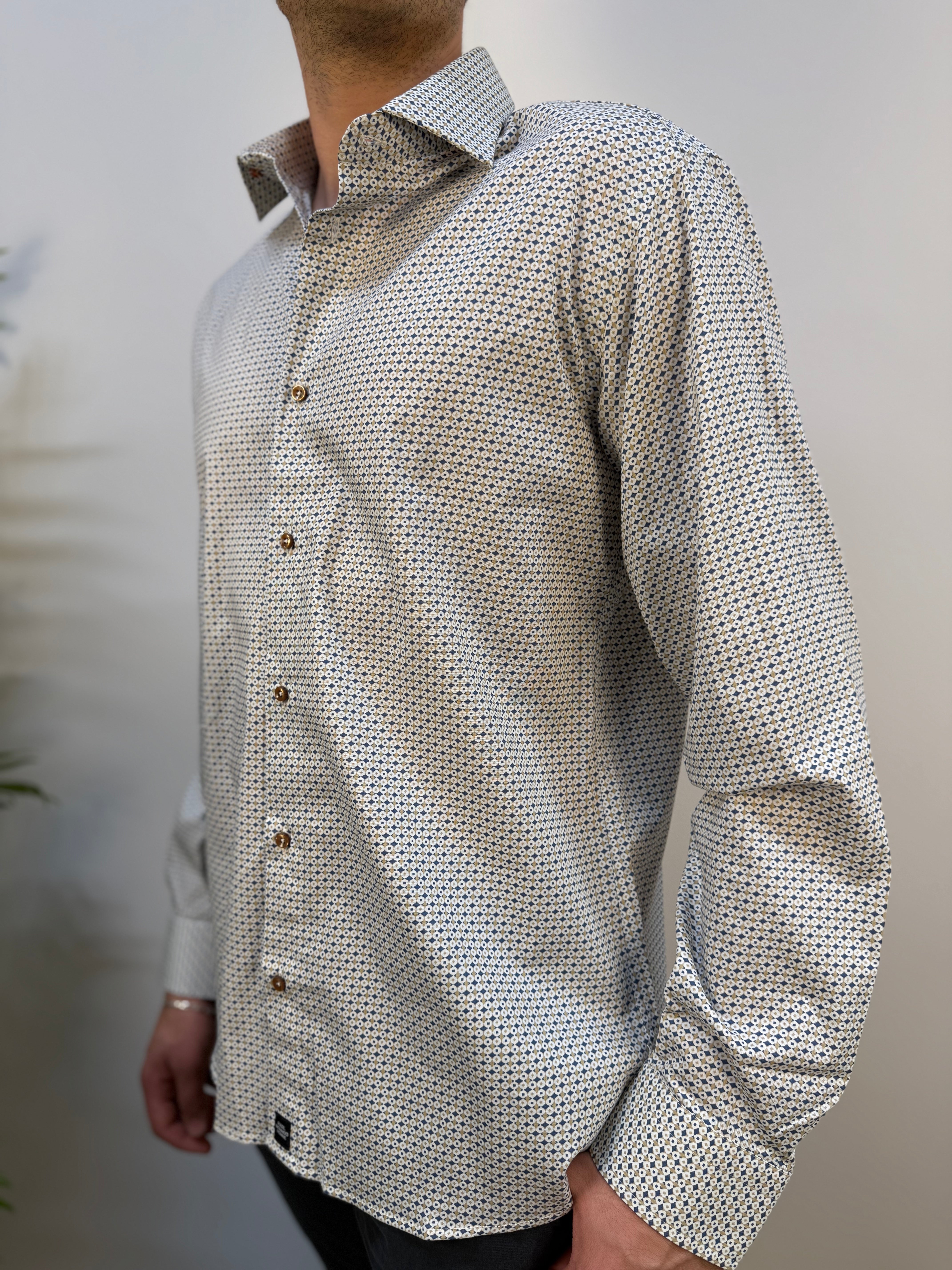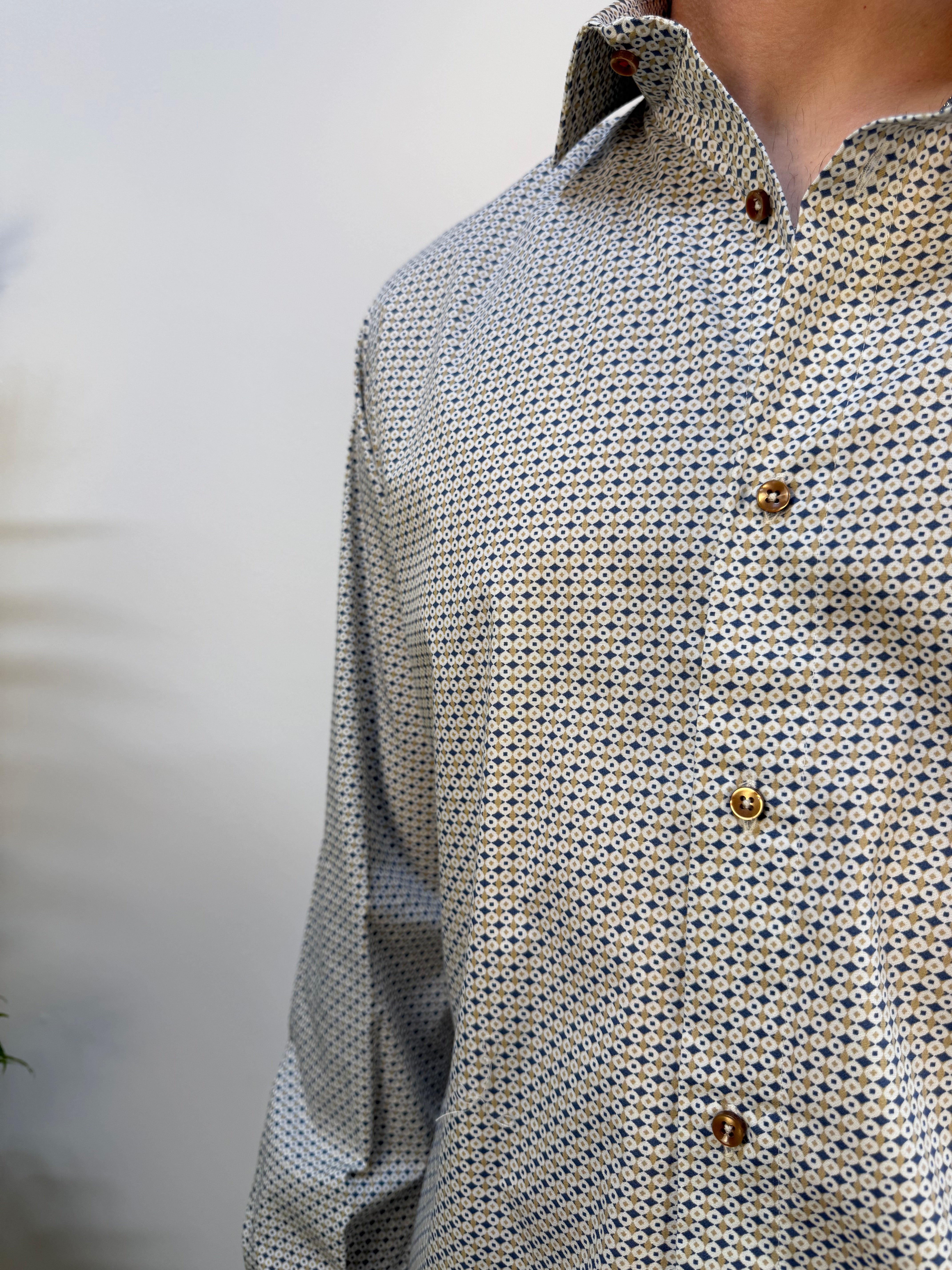 Camicia microfantasia ocra - navy