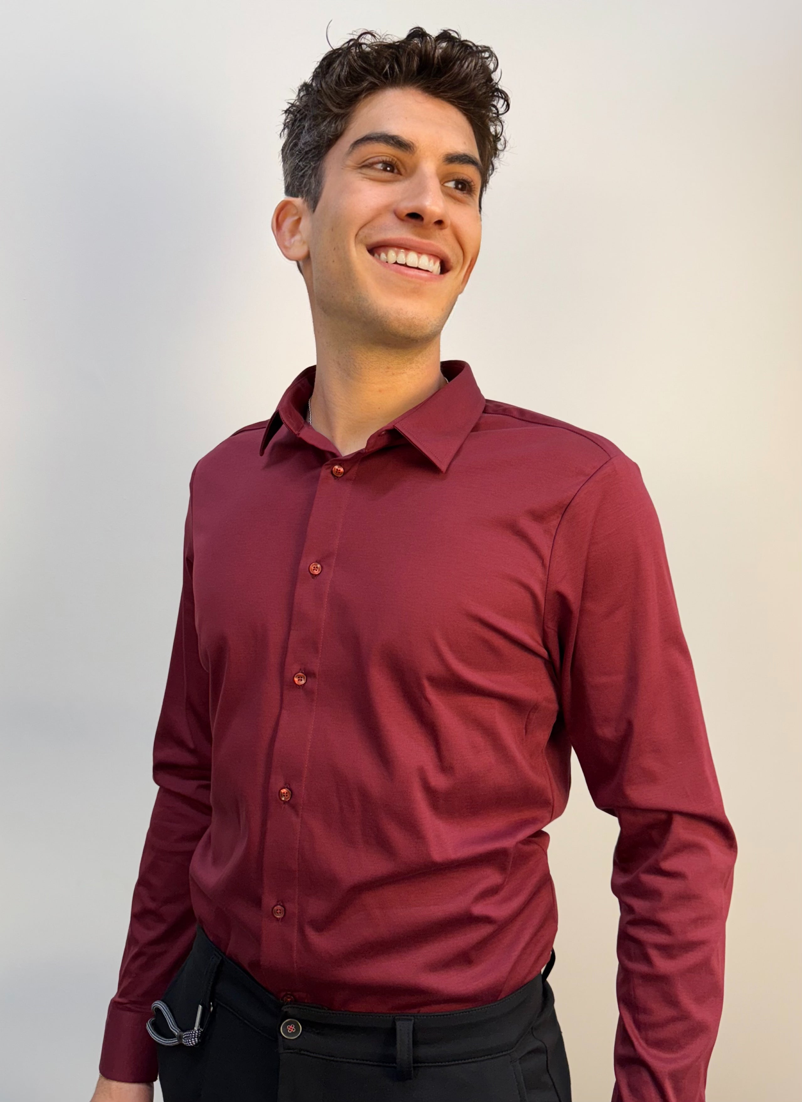 Morbidezza, leggerezza e stile si incontrano in questa camicia Karl Mommoo in modal e cotone, interamente Made in Italy. Il tessuto naturale e traspirante regala una sensazione di comfort estremo, ideale per chi cerca eleganza e praticità in un solo capo. Il delicato color bordeaux aggiunge un tocco raffinato e versatile, perfetto da abbinare a tonalità neutre o più scure per creare look sempre armoniosi. Leggera, fluida e piacevole al tatto, è la camicia ideale per ogni stagione.