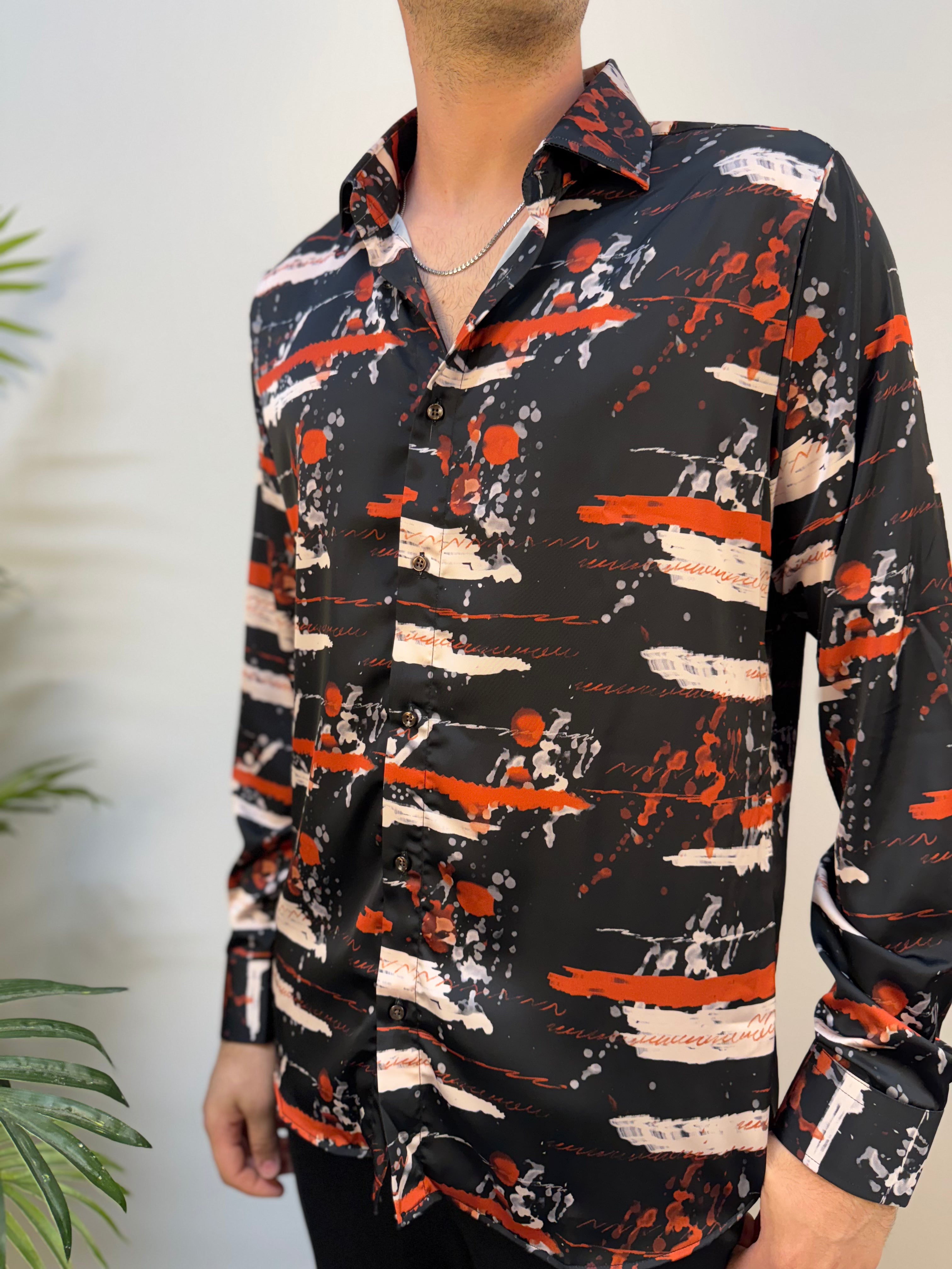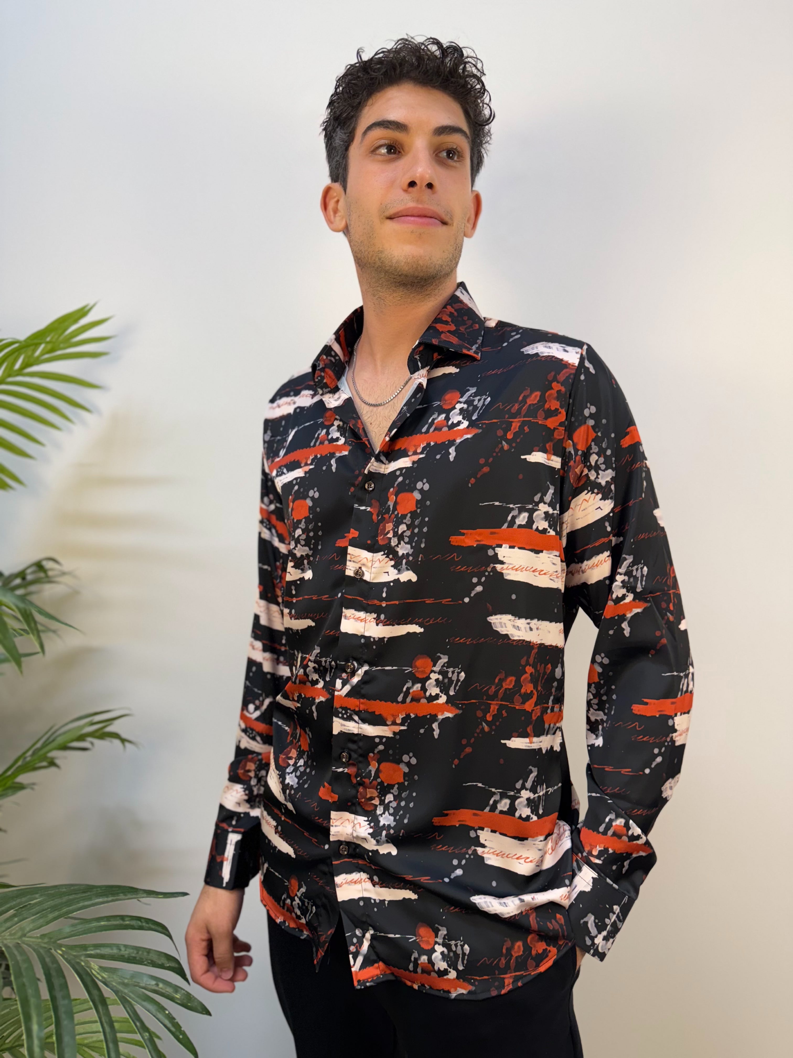 Moderna e pratica, questa camicia Karl Mommoo in tessuto no stiro unisce comfort e stile in un unico capo. Il tessuto morbido e fluido garantisce una vestibilità impeccabile senza bisogno di stiratura, ideale per chi desidera un look sempre curato con il minimo sforzo. La fantasia astratta nei toni del rosso e del bianco su sfondo nero dona carattere e personalità, mantenendo un’eleganza contemporanea e facilmente abbinabile. Perfetta sia per l’ufficio che per il tempo libero.