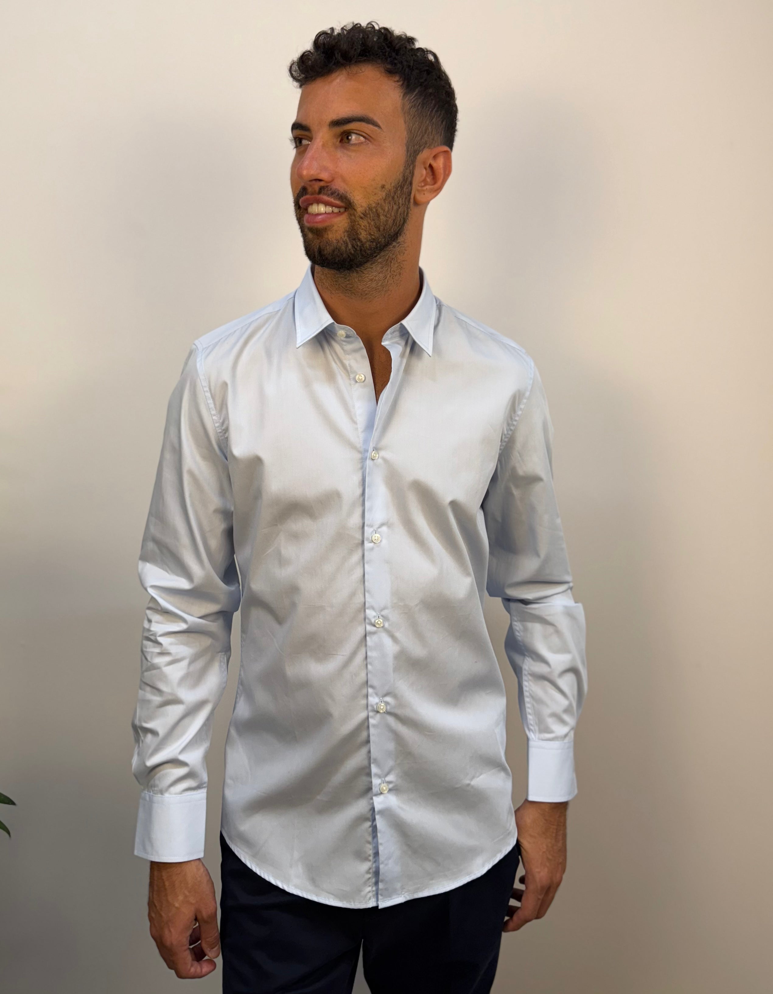 Camicia basica Antony Morato, proposta nelle eleganti varianti bianco e celeste, è un capo versatile pensato per chi cerca uno stile pulito ma raffinato. La vestibilità slim fit (sfiancata) valorizza la silhouette senza rinunciare al comfort, rendendola ideale sia per contesti formali che per outfit più casual. Il design minimal è impreziosito da un piccolo dettaglio metallico sui polsi, che dona un tocco moderno e distintivo. I bottoni ad asola trasparenti completano il look con sobrietà e discrezione, mantenendo l’armonia delle linee.