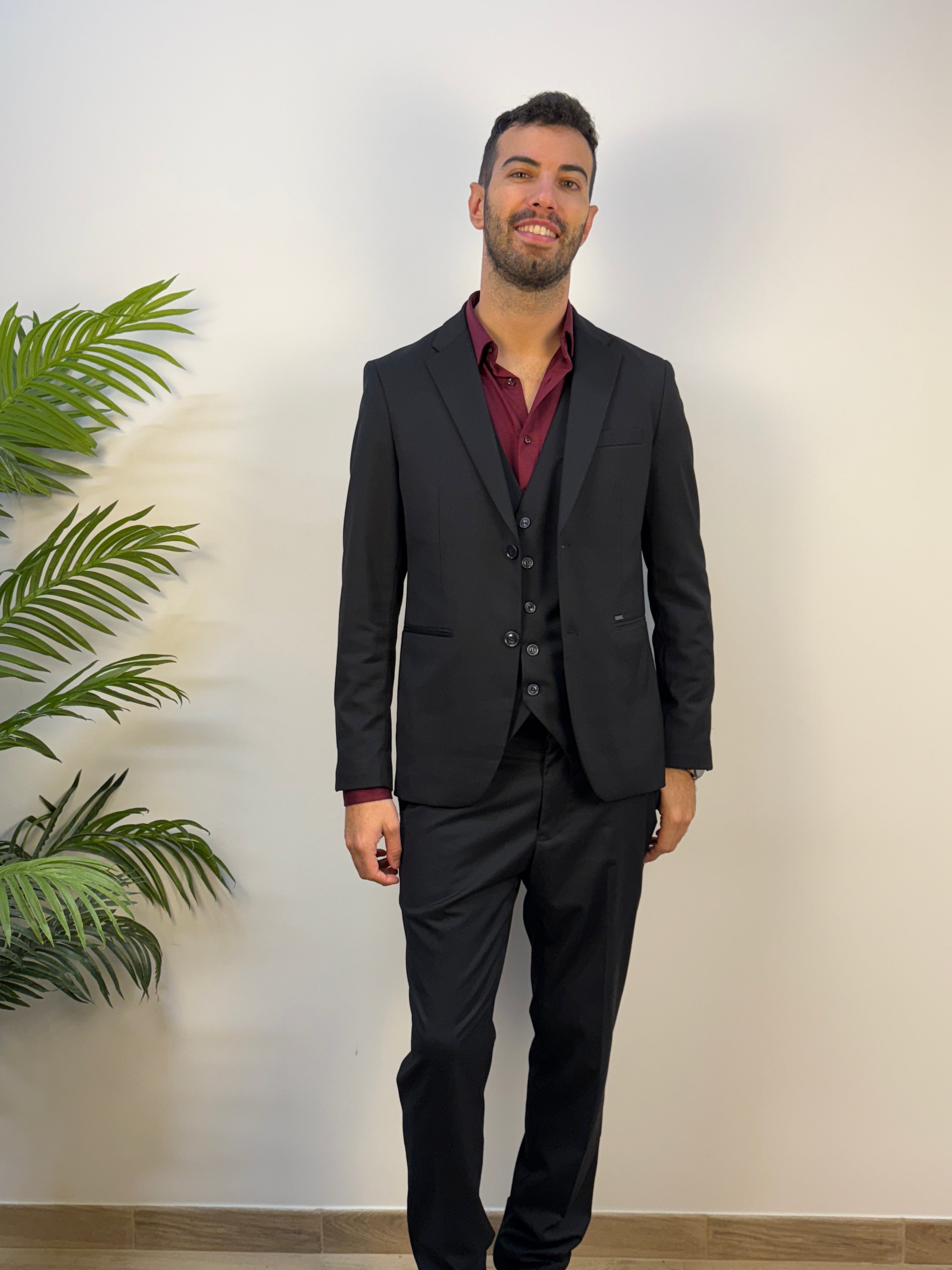 Completo Gianni Lupo composto da giacca e pantalone in tessuto fermo, dal fascino elegante e raffinato. La giacca presenta spalle imbottite, chiusura a due bottoni tono su tono e tasche frontali cucite, per una linea strutturata e femminile. Il pantalone, dal taglio chino, è rifinito con chiusura a bottone, gancetto interno e zip, garantendo una vestibilità impeccabile. Un coordinato perfetto per occasioni formali o look da ufficio dal carattere sofisticato.
