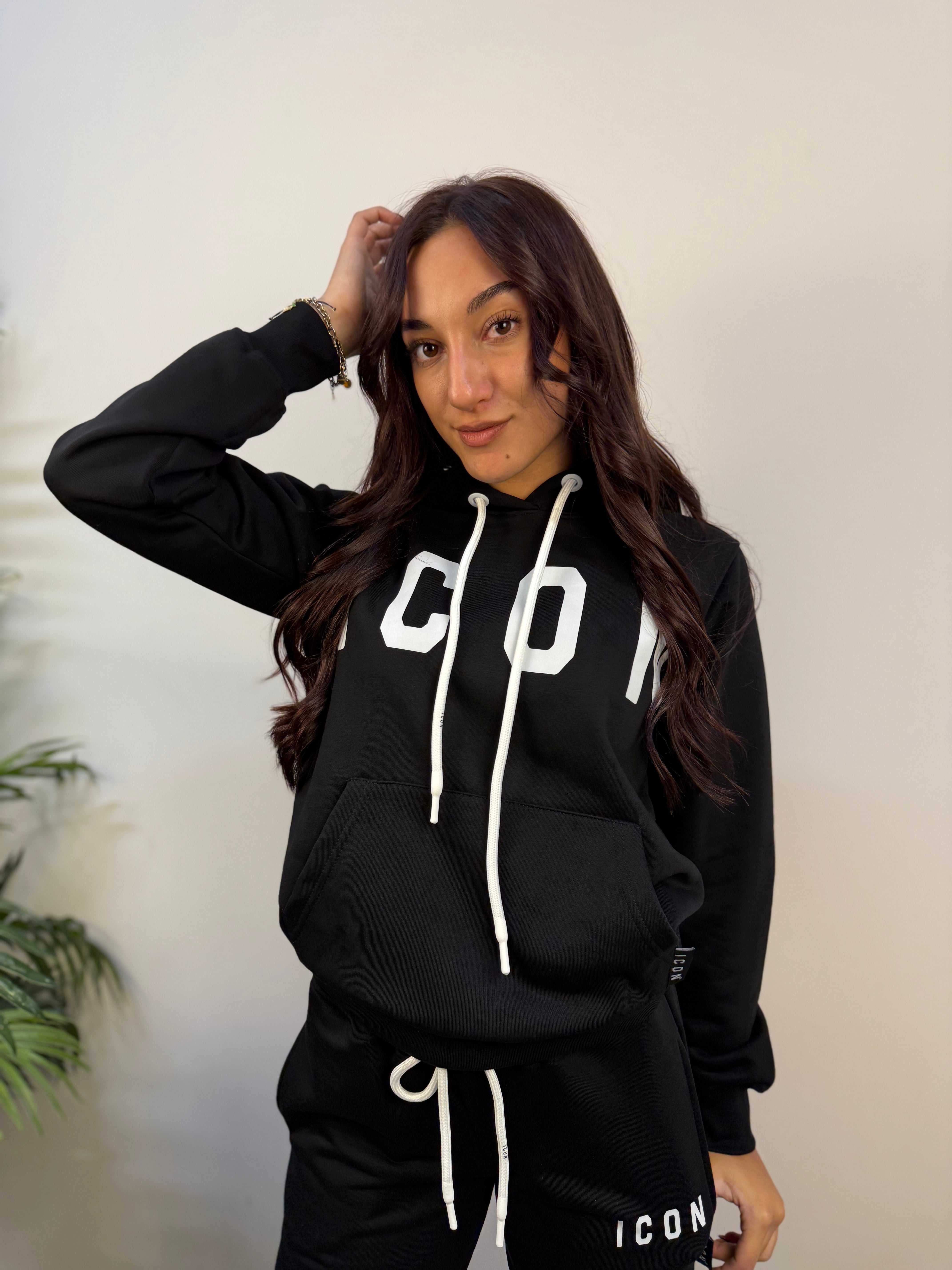 Comoda e dallo stile urbano, questa felpa ICON con cappuccio è realizzata in morbido tessuto felpato interno per un comfort termico ideale. I lacci in tessuto logati aggiungono un dettaglio distintivo, mentre il tascone frontale garantisce praticità. La maxi stampa logata bianca sul petto dona carattere e visibilità al capo. Polsini e fascione a costine assicurano una vestibilità aderente e definita. Perfetta per un look casual ma curato nei dettagli.