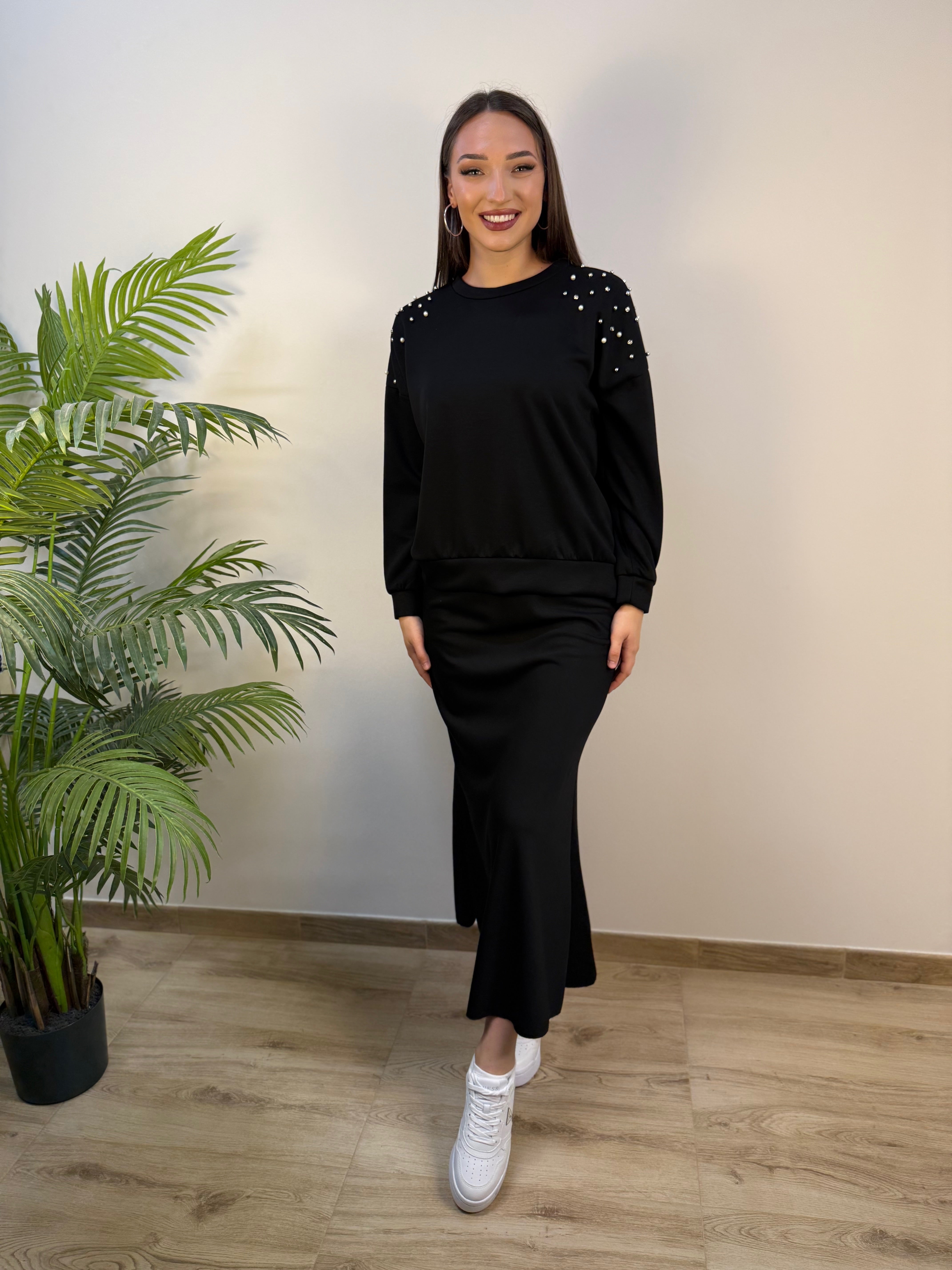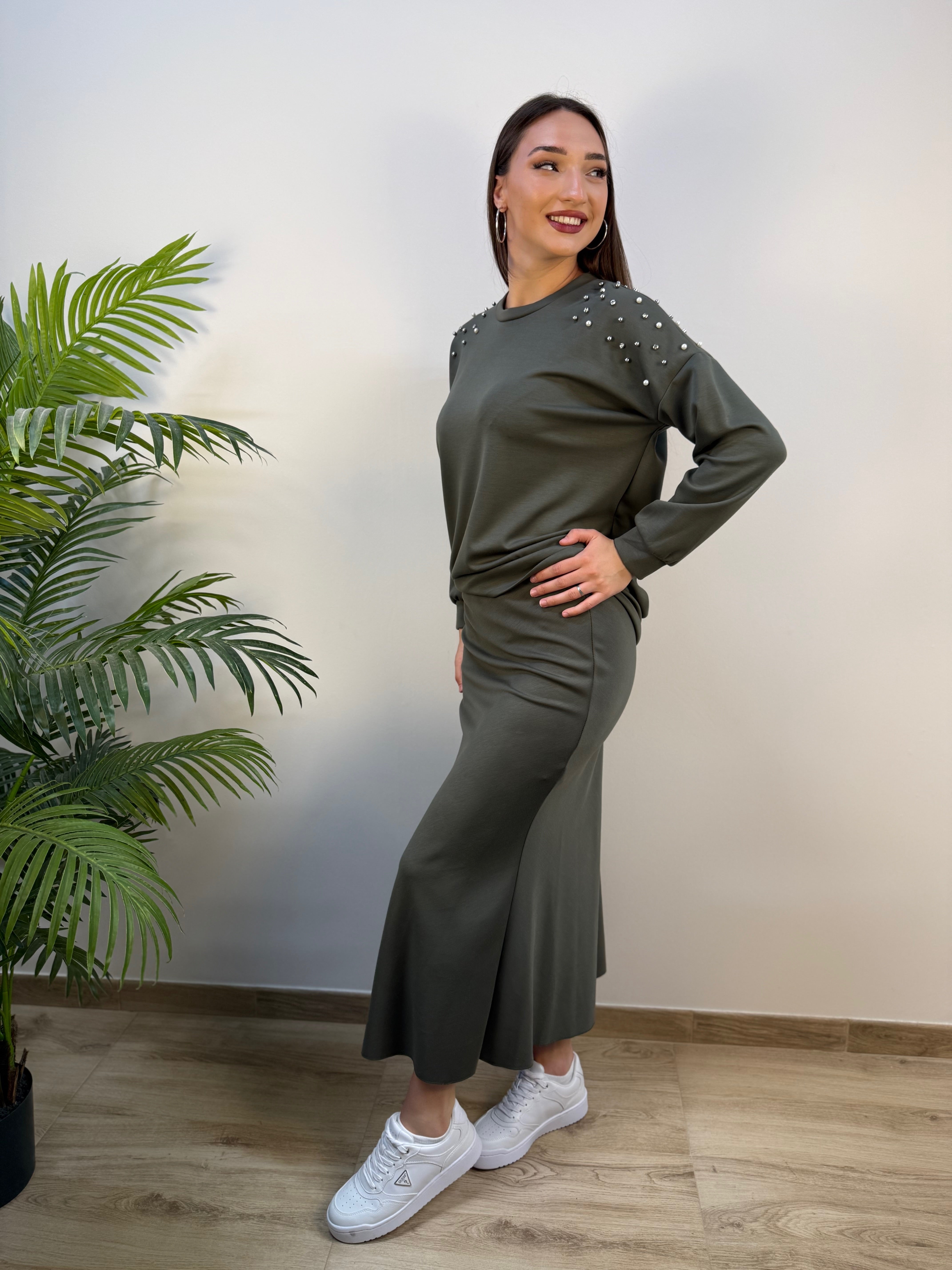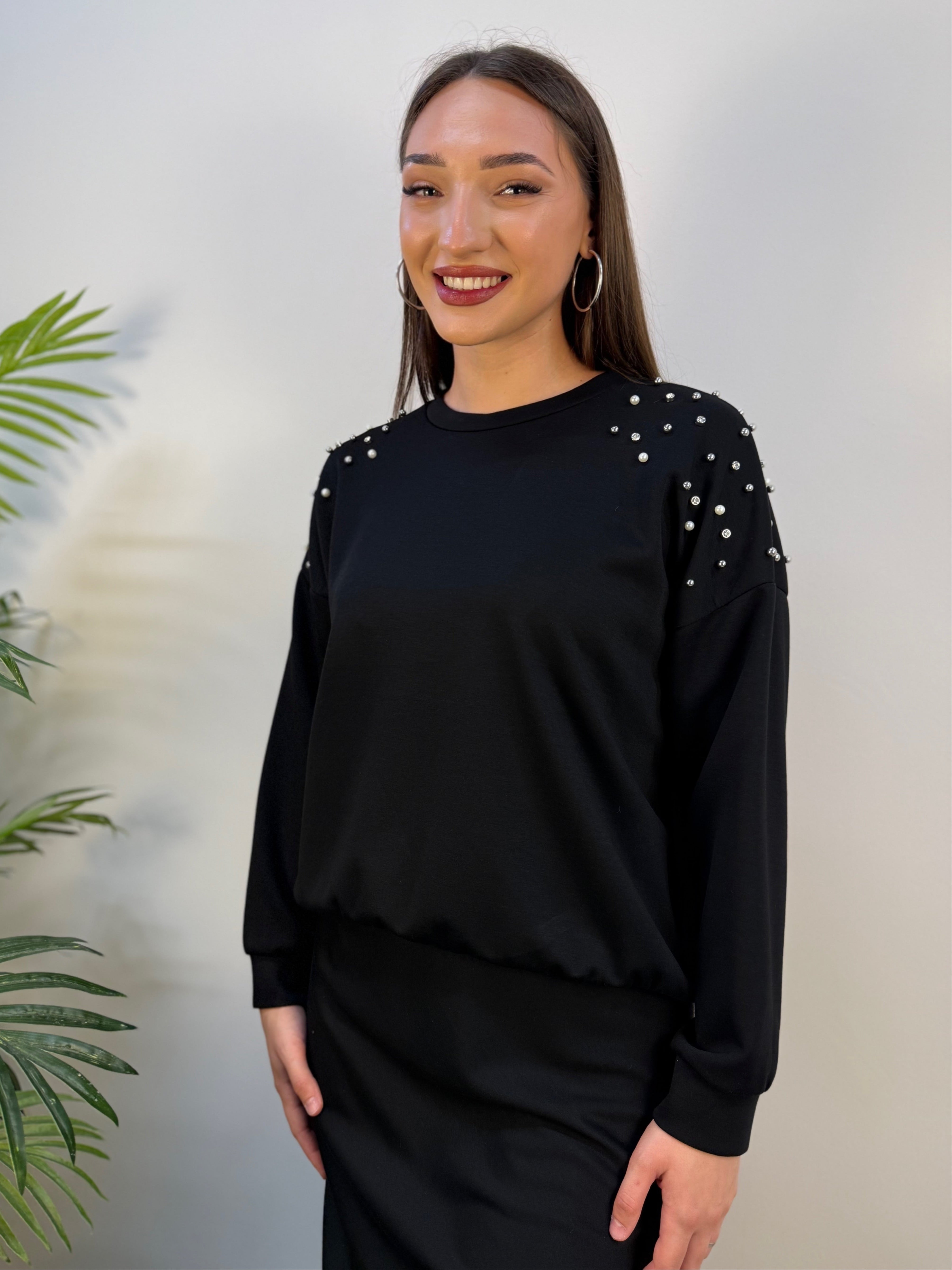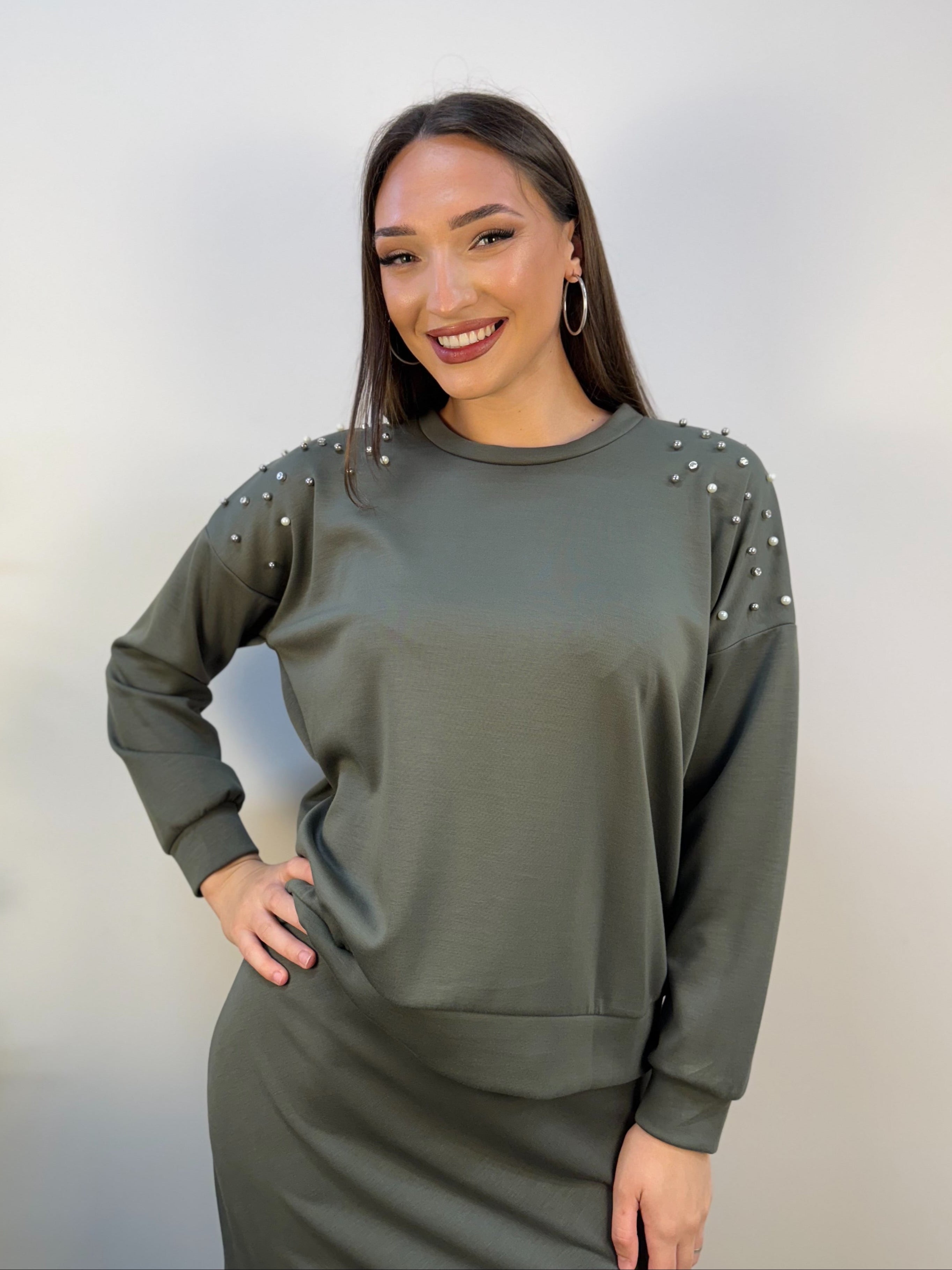 Comfort e stile si incontrano in questa felpa Akè in tessuto scuba, morbido, caldo ed elasticizzato, pensata per accompagnarti con eleganza nelle giornate più fresche. La tinta unita dona versatilità al capo, mentre l'applicazione di perle e strass sulle spalle crea un raffinato punto luce che aggiunge un tocco glamour al look. Un capo perfetto per chi ama distinguersi con discrezione, ideale da abbinare sia a un denim casual che a pantaloni più eleganti per un effetto sofisticato ma rilassato.