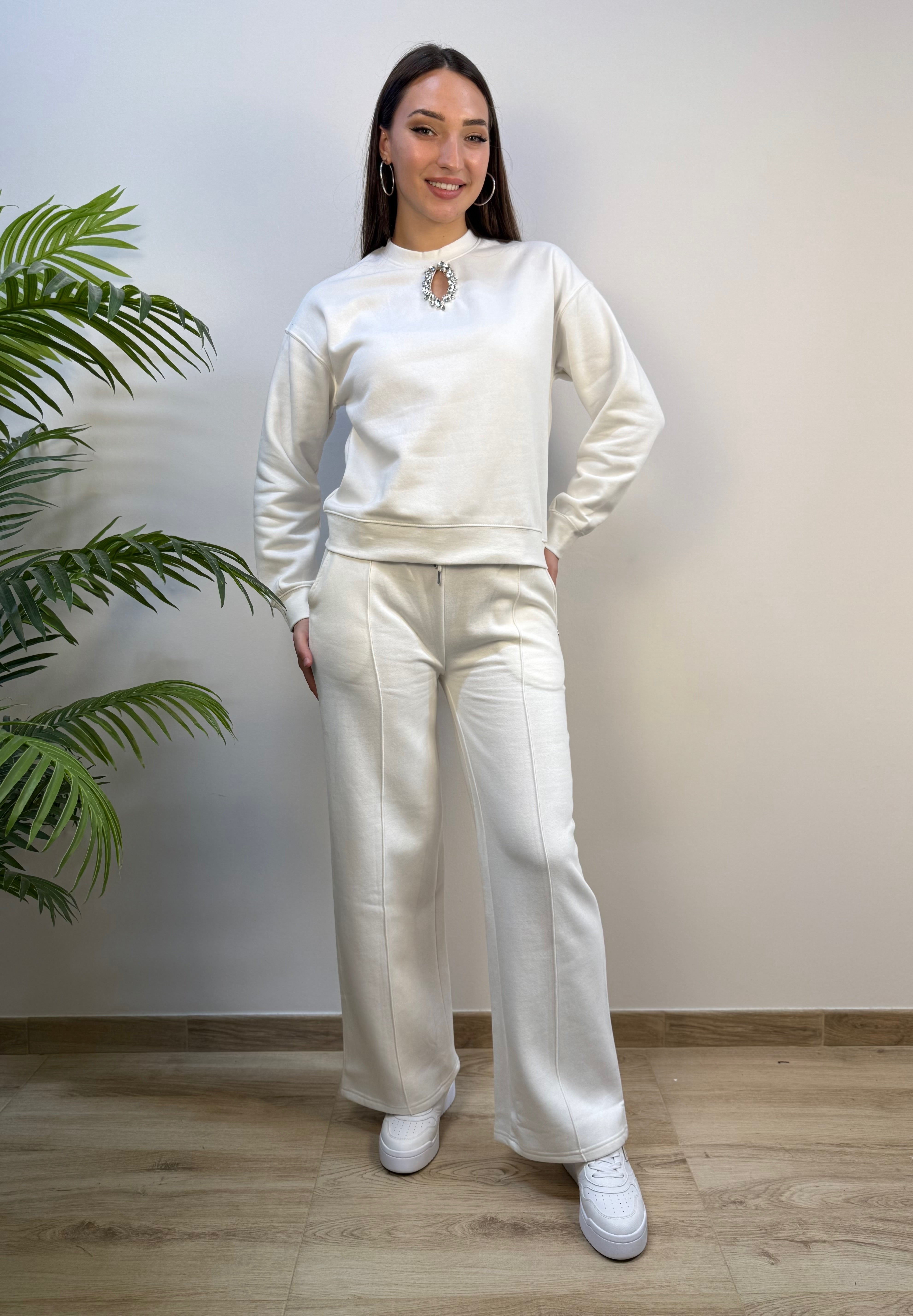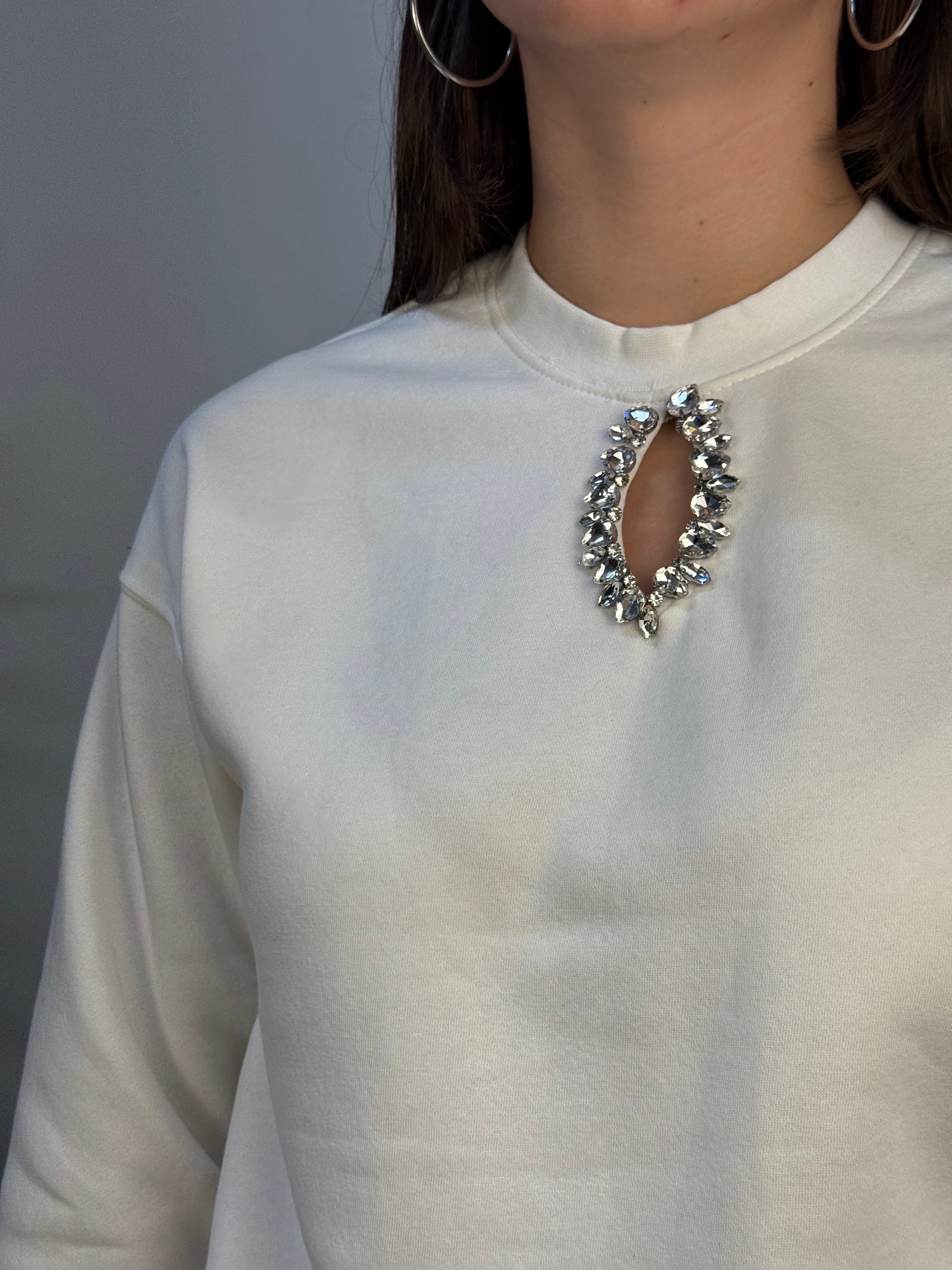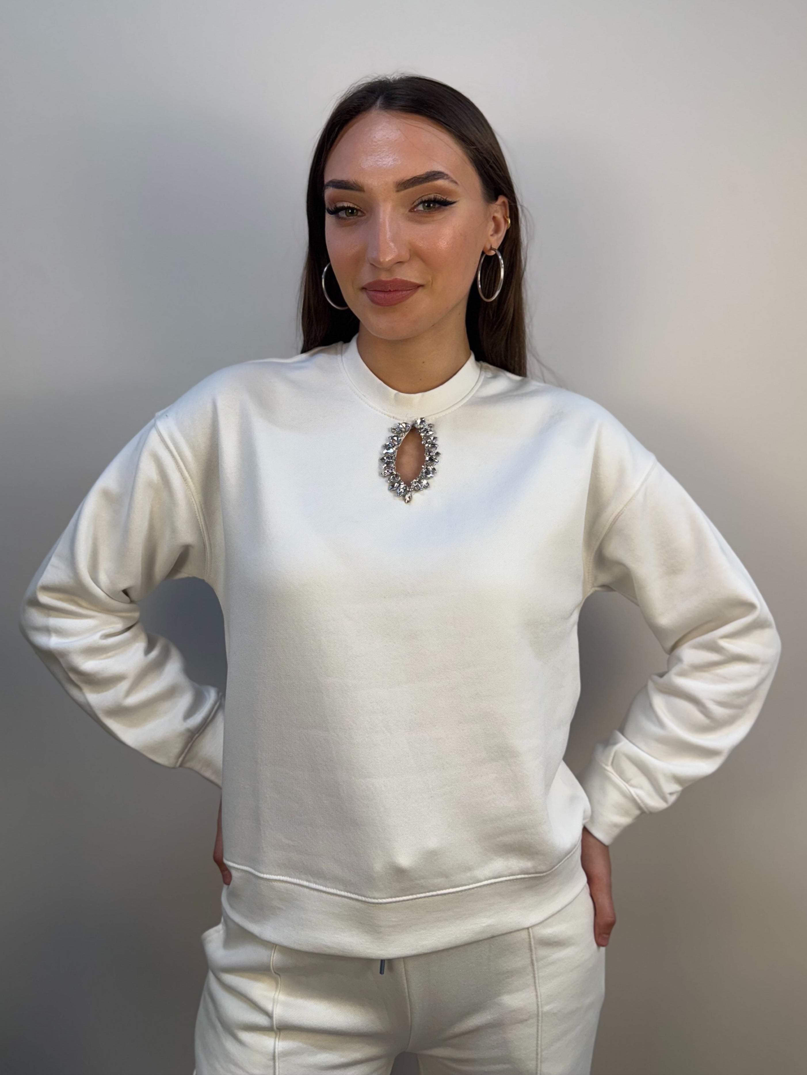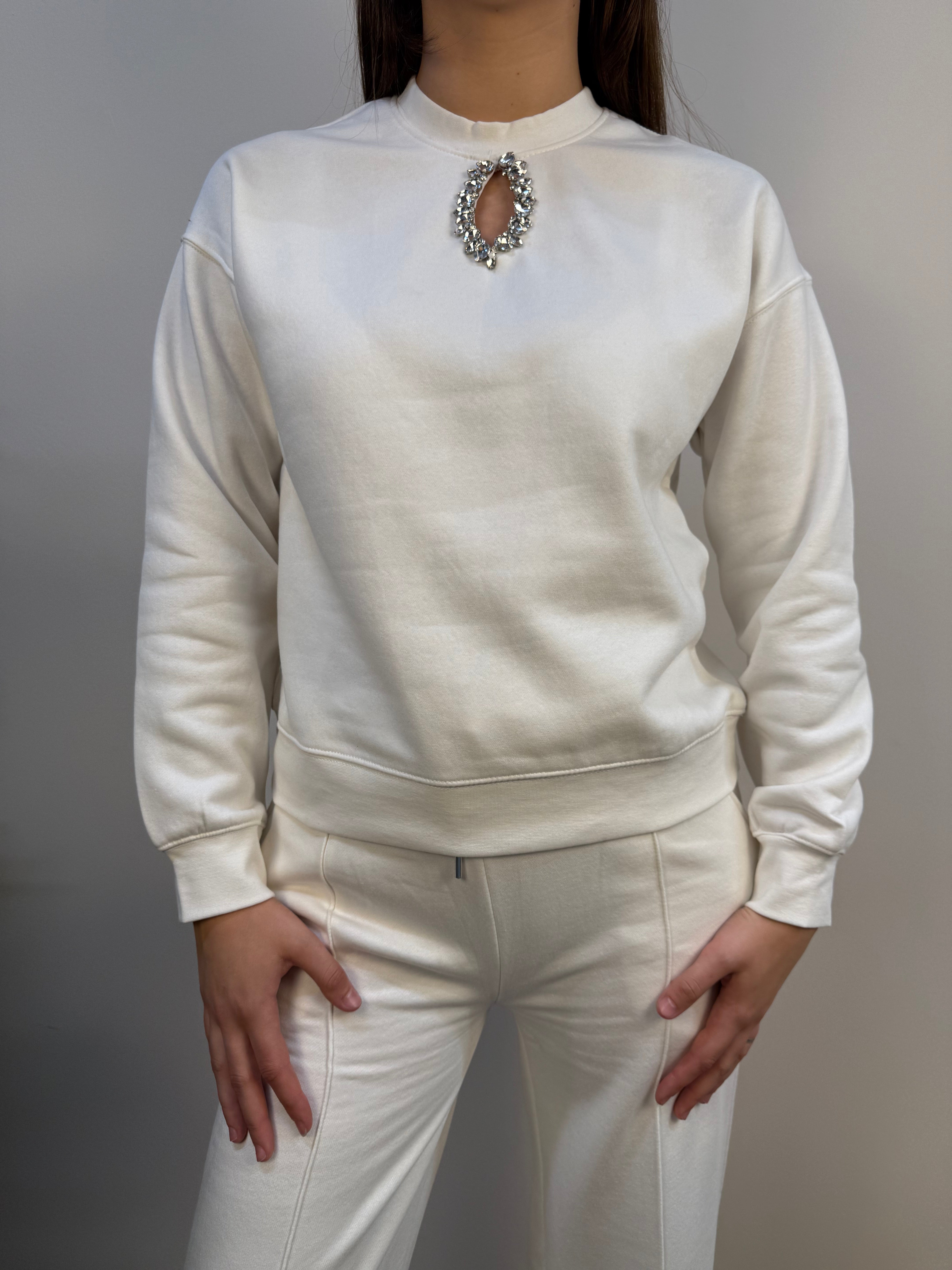 Felpa girocollo felpata con dettaglio gioiello allo scollo