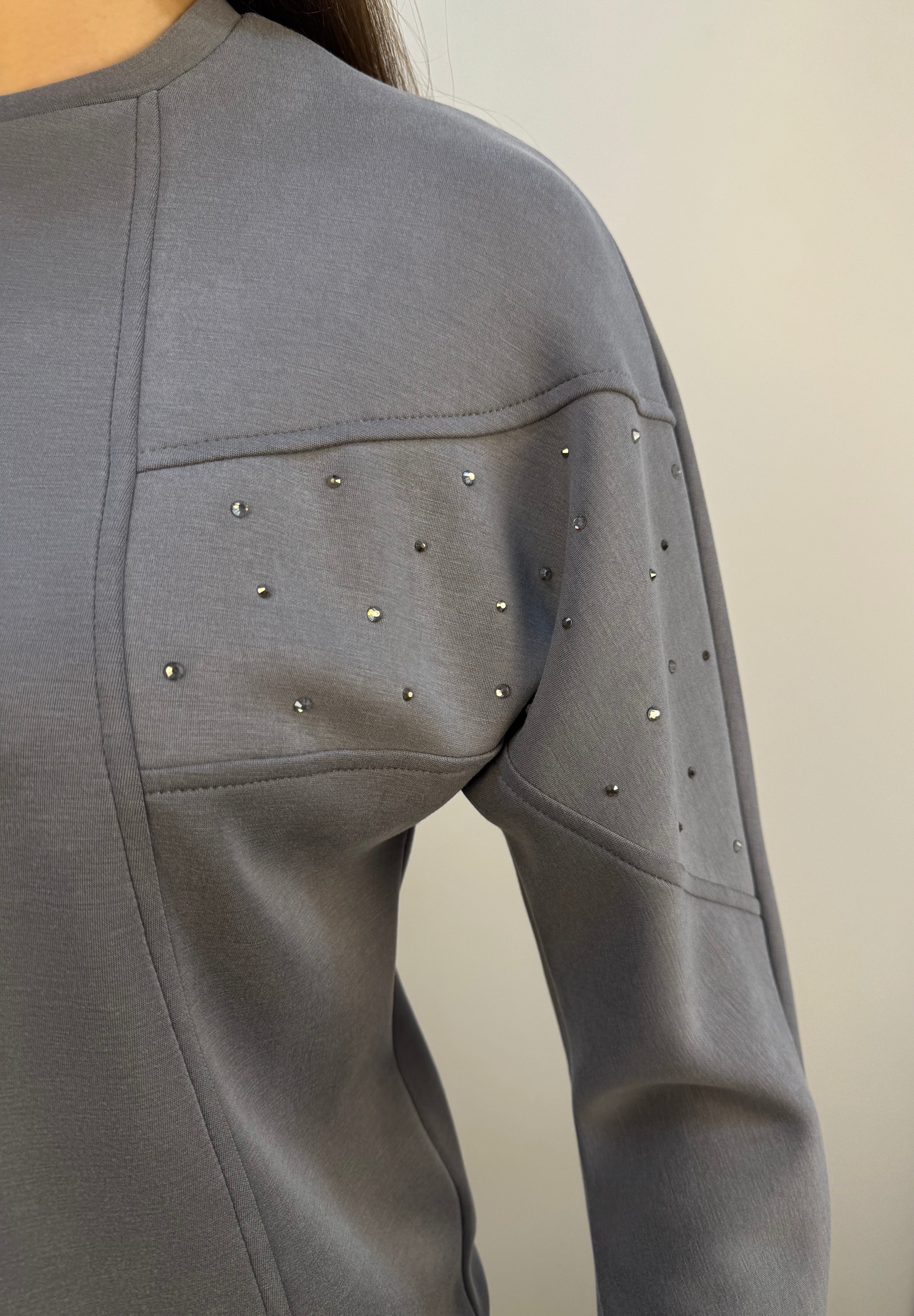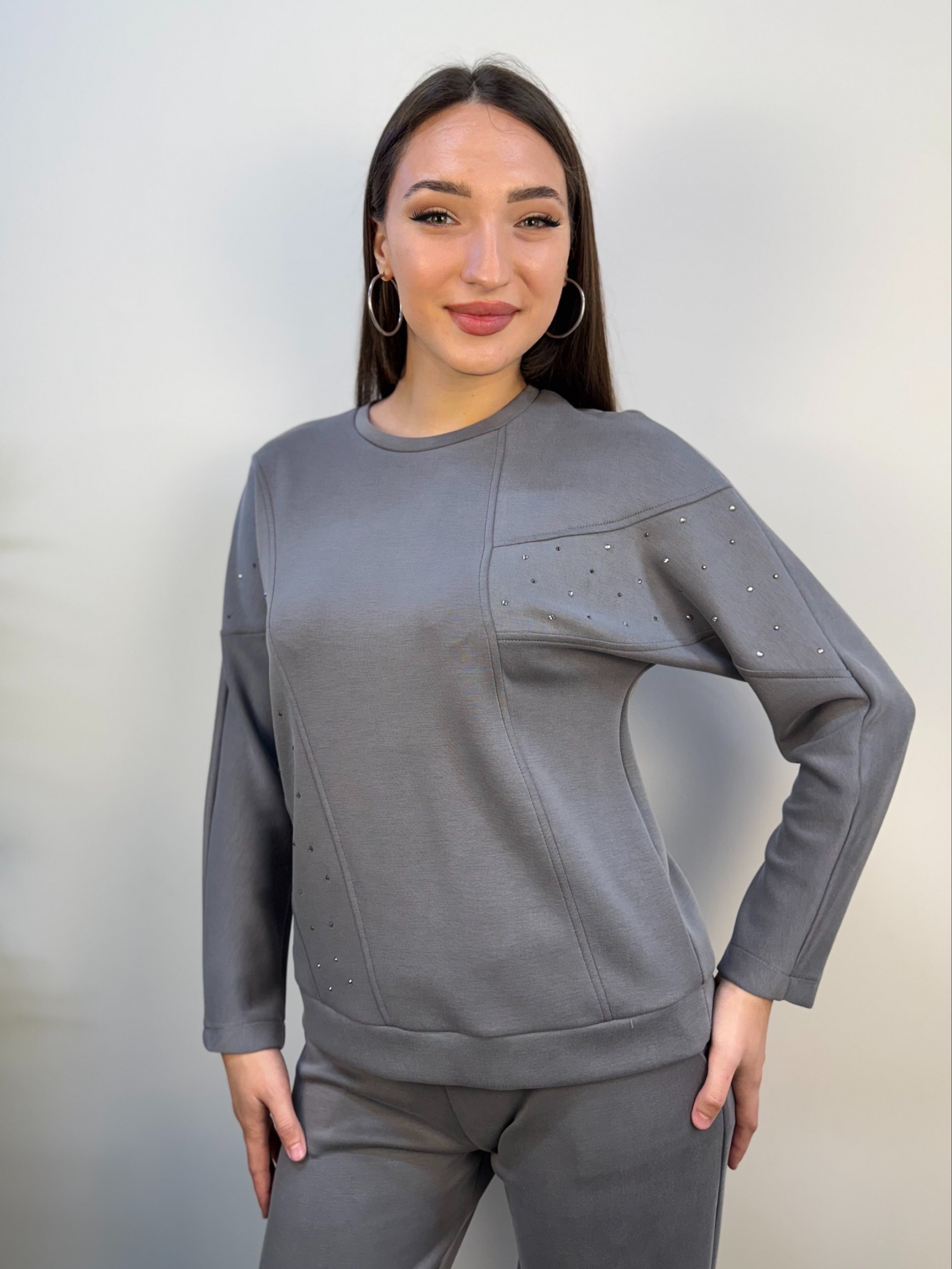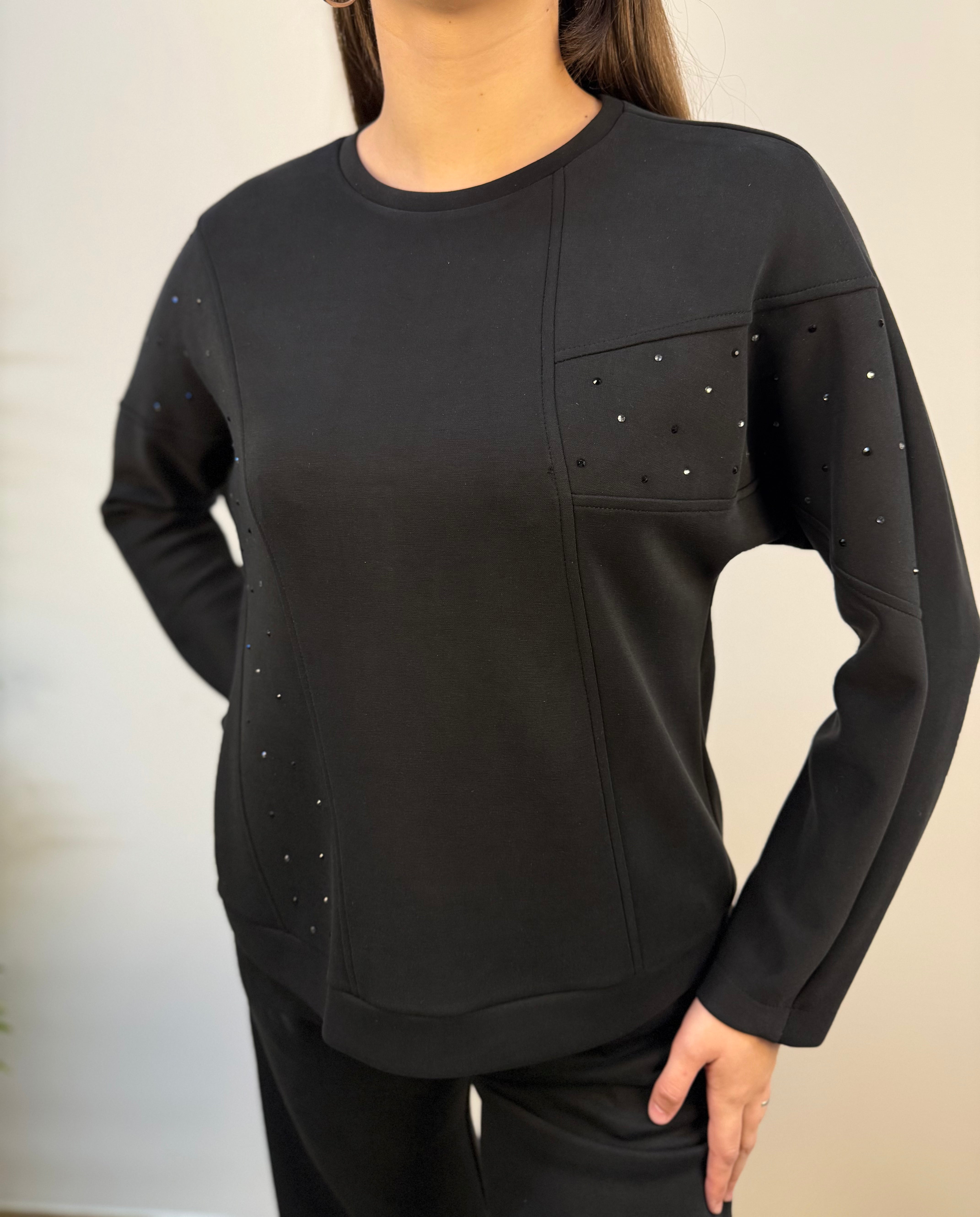Dal design essenziale ma ricercato, questa felpa Clarin Shavien girocollo in tessuto scuba offre comfort e stile in un unico capo. Calda, morbida e piacevolmente strutturata, è perfetta per le stagioni più fresche. La tinta unita è impreziosita da delicati strass applicati, che donano un tocco di luce e femminilità senza esagerare. Un capo versatile da indossare sia in versione casual che con abbinamenti più chic. Proposta nelle varianti nero o grigio, per adattarsi facilmente a ogni stile e guardaroba.
