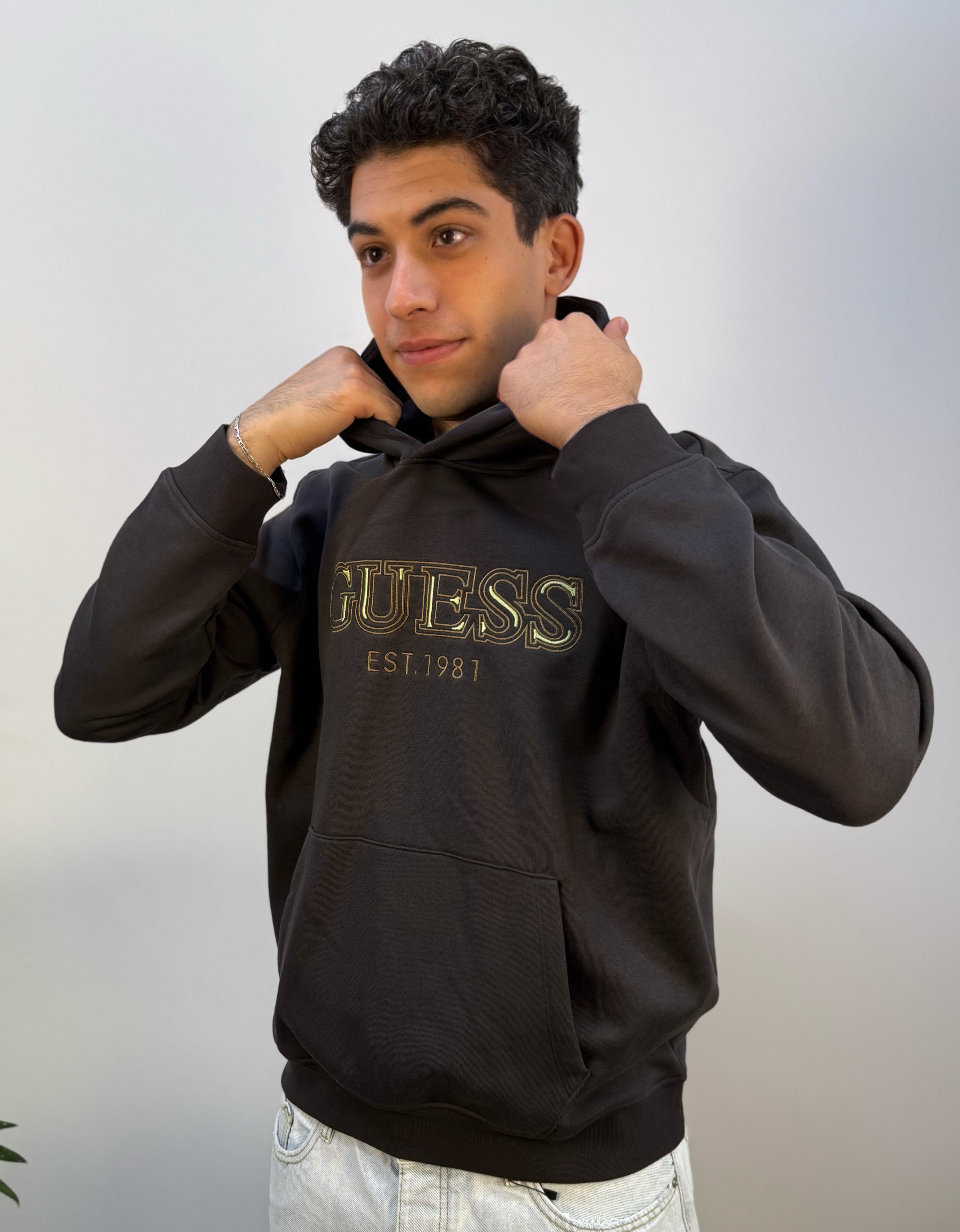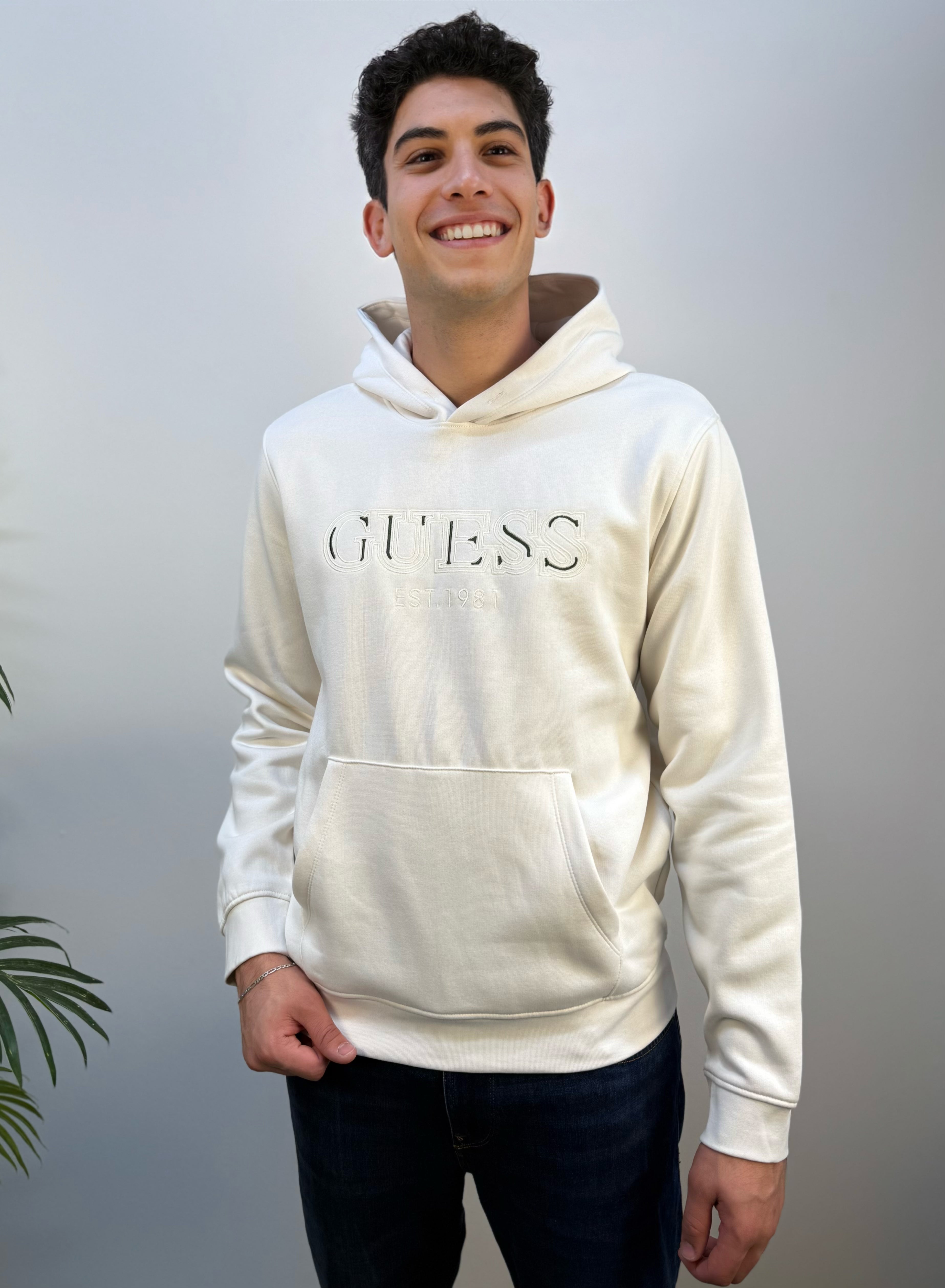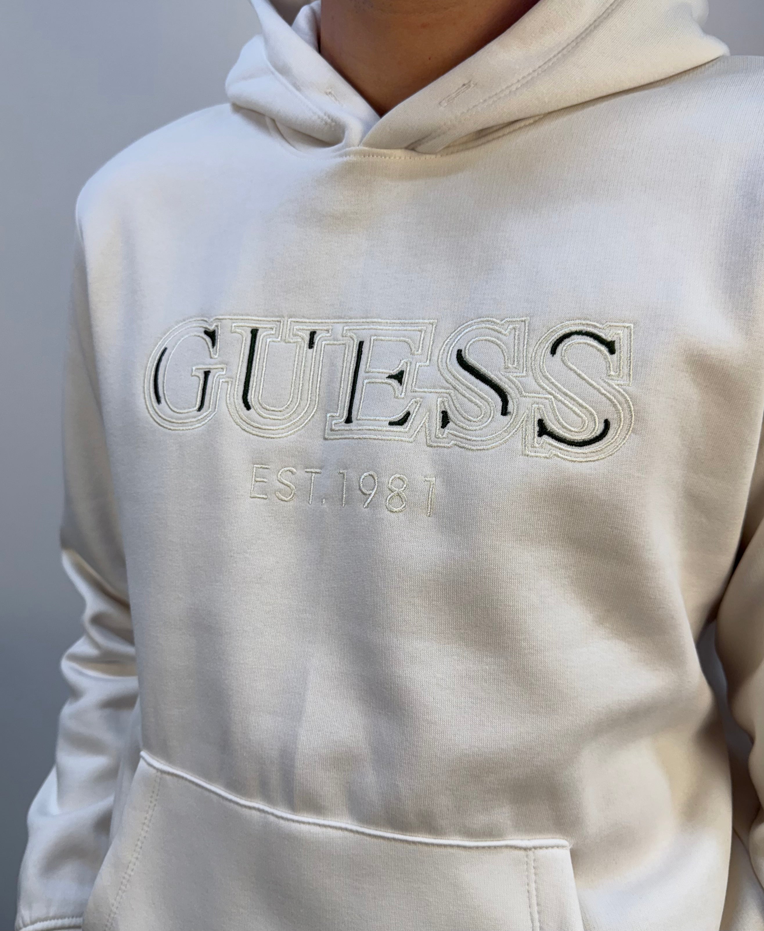 Felpa Guess con cappuccio disponibile in due varianti colore: cioccolato e panna. Realizzata in tessuto felpato all’interno, assicura comfort e calore ideali per la stagione. I polsini e il fascione in costine donano struttura e una vestibilità definita. Sul fronte spicca il logo del marchio ricamato in stile minimal, arricchito da dettagli verde lime nella versione cioccolato e verde bosco in quella panna. Il taglio slim fit valorizza la silhouette con un tocco moderno ed essenziale.