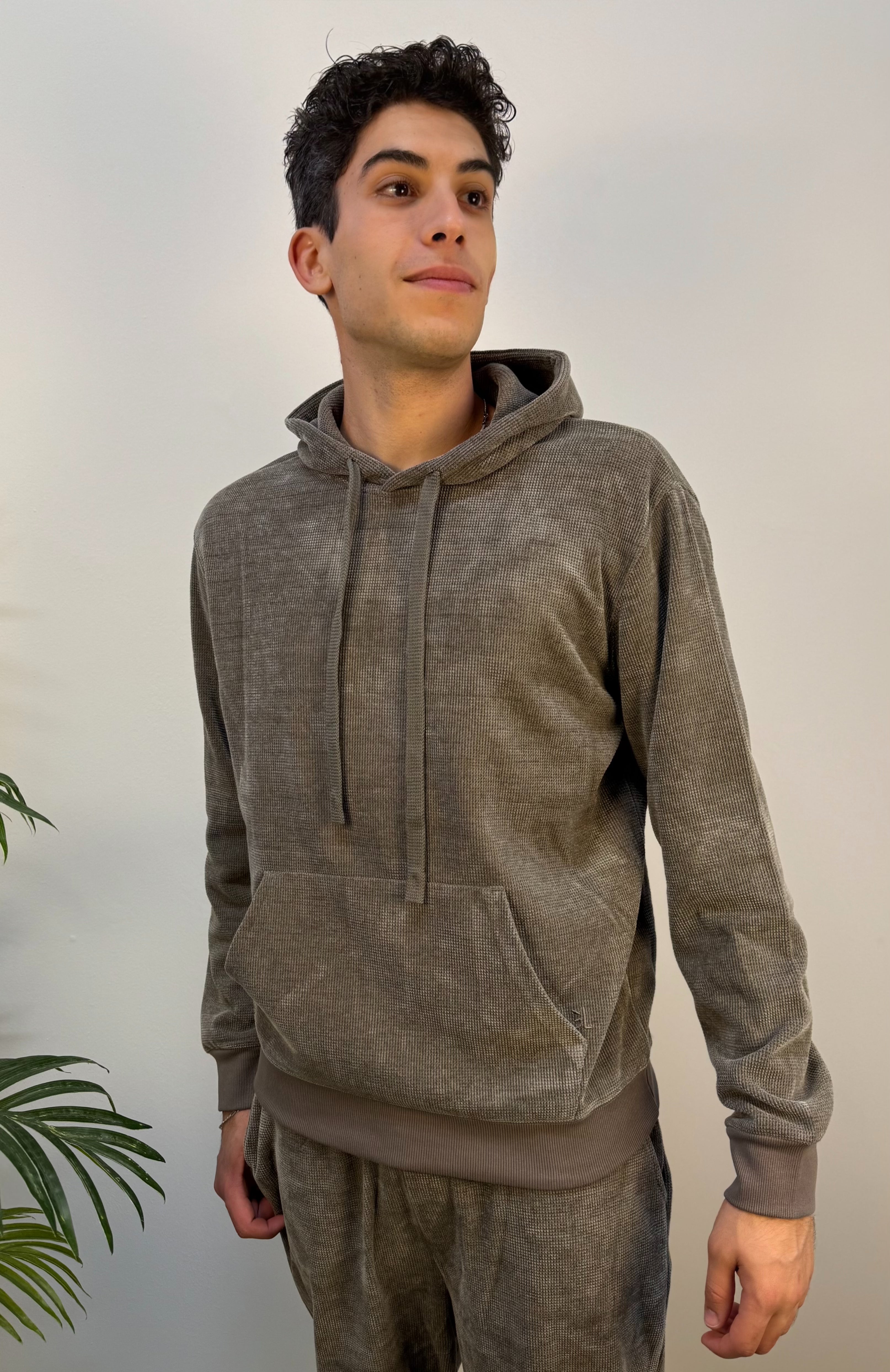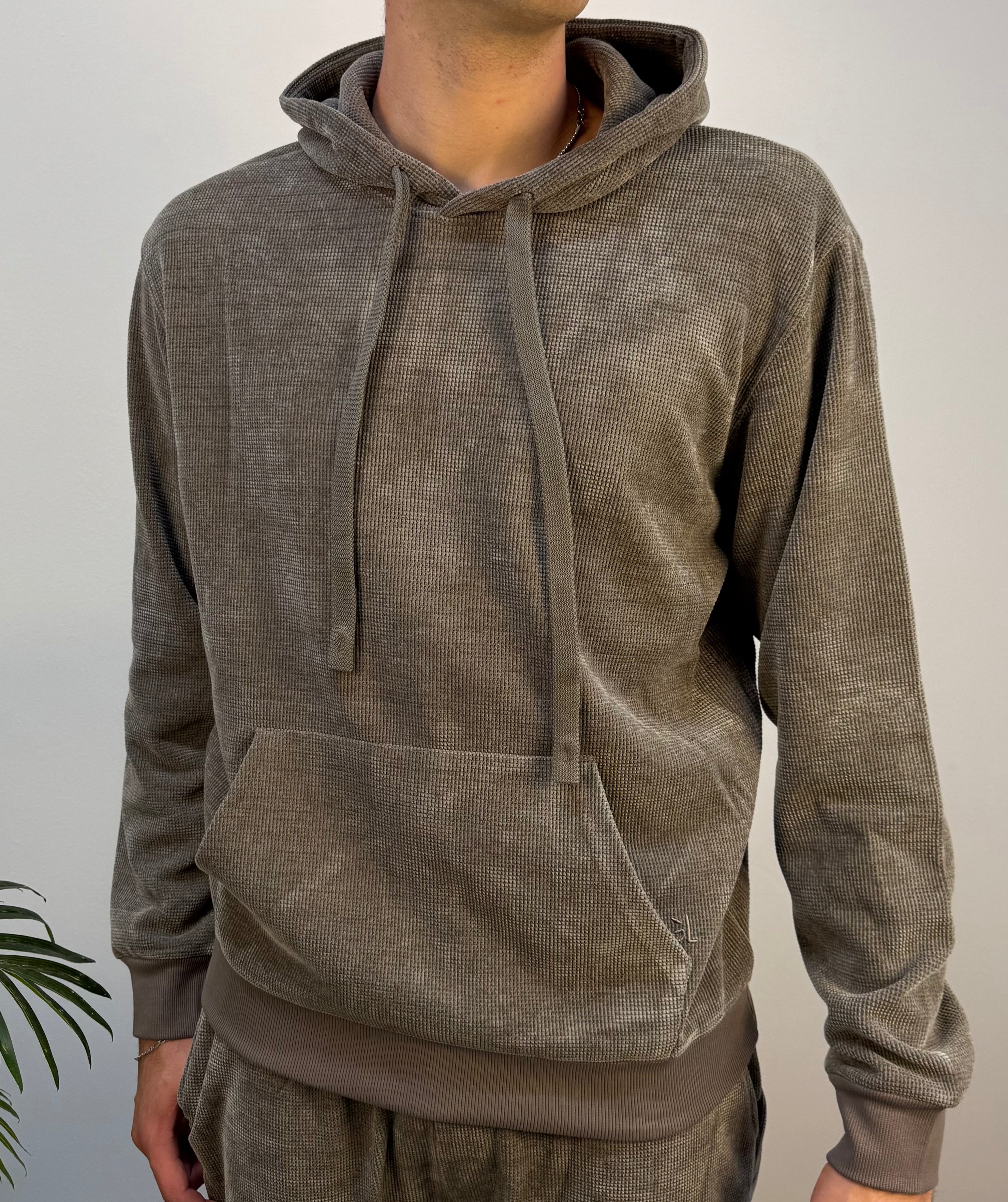 Felpa Gianni Lupo realizzata in un morbido misto viscosa, caratterizzata da una particolare lavorazione in ciniglia con puntinatura in rilievo che dona al capo un effetto visivo e tattile originale. Il cappuccio è regolabile tramite lacci in tessuto, mentre polsini e fascione a costine assicurano una vestibilità confortevole e rifinita. Calda e dall’estetica ricercata, è perfetta per aggiungere un tocco speciale ai look casual della stagione fredda.