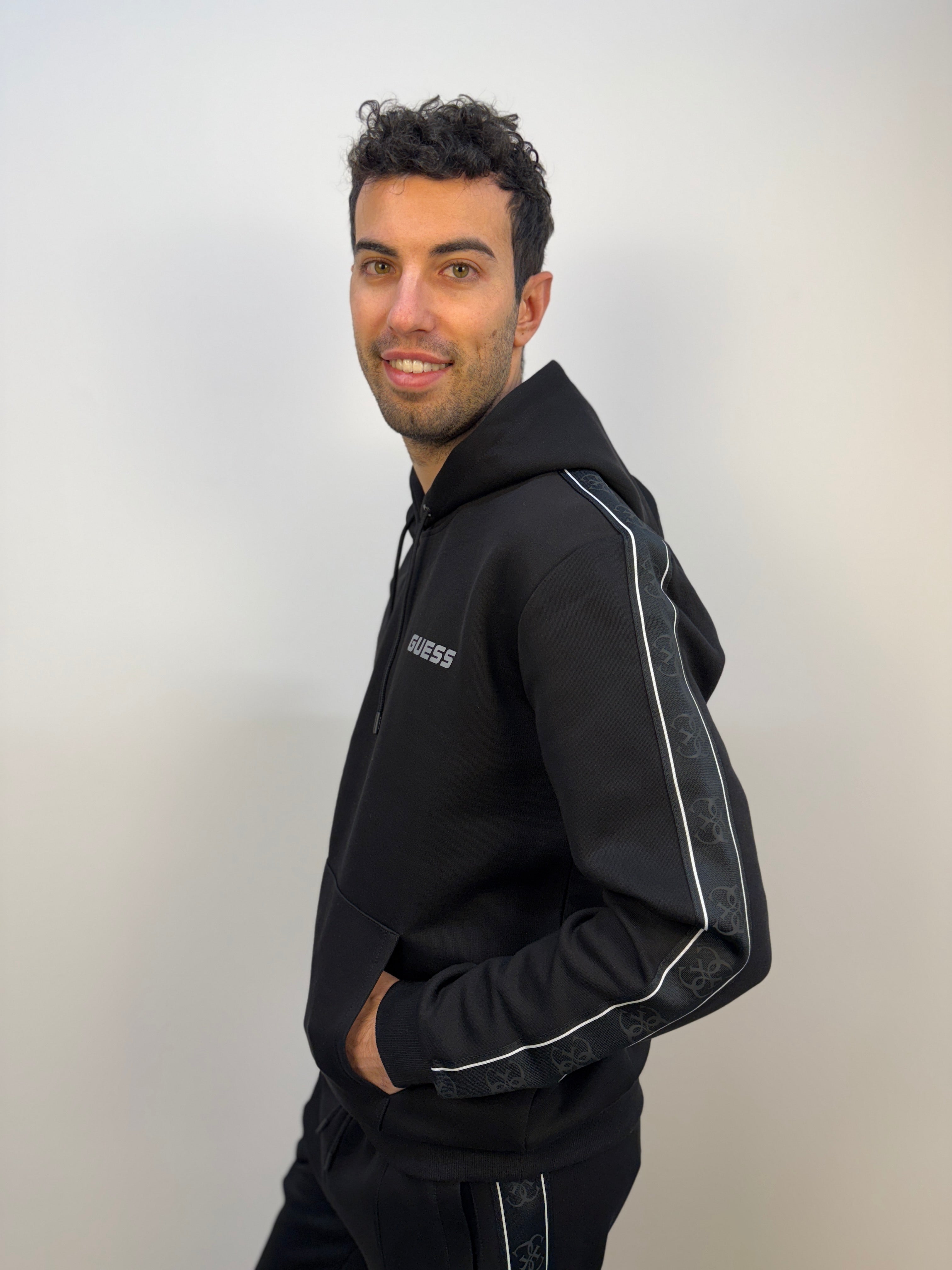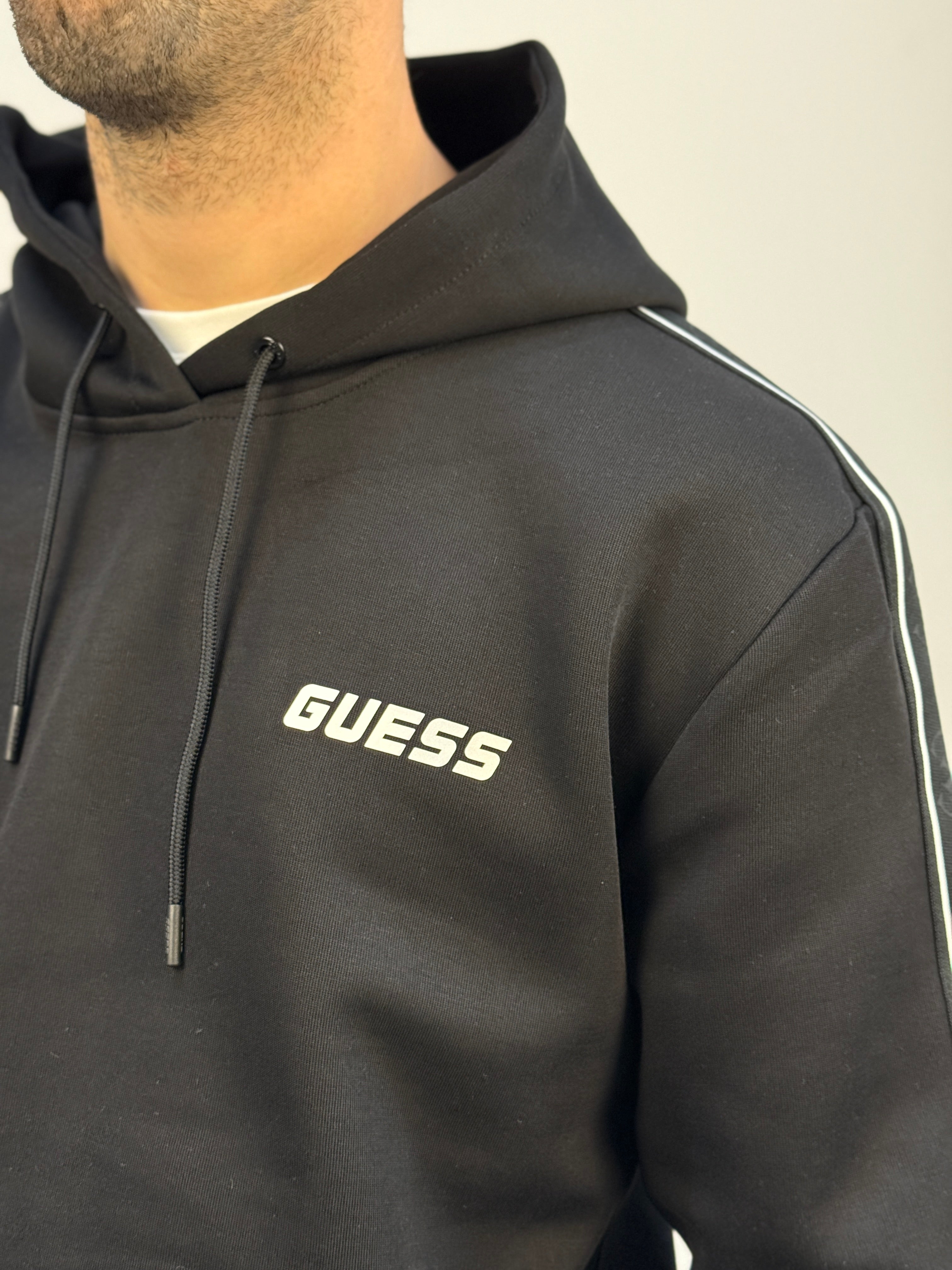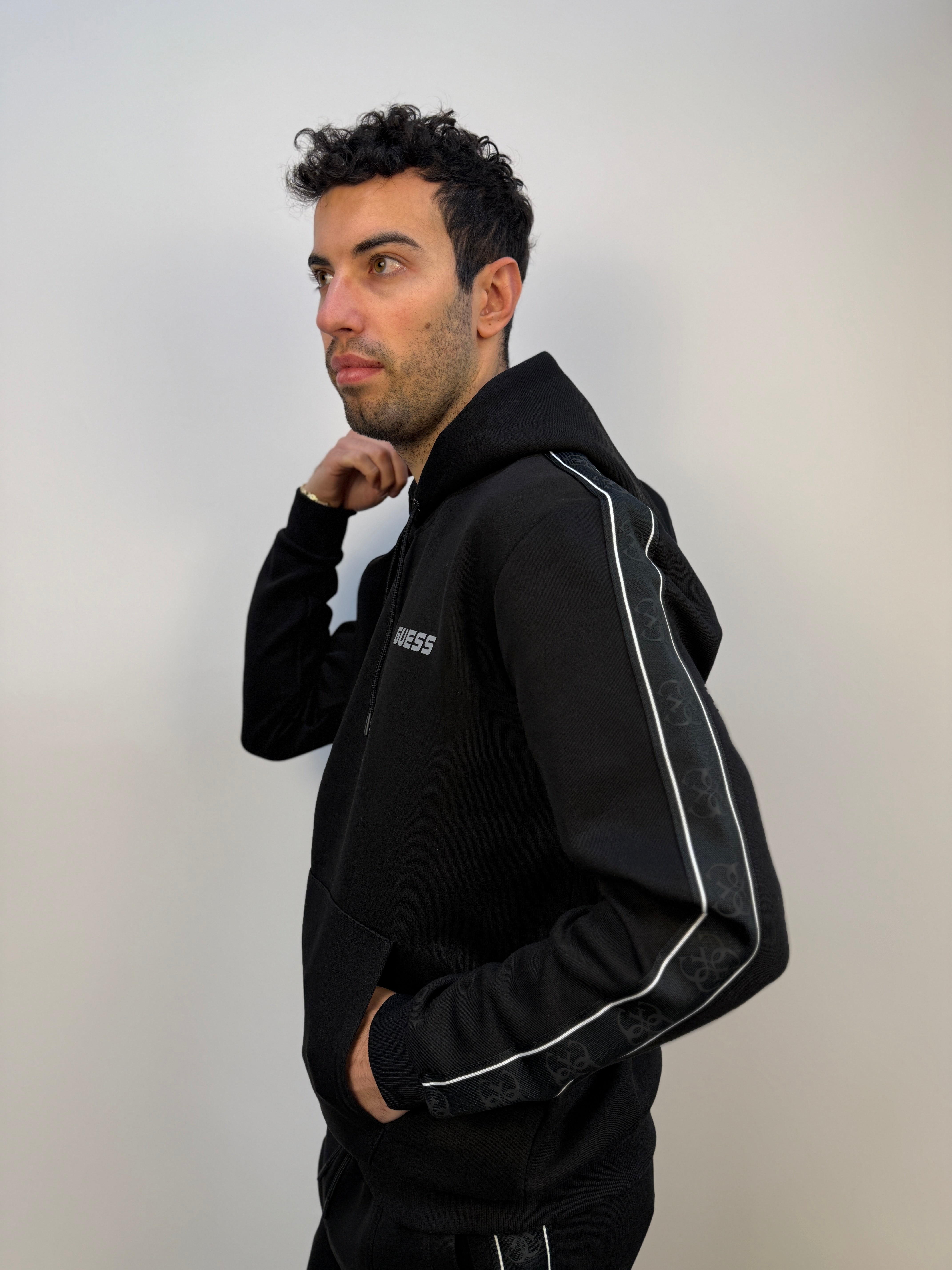 Felpa GUESS garzata con logo catarifrangente sul cuore e banda laterale.