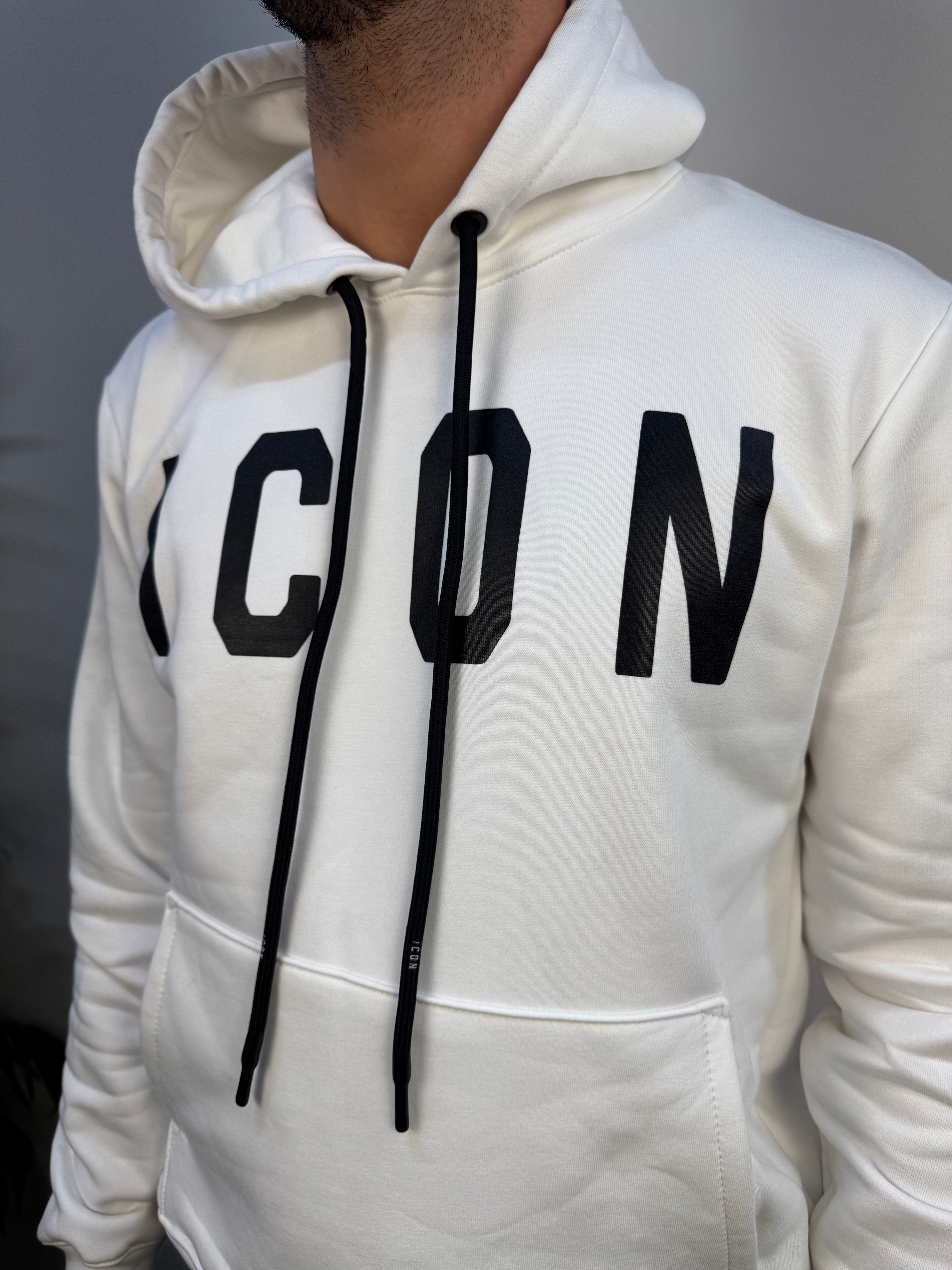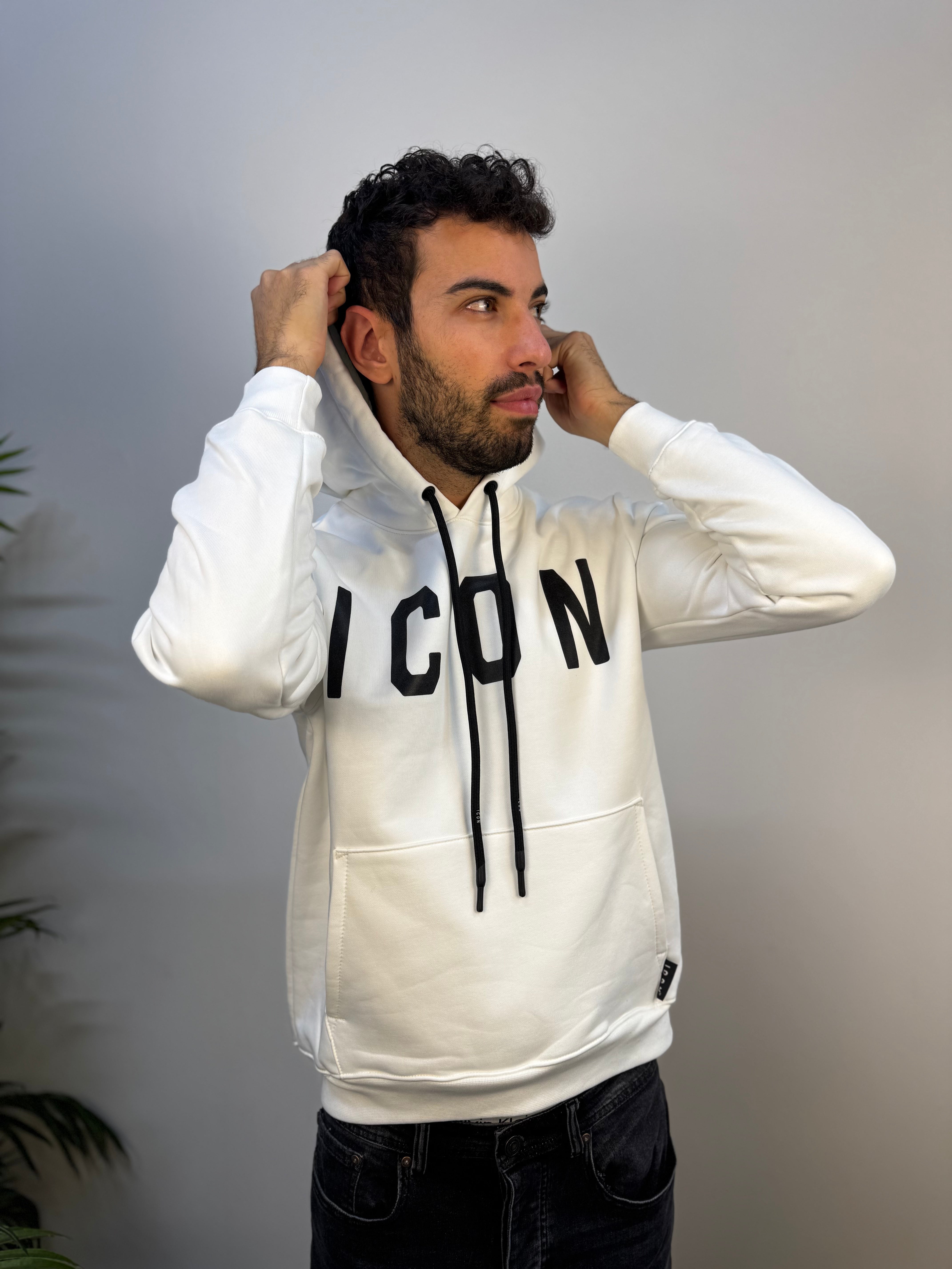 Felpa ICON con cappuccio dal design moderno e grintoso, realizzata in un tessuto morbido, felpato all’interno e leggermente elasticizzato per offrire comfort e libertà di movimento. Il cappuccio regolabile con lacci logati aggiunge un dettaglio distintivo, mentre fascione e polsini a costine garantiscono una vestibilità perfetta. Sul petto spicca la stampa logata grande, elemento di stile che dona carattere e identità al capo. Ideale per un look casual e contemporaneo, perfetta per ogni momento della giornata.