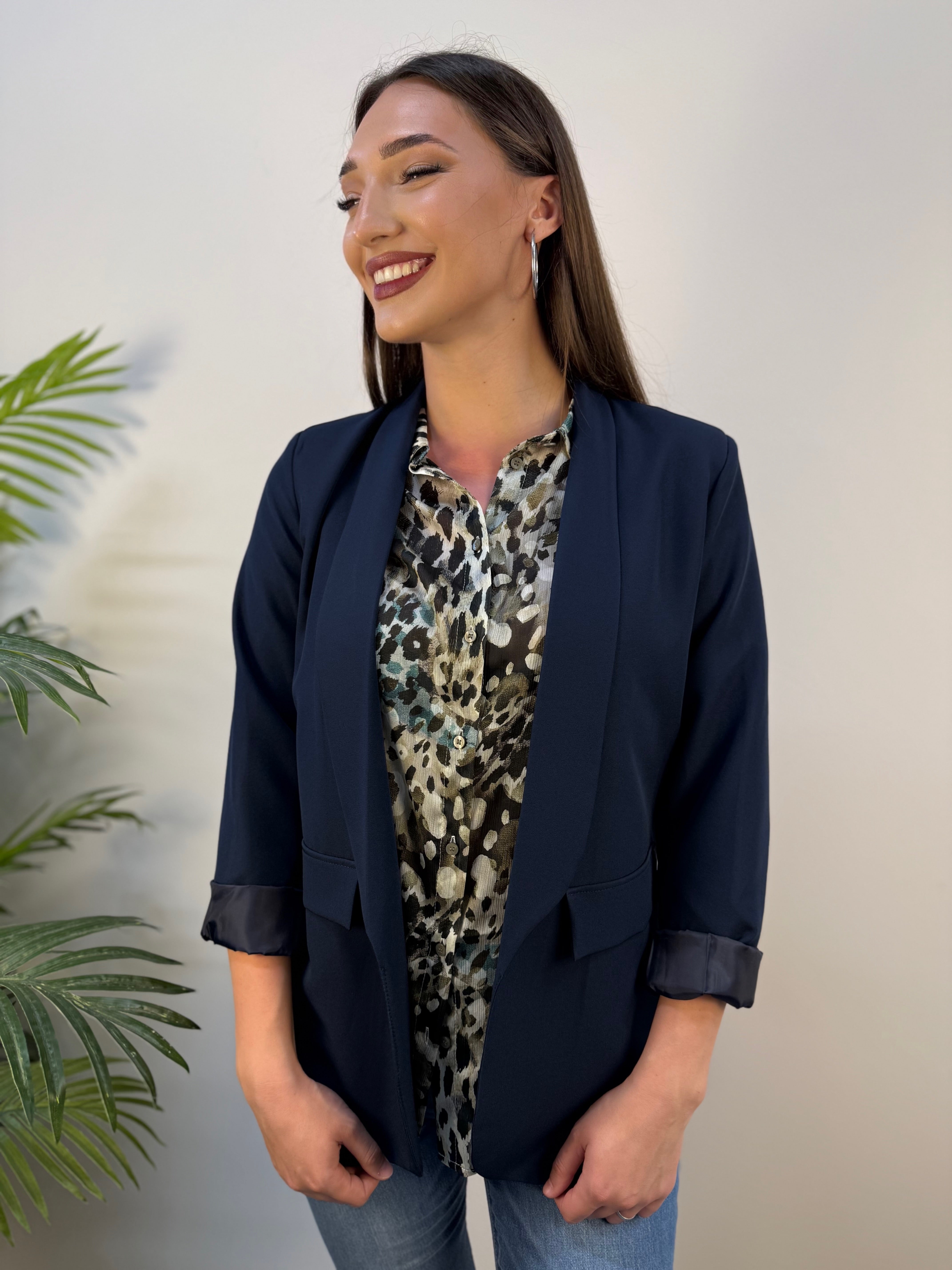Blazer in tessuto tecnico con dettaglio piega