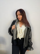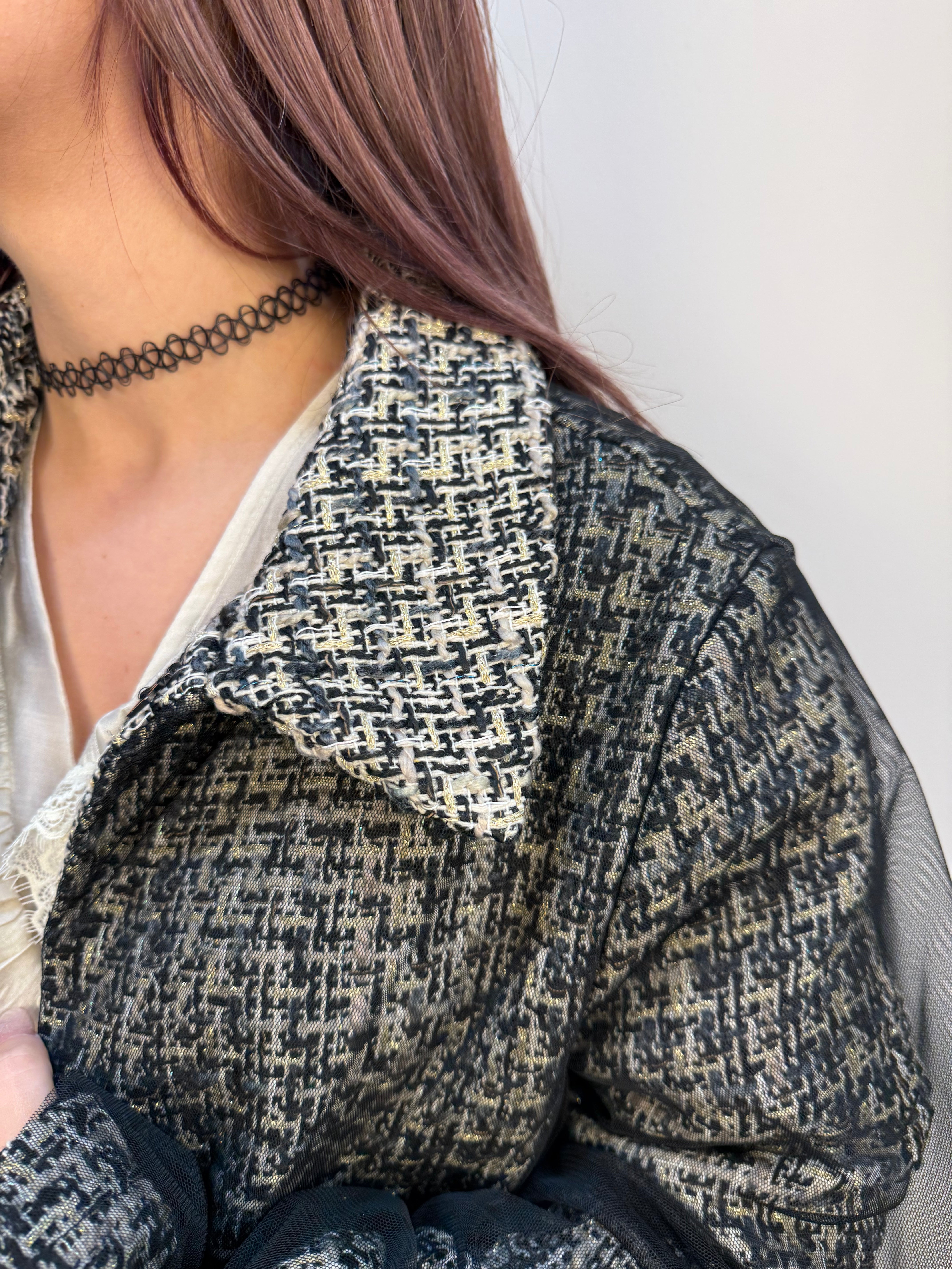 Giacchino jacquard con tulle e filato lurex