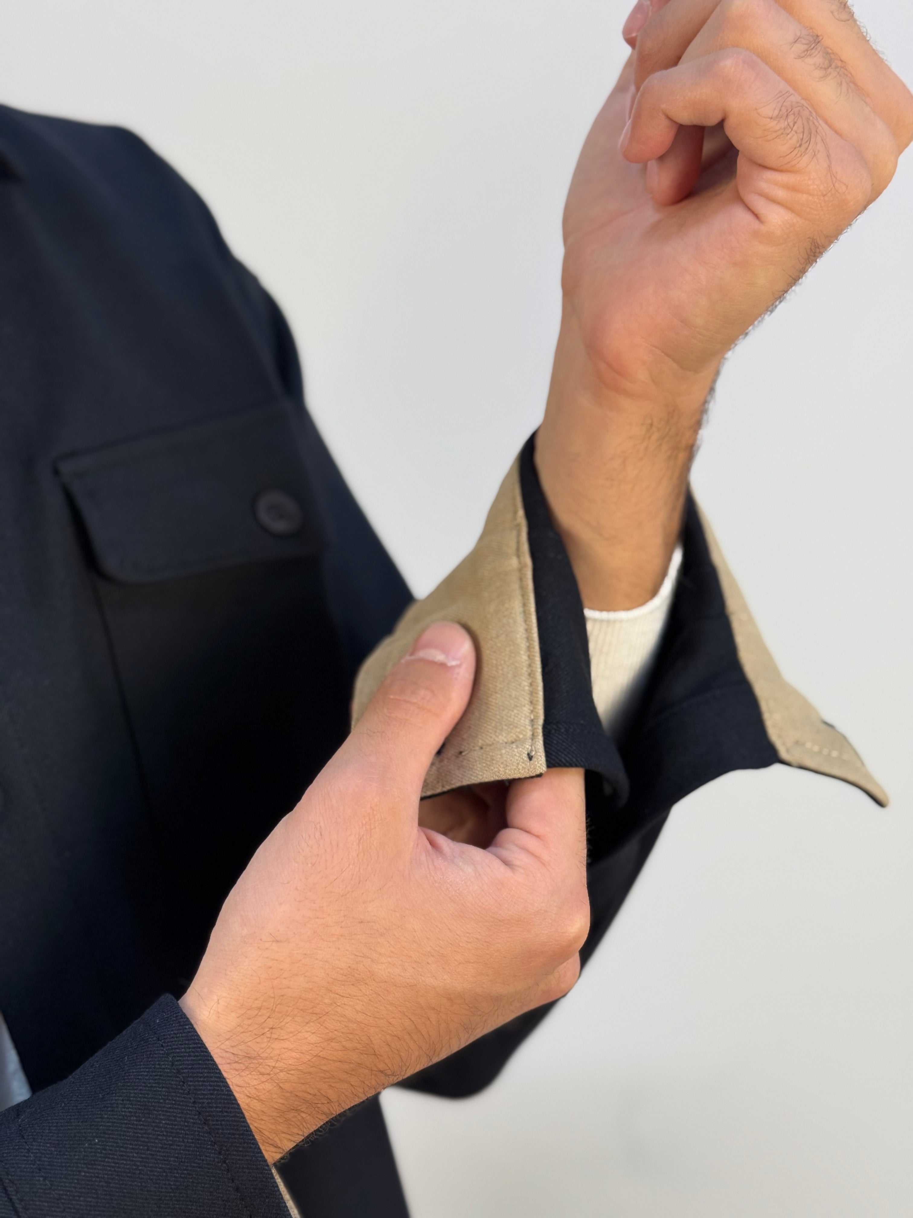 Giacca Palma3 dal taglio sportivo e raffinato, realizzata nel tono navy con chiusura frontale a bottoni ad asola tono su tono. Il design è arricchito da due taschini con patta e bottone ad asola, che uniscono praticità e stile. Il colletto e i polsini in contrasto beige aggiungono un tocco di eleganza delicata, rendendo il capo perfetto per look casual curati e contemporanei. Una giacca versatile e sofisticata, ideale per chi cerca un equilibrio tra comfort e stile senza rinunciare ai dettagli distintivi.