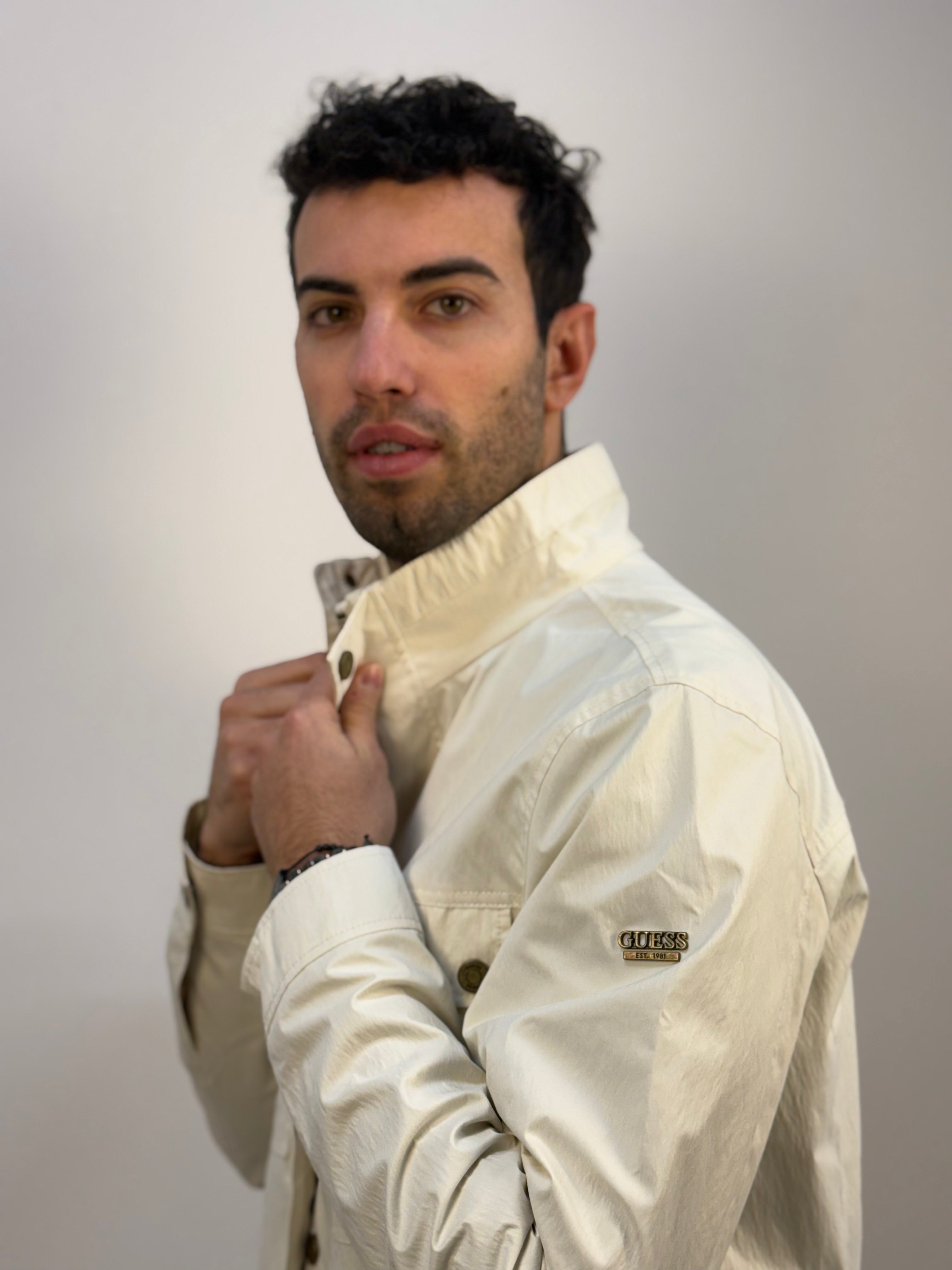 Giacca a vento GUESS resistente all'acqua, chiusura a zip e bottoni.