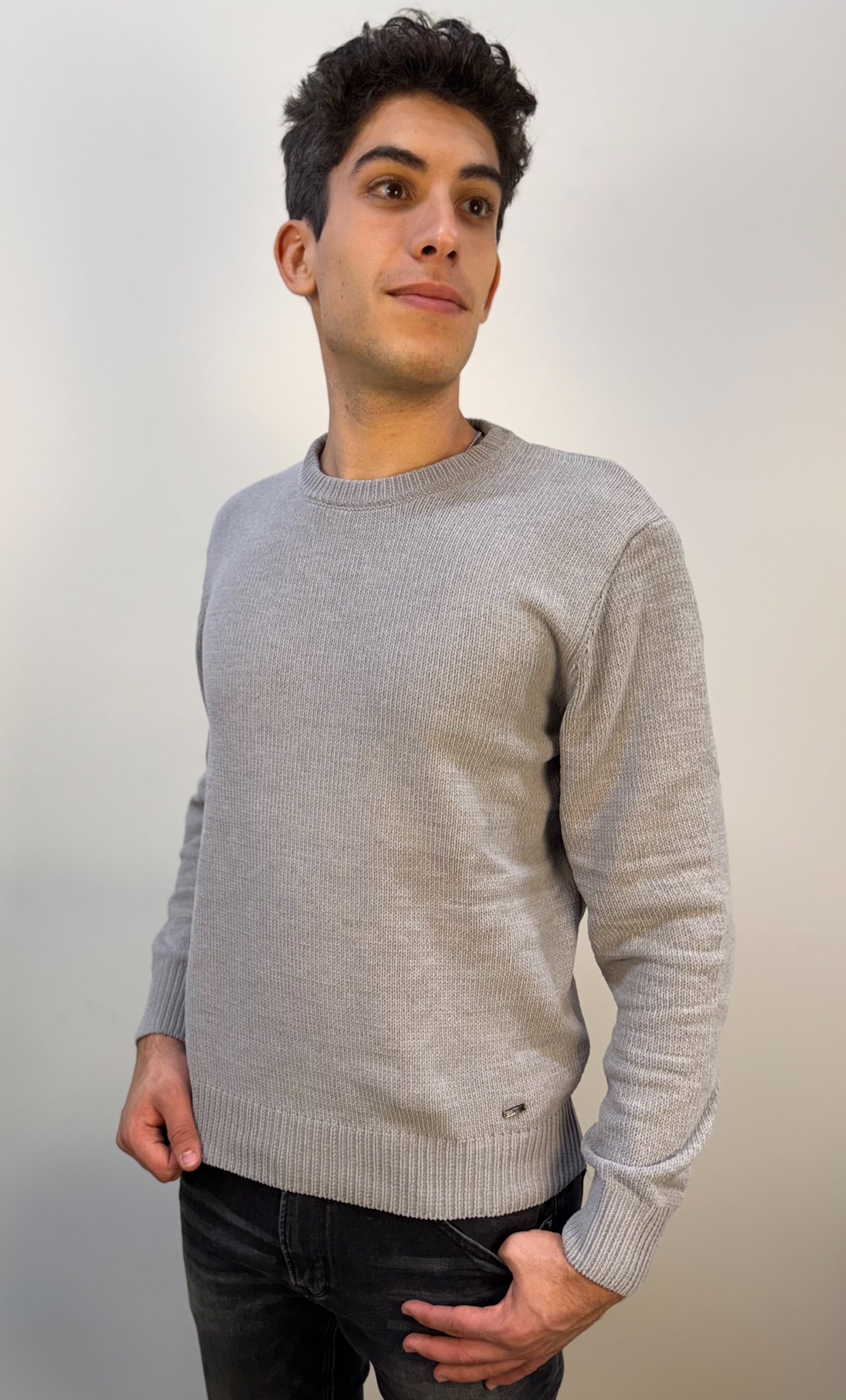 Maglione girocollo Gianni Lupo dalla linea essenziale, pensato per offrire comfort e calore durante i mesi più freddi. Realizzato in un tessuto elasticizzato e morbido, è piacevole da indossare e si adatta con facilità alla silhouette, garantendo una vestibilità comoda e naturale. La trama presenta una lavorazione tipo uncinetto che dona al capo un aspetto artigianale e ricercato, perfetto per aggiungere un tocco di stile anche ai look più semplici. Proposto in otto varianti colore — grigio, beige, panna, blu navy, pavone, caffè, olio e nero — si abbina facilmente a jeans, pantaloni in lana o look a strati, diventando un alleato versatile del guardaroba invernale.