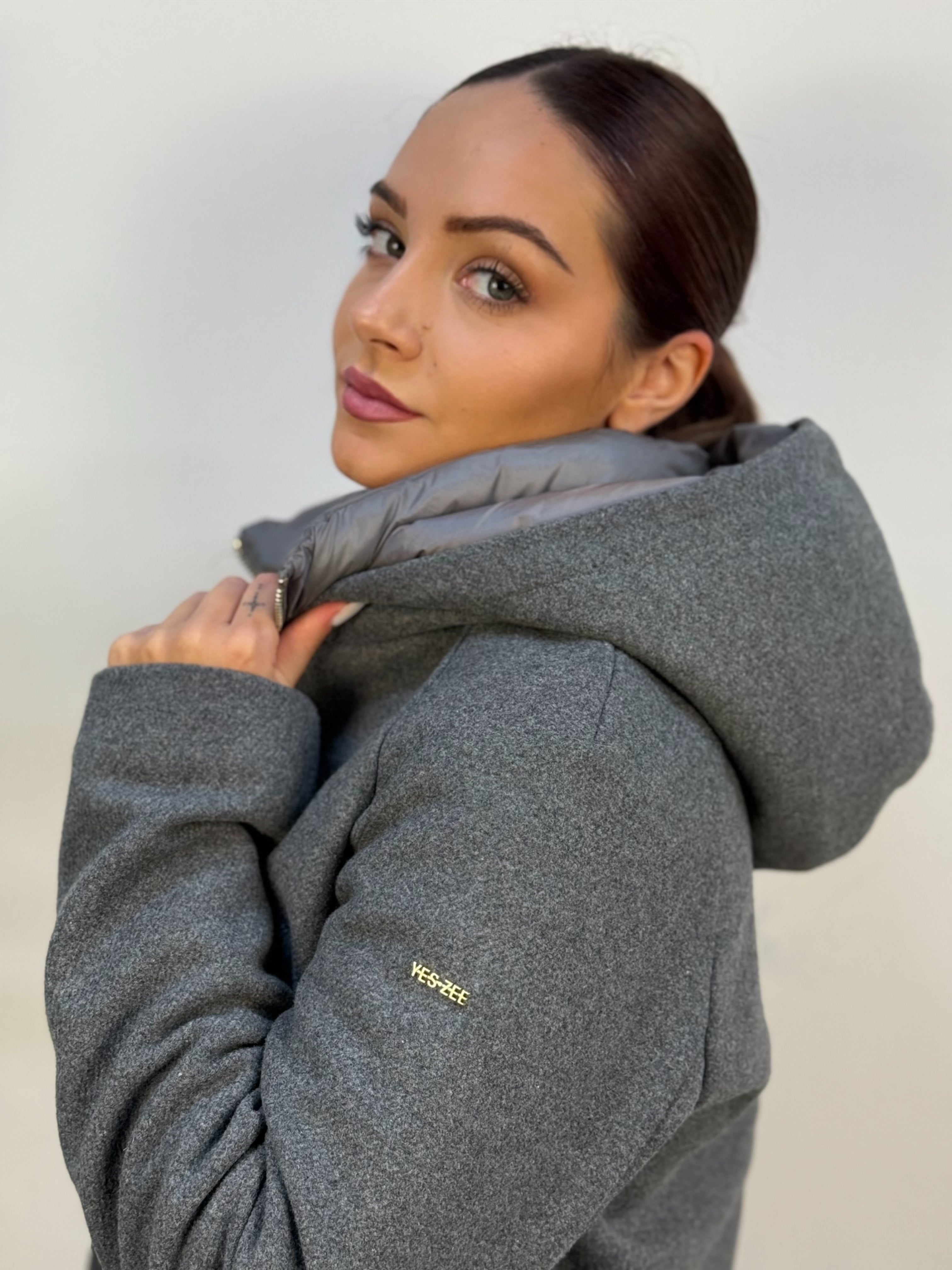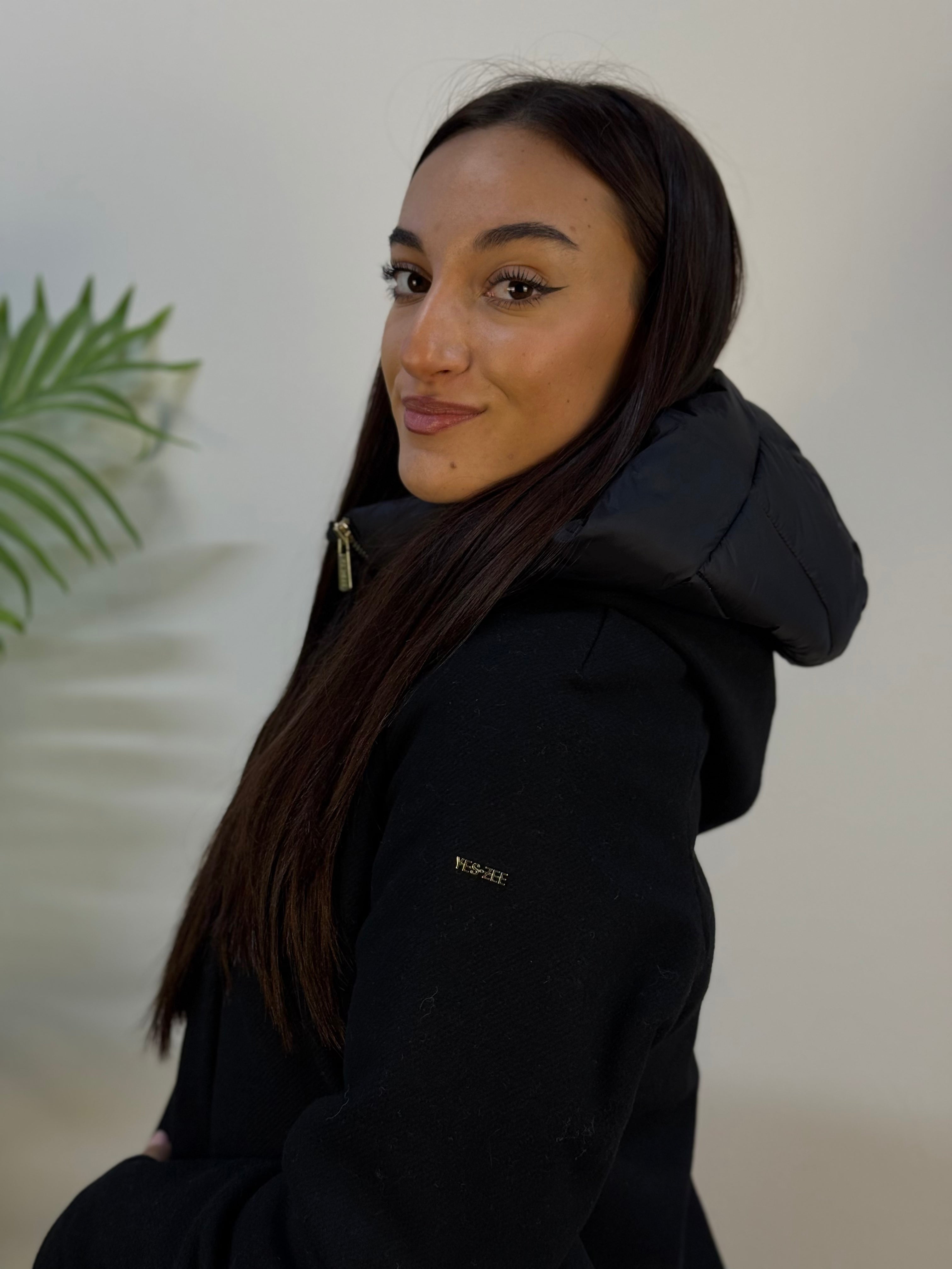 Cappotto lungo Yes-Zee imbottito all’interno, ideale per le giornate più fredde. Presenta chiusura con bottoni a pressione, paravento imbottito removibile con zip e due tasche frontali aperte. Il cappuccio removibile aggiunge praticità, mentre il logo metallico sulla manica completa il design con un tocco distintivo.