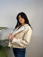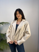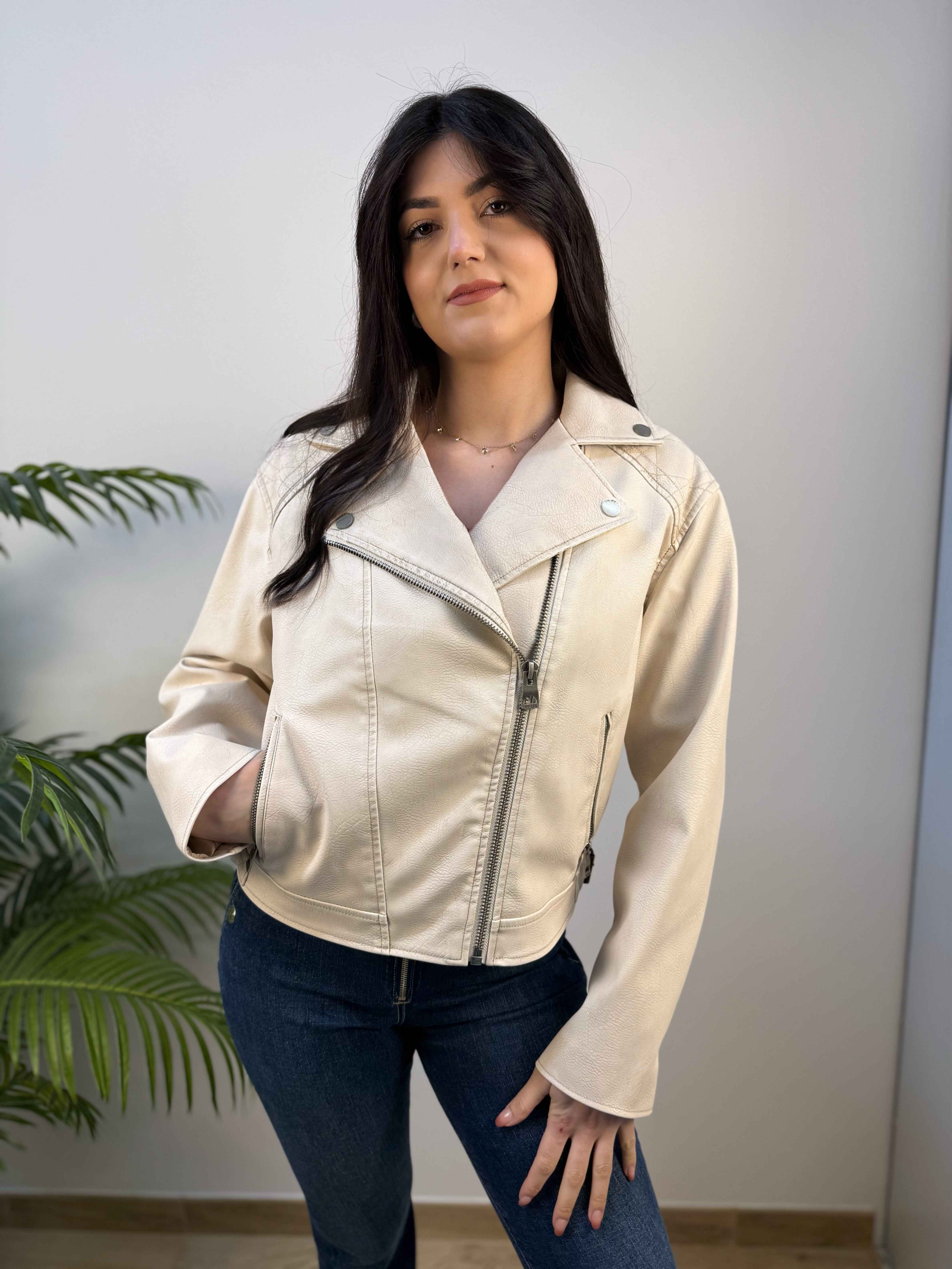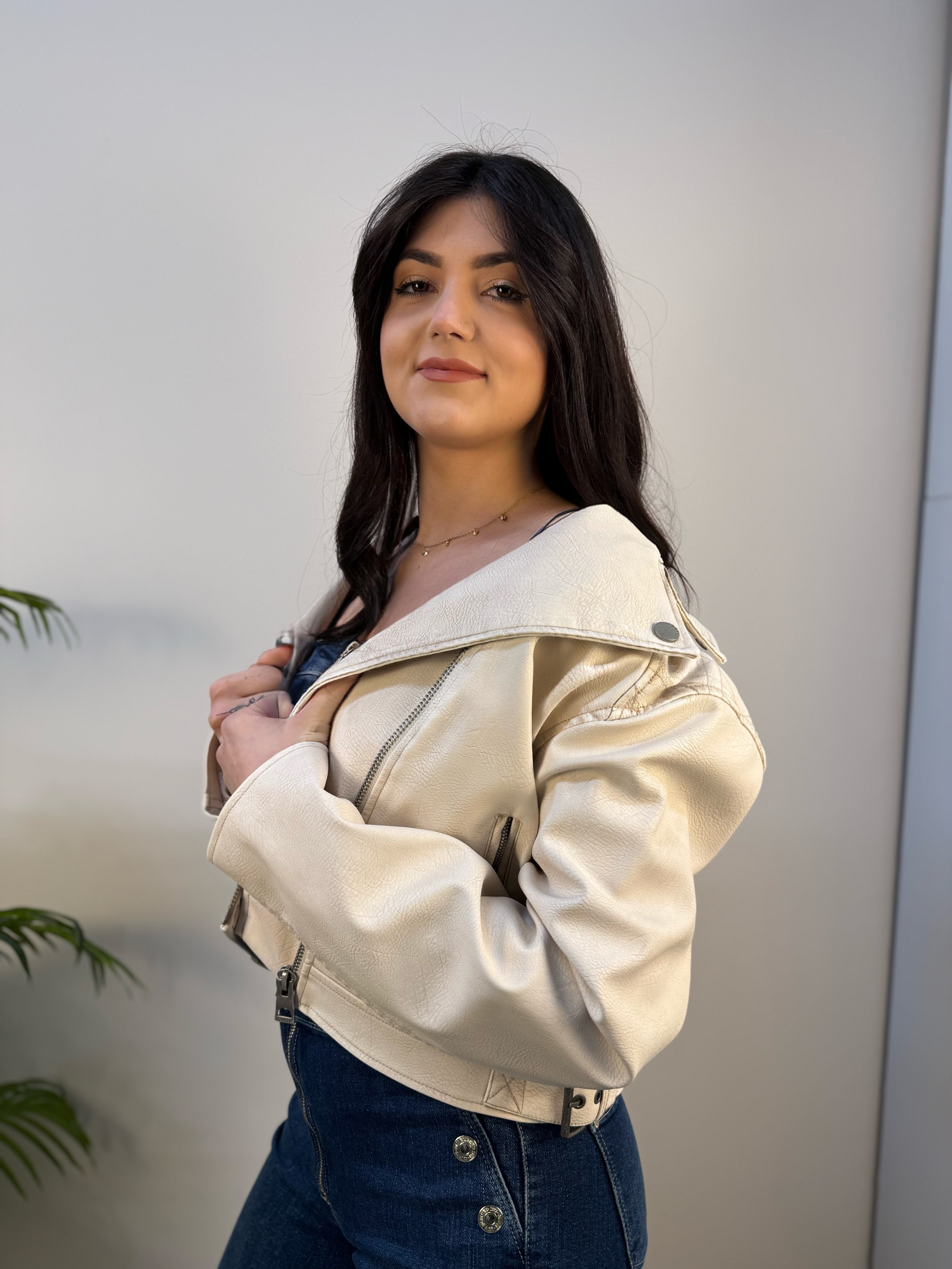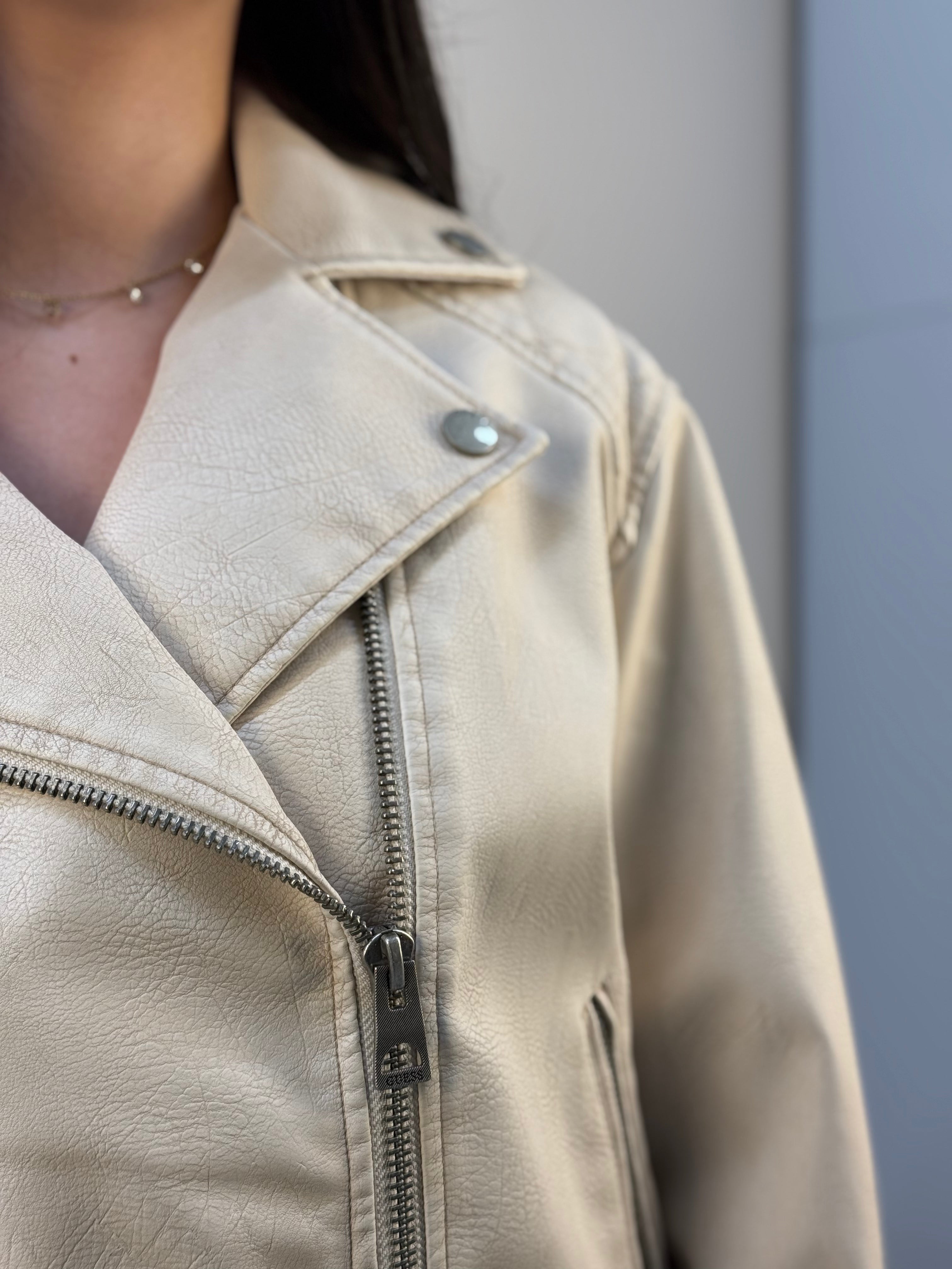 Giacca GUESS similpelle taglio over, con chiusura zip laterale.