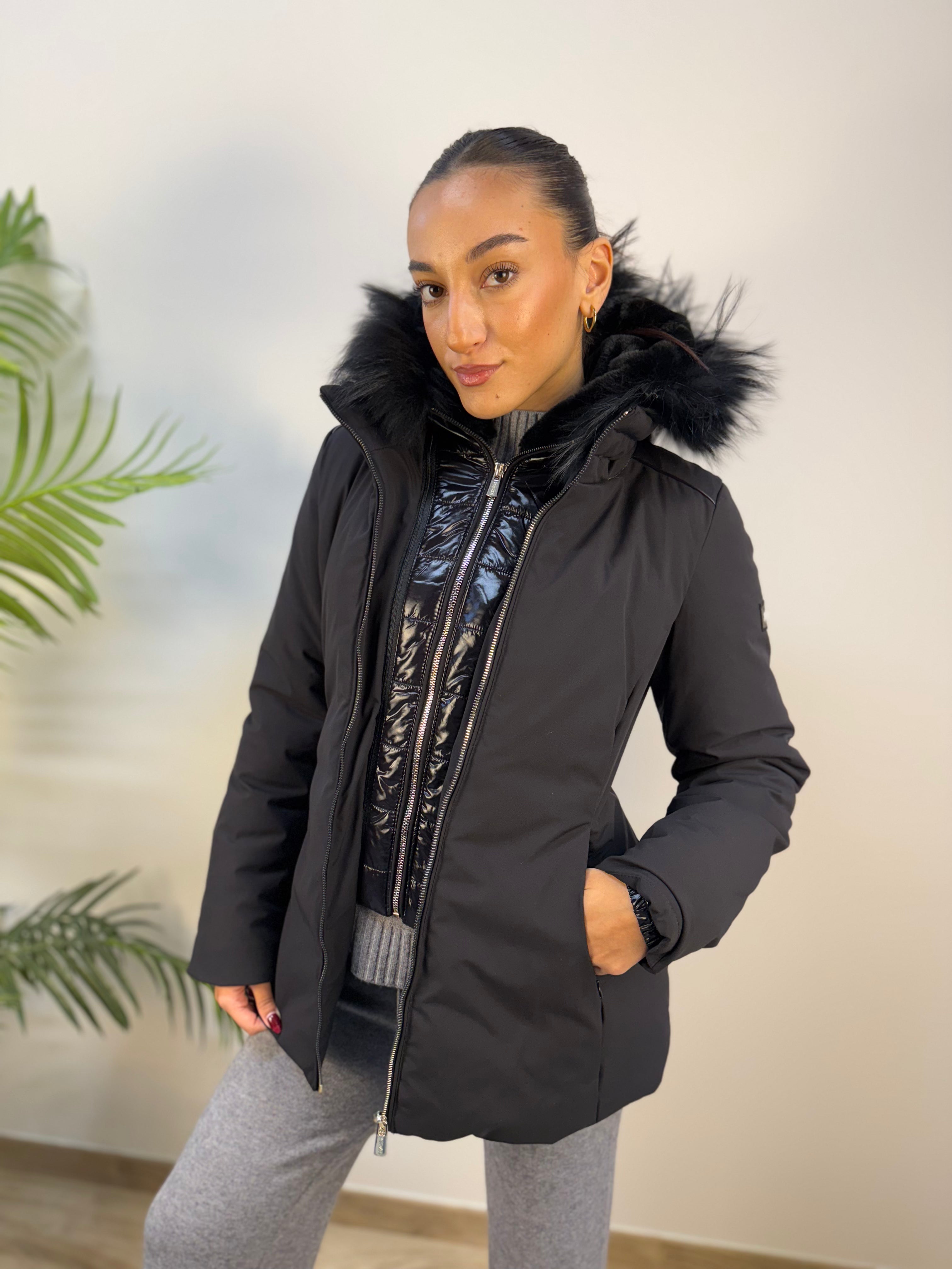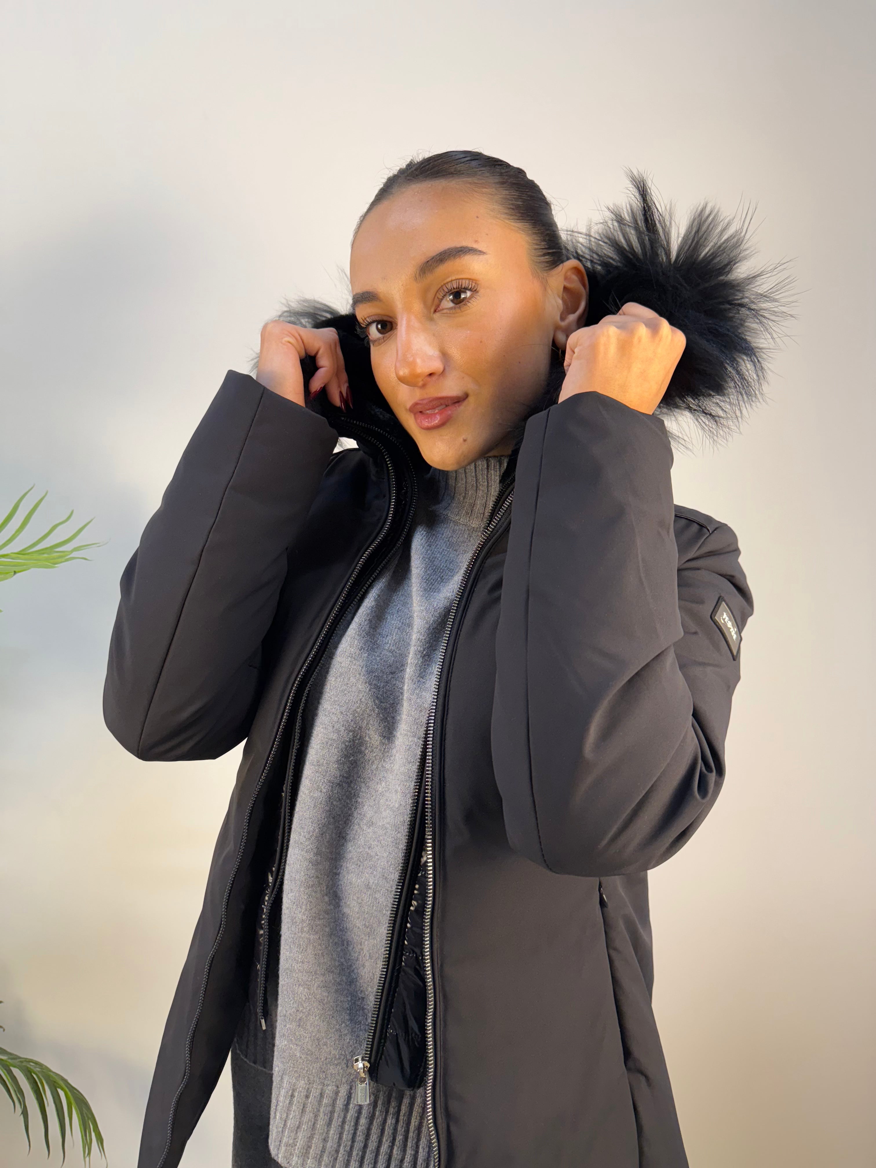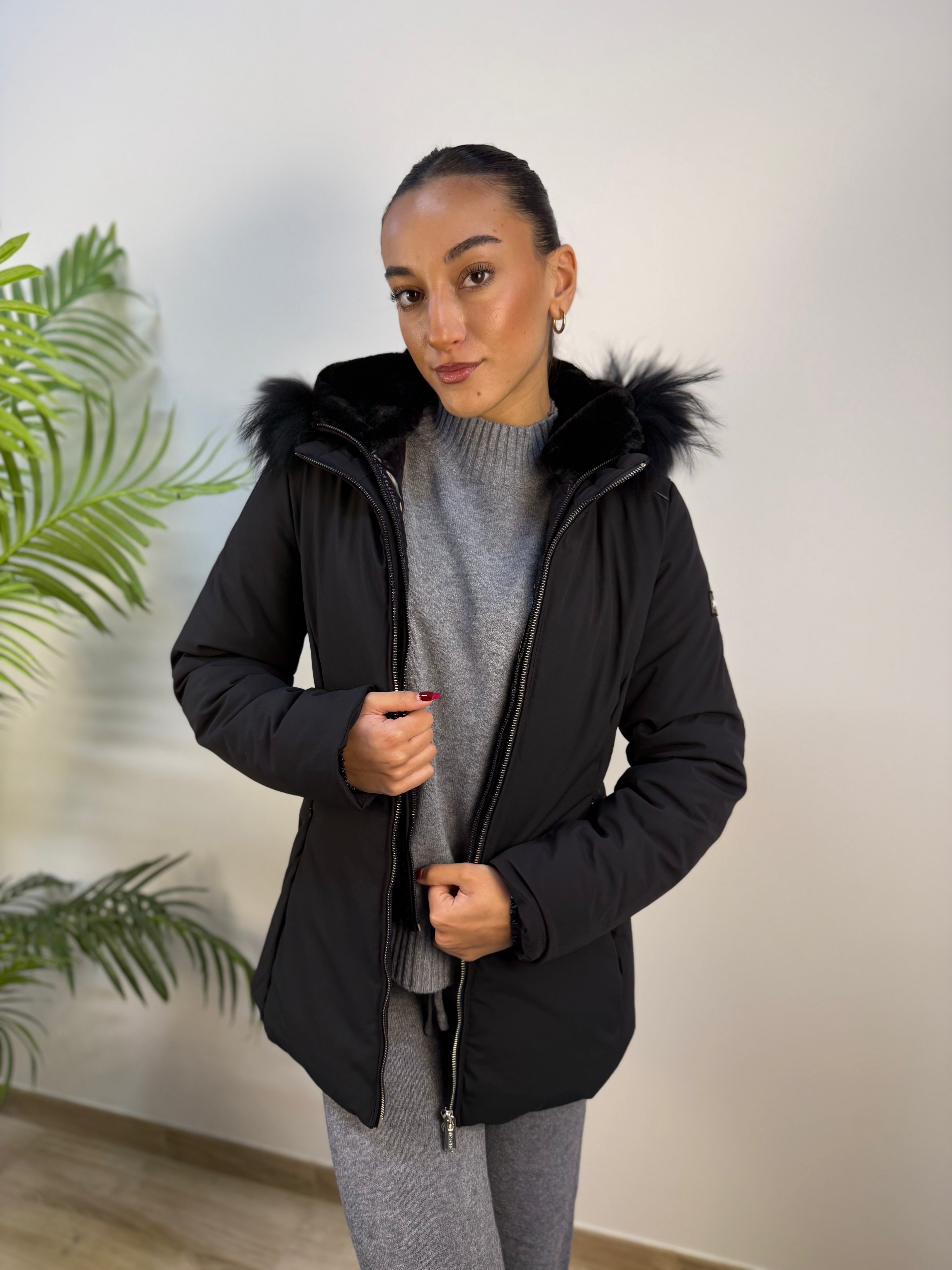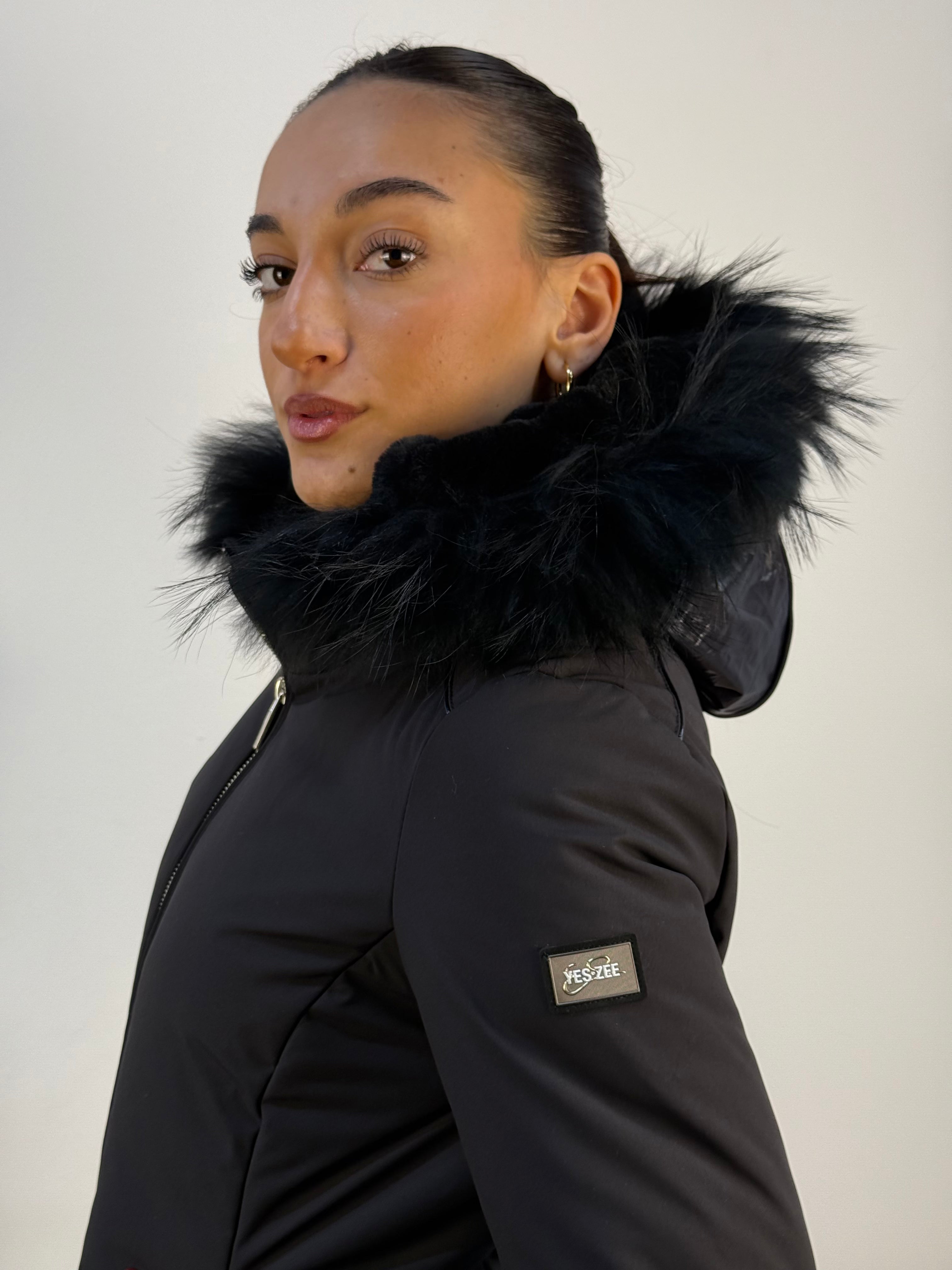 Design funzionale e raffinato per un giubbotto YES-ZEE che unisce stile e versatilità. La doppia zip permette di rimuovere la parte interna insieme al cappuccio, foderato in morbida pelliccia e anche sul bordo, per un comfort termico regolabile a seconda delle esigenze. Esternamente, il cappuccio presenta una superficie in tessuto tecnico lucido, in contrasto con la parte principale del capo, realizzata in tessuto tecnico liscio e leggermente sfiancato per valorizzare la silhouette. Un capo pratico, caldo e contemporaneo, perfetto per affrontare la stagione con eleganza e personalità.