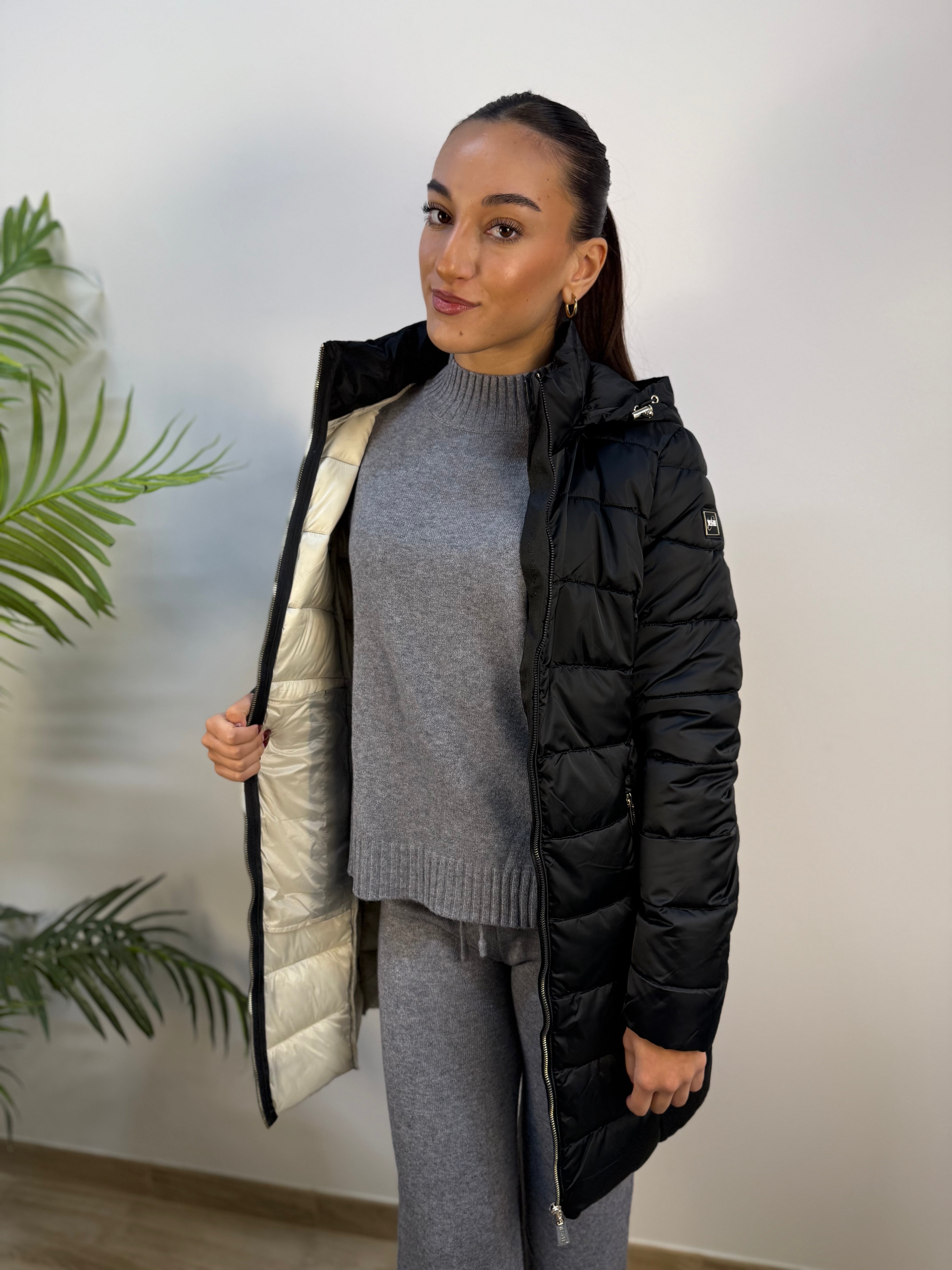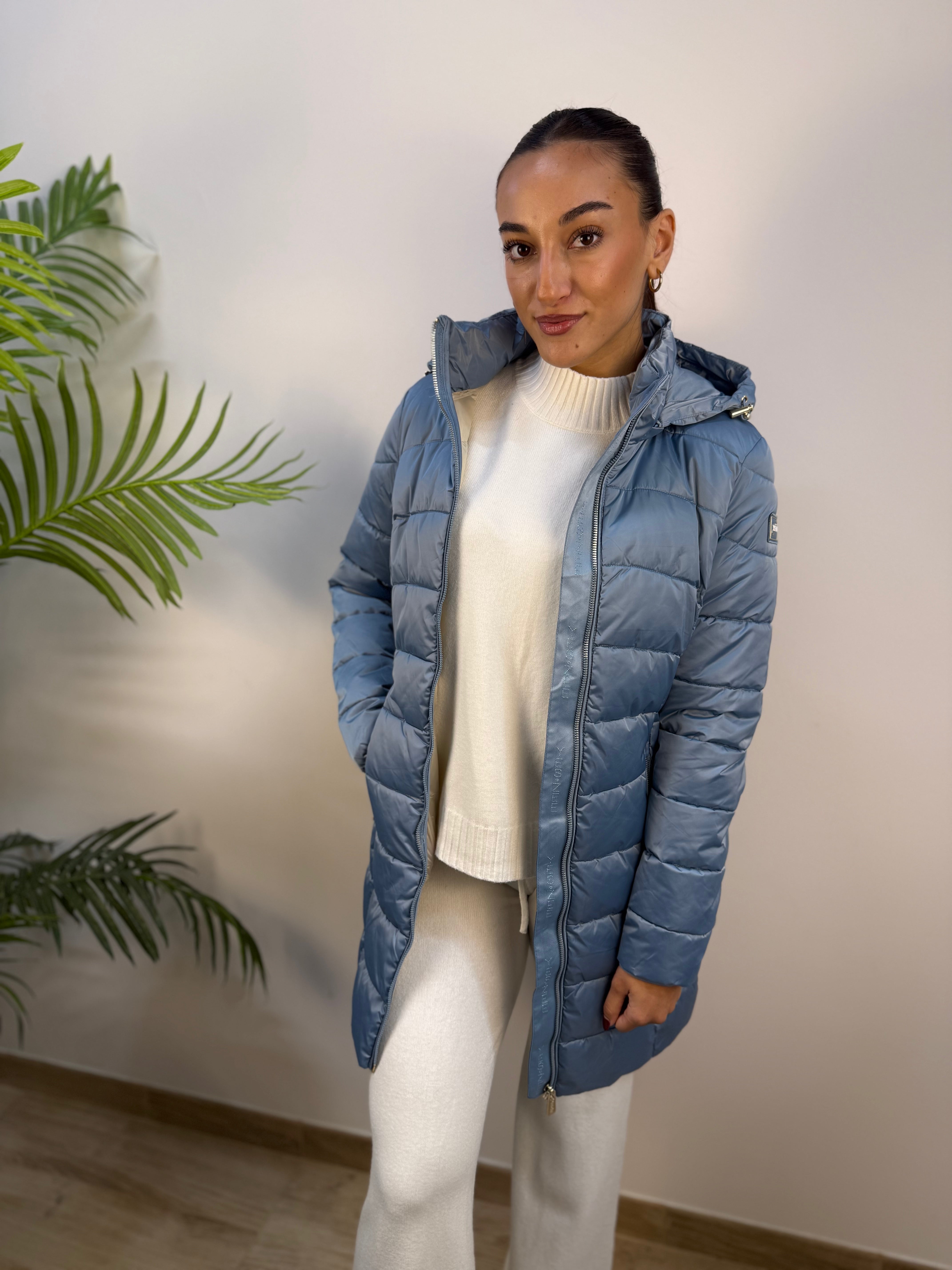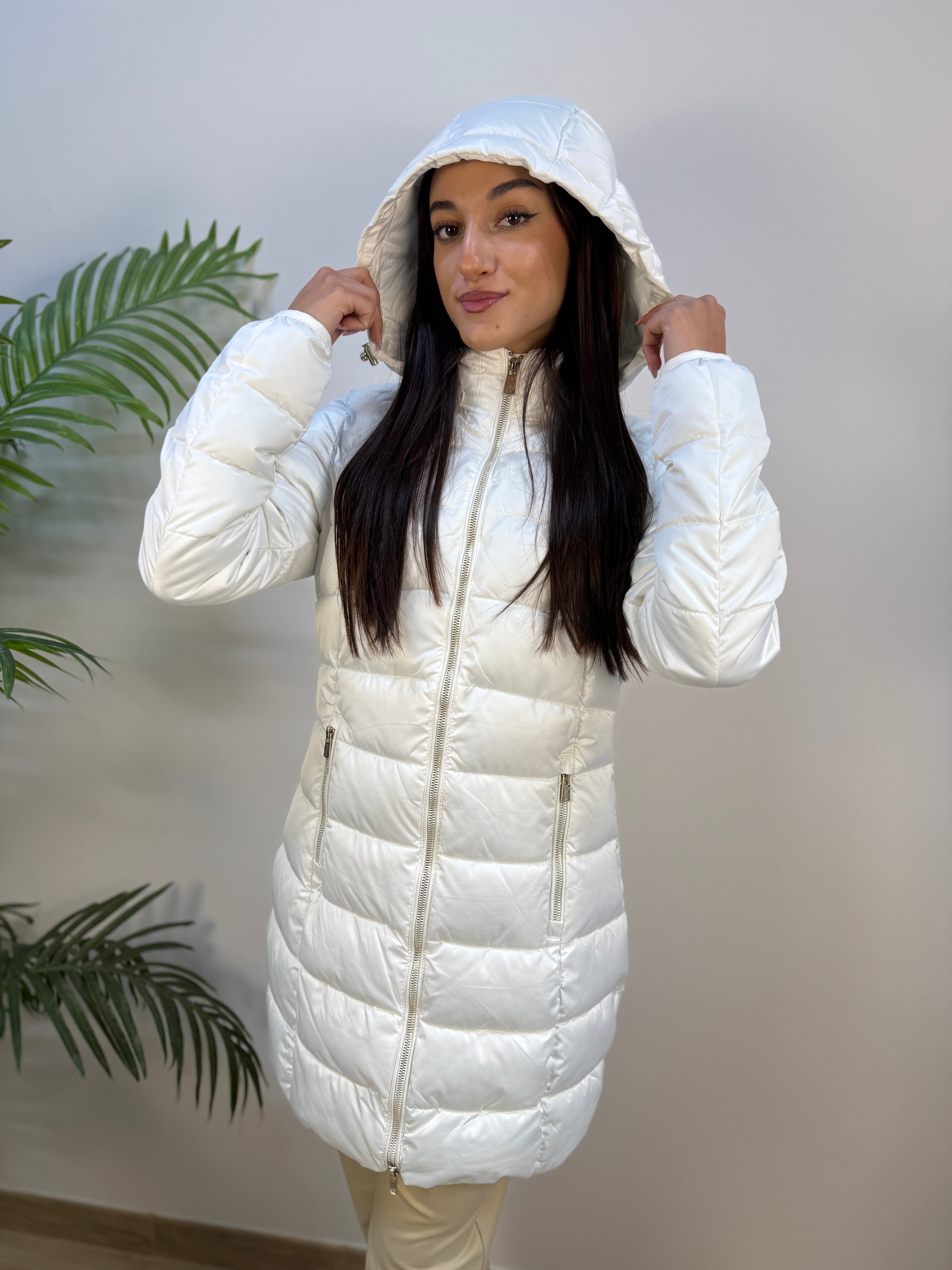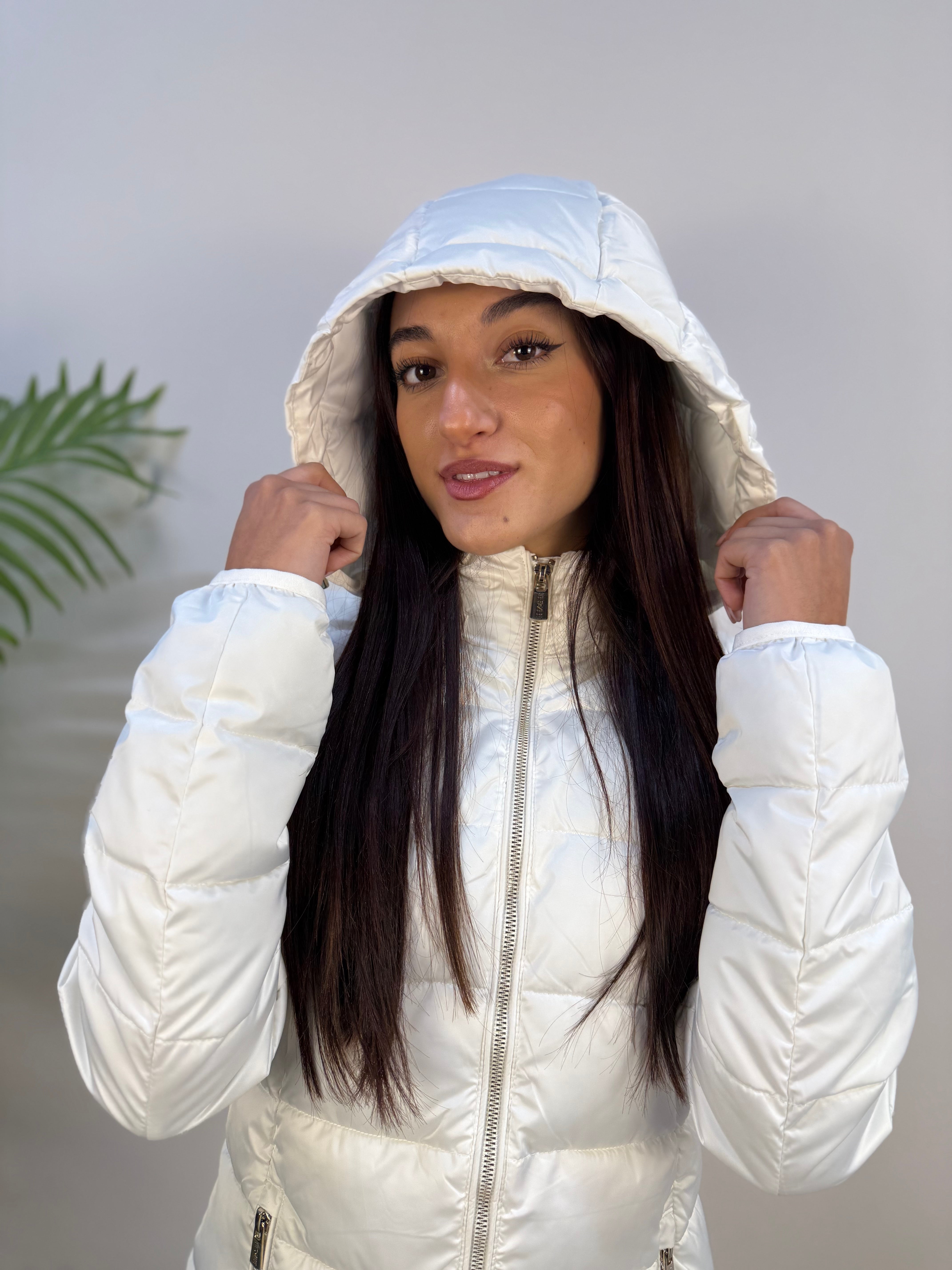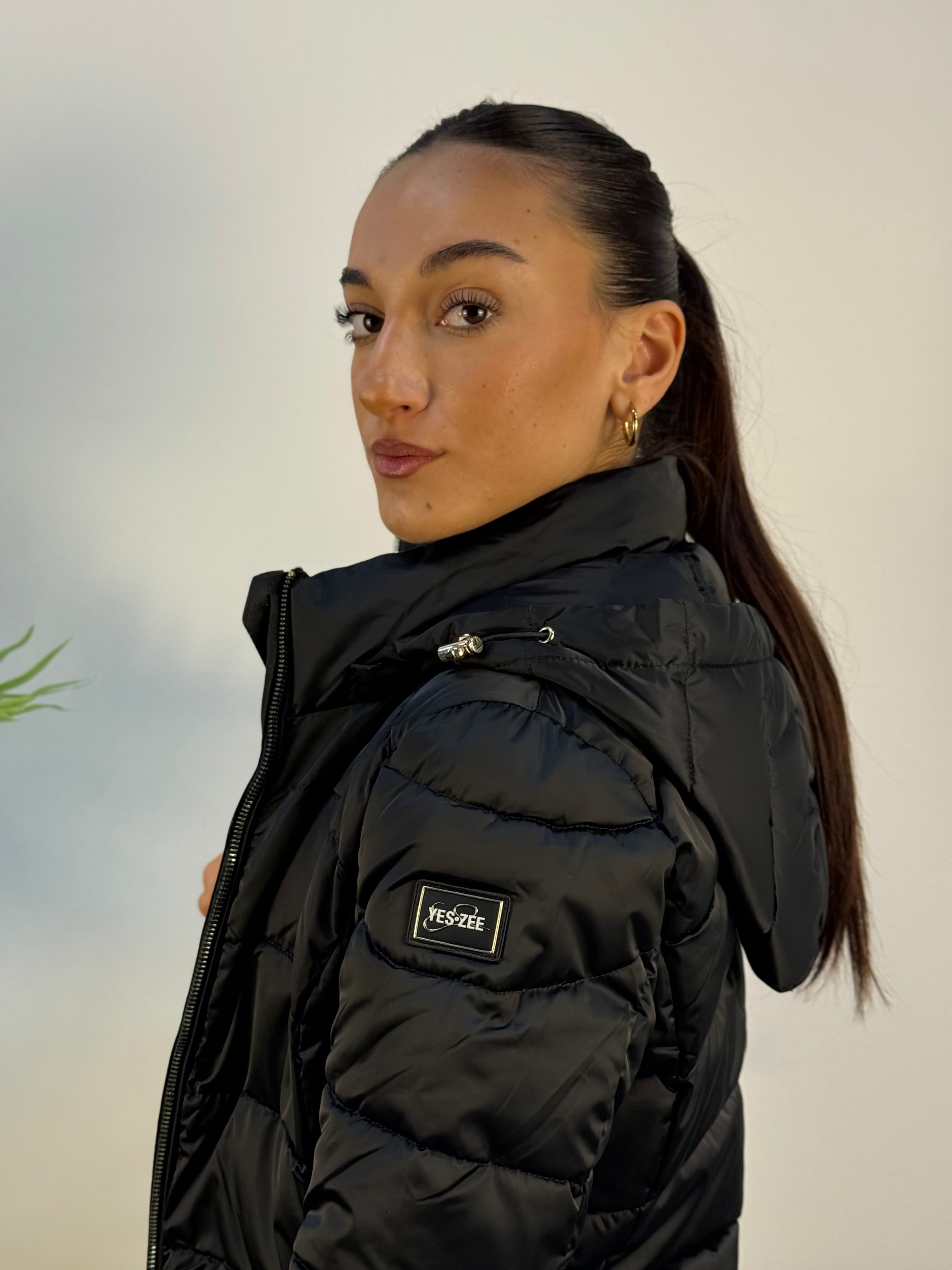 Giubbotto YES-ZEE caldo e raffinato, pensato per affrontare la stagione fredda con stile. La silhouette leggermente sfiancata valorizza la figura senza rinunciare al comfort, mentre il tessuto trapuntato dona un aspetto contemporaneo e femminile. Il cappuccio removibile aggiunge versatilità, permettendo di adattare il look alle diverse occasioni. Completano il design le due tasche laterali con chiusura a zip, pratiche e discrete. Un giubbotto elegante, funzionale e perfetto per ogni giorno.