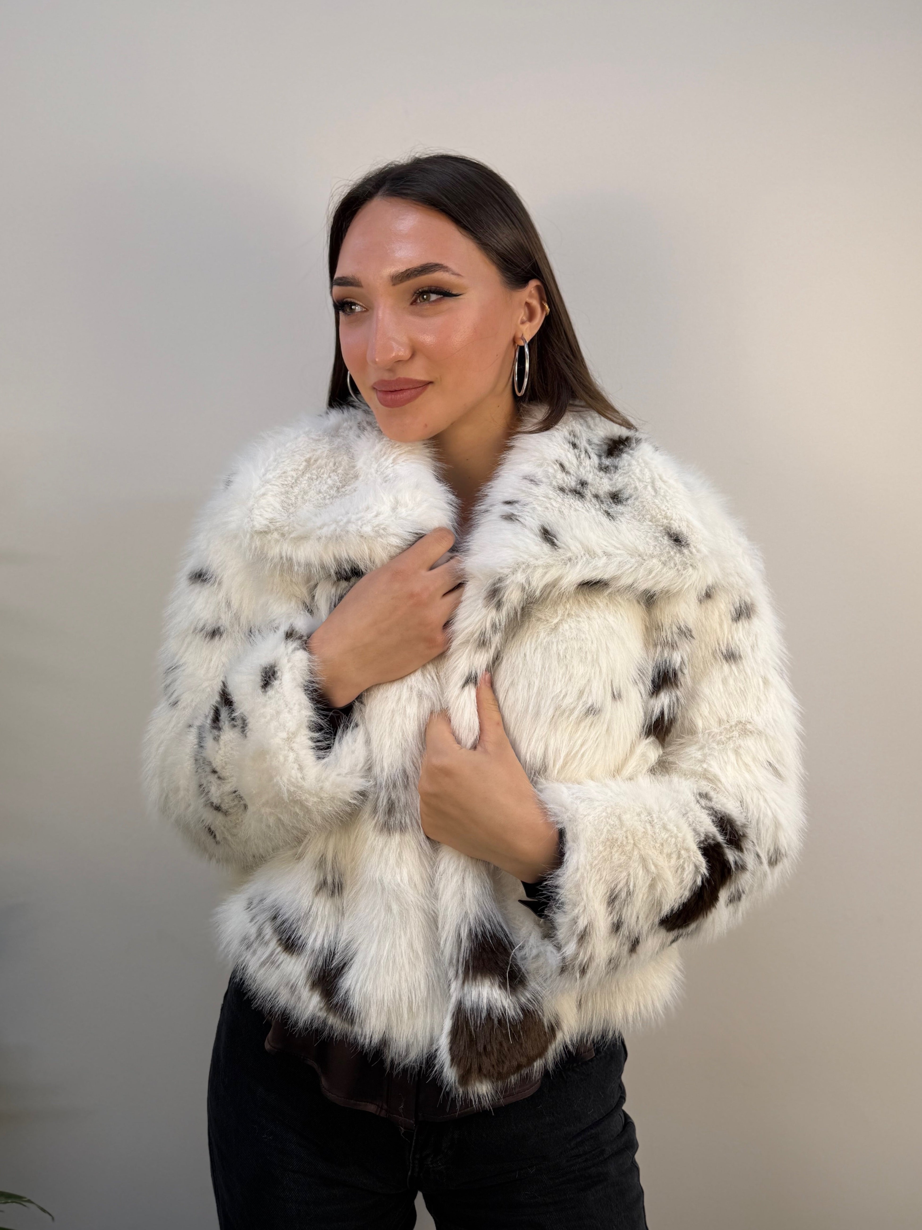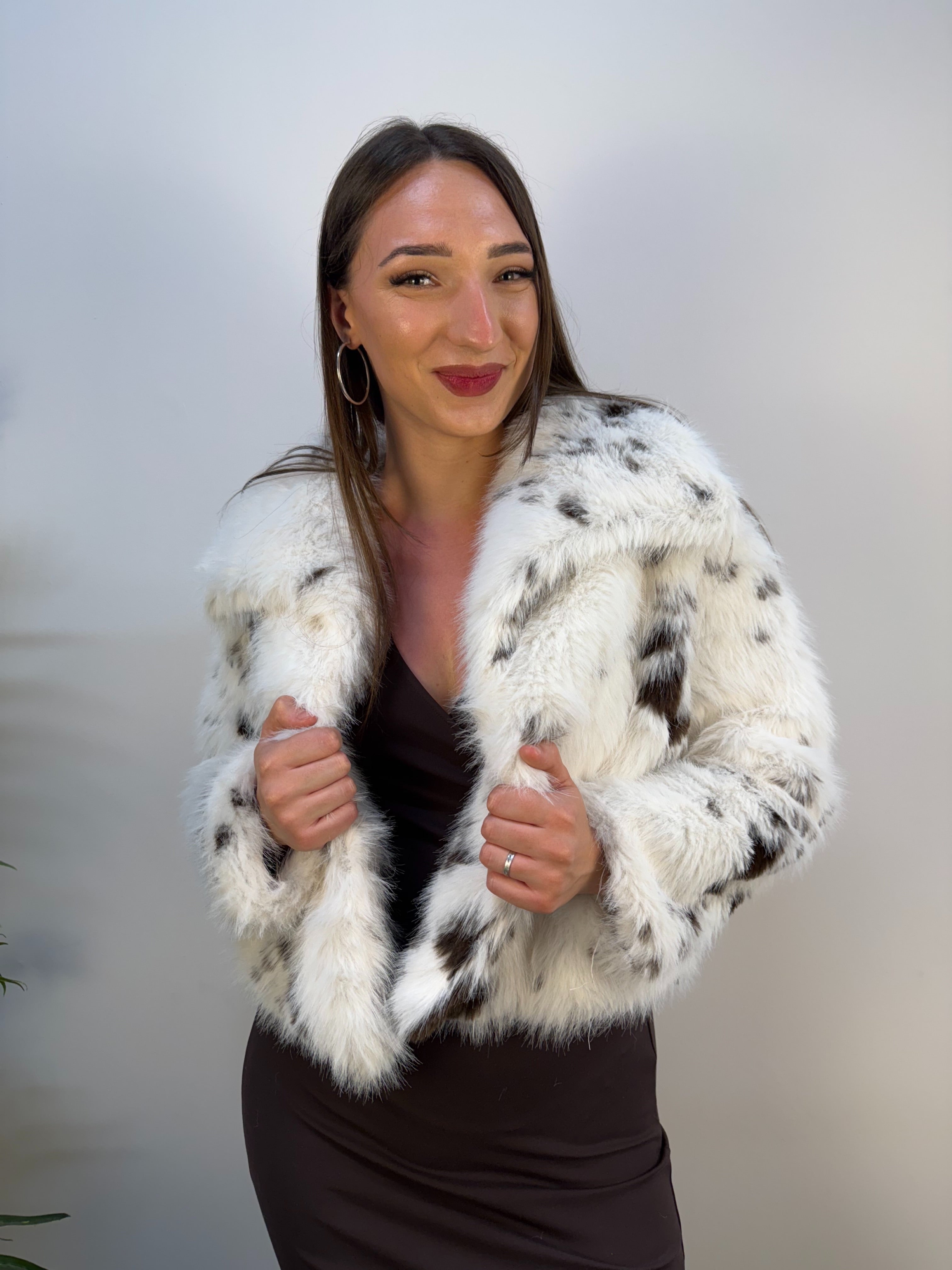 Un capo che unisce eleganza e personalità: questa pelliccia corta Susy Mix muccata si distingue per la sua fantasia unica e sofisticata, perfetta per chi vuole aggiungere un tocco di carattere al proprio guardaroba invernale. Il taglio corto e lo scollo a piega valorizzano la silhouette, mentre la chiusura con due gancetti nascosti garantisce una linea pulita e raffinata. Ideale per completare look chic e di tendenza con originalità.