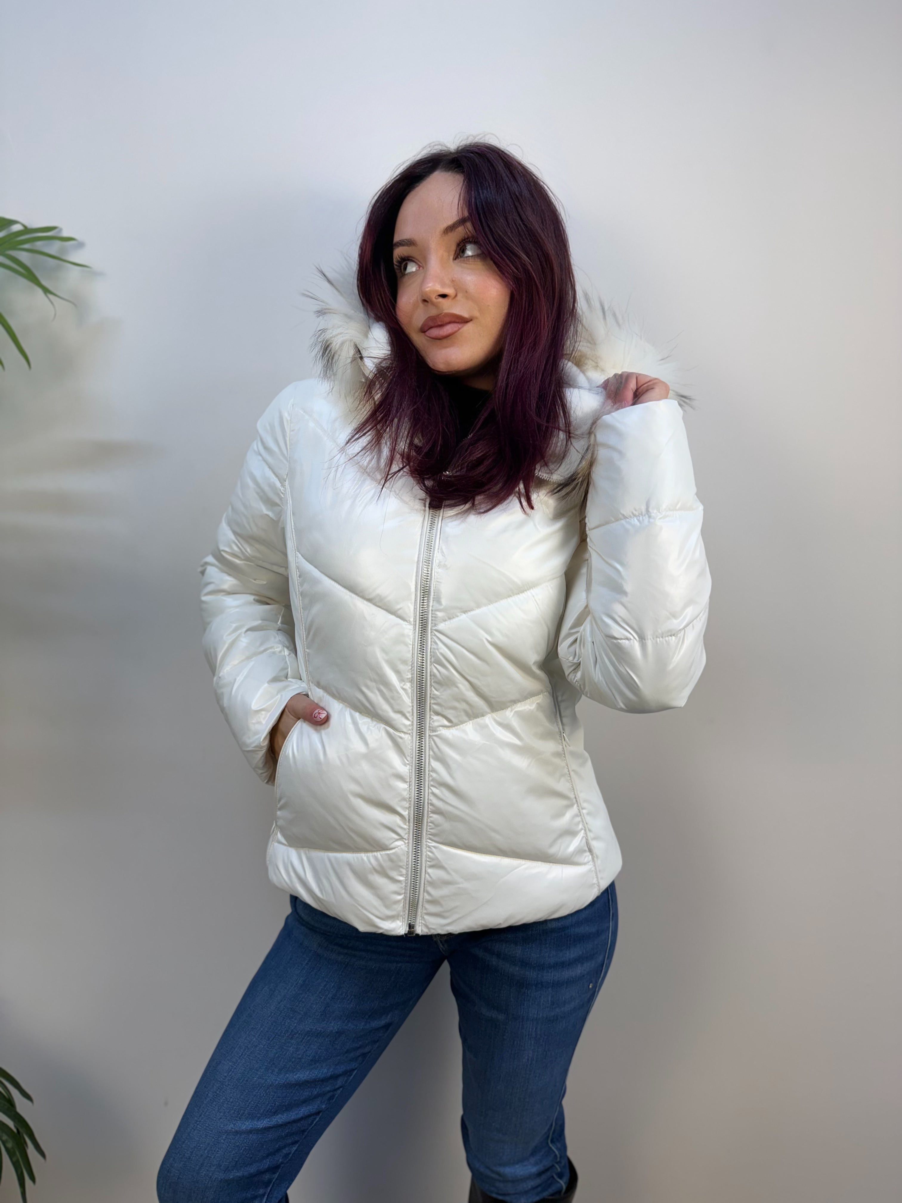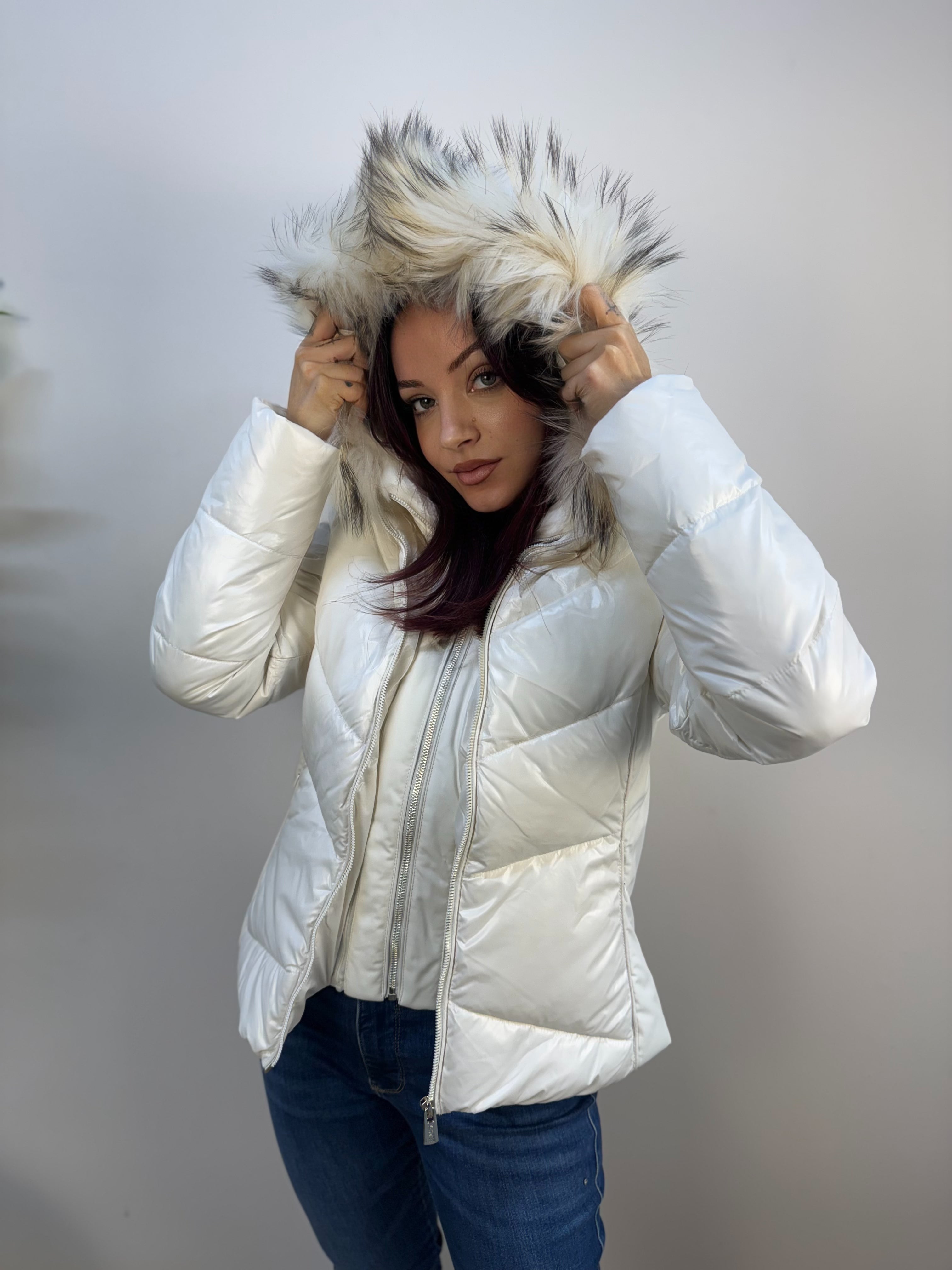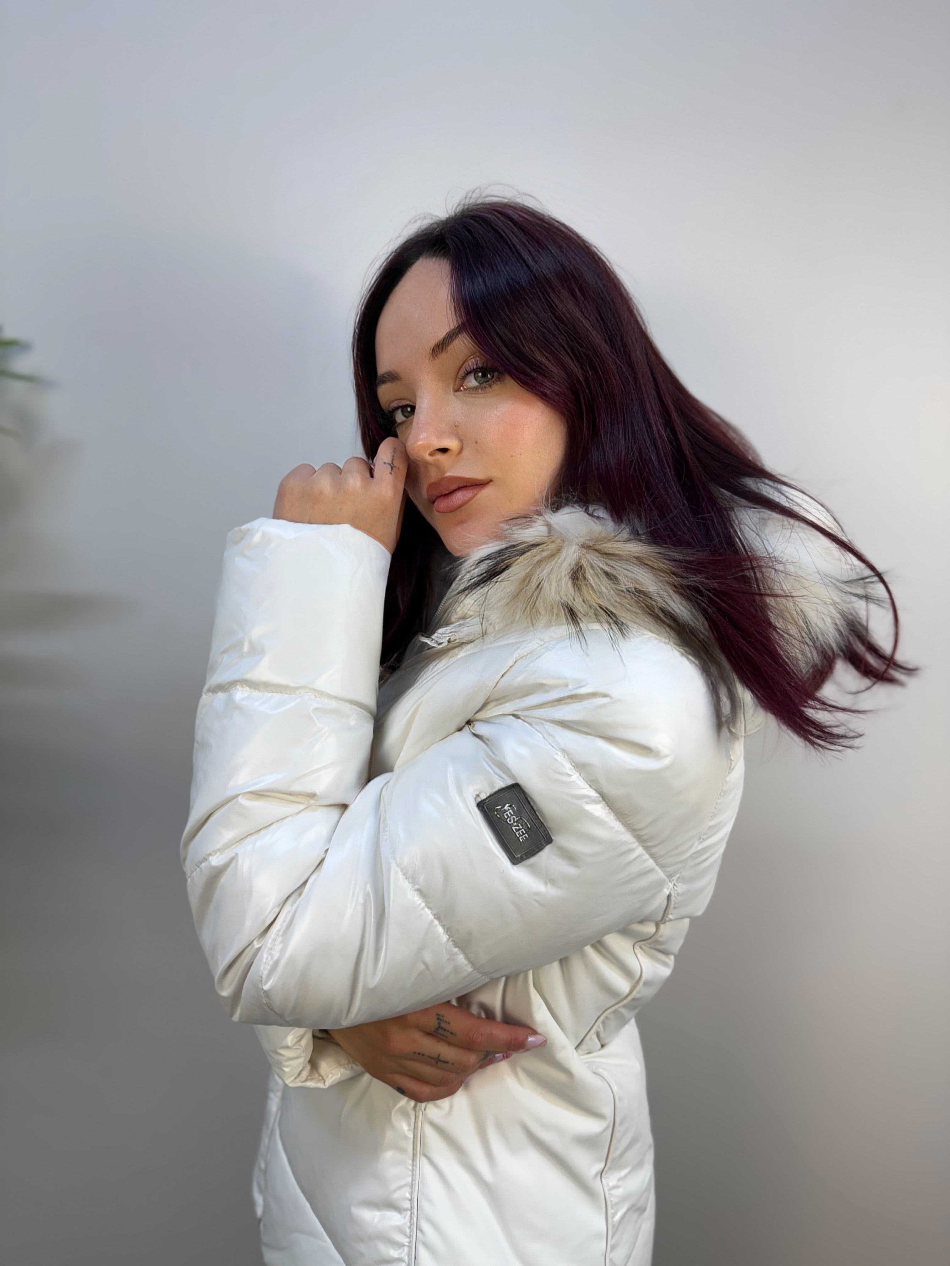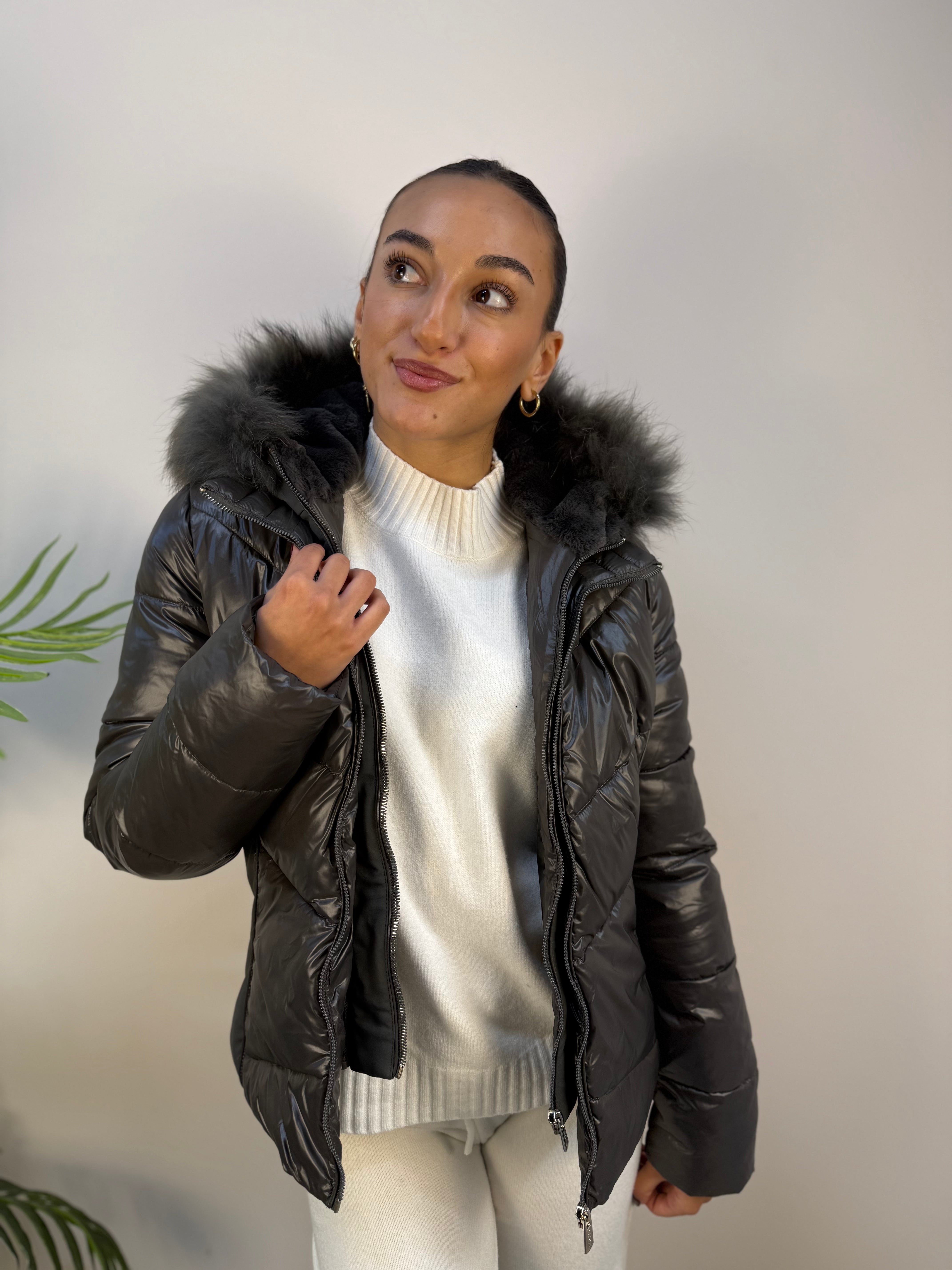 Piumino Yes-Zee con dettagli laterali in tessuto tecnico, dotato di inserto antivento e cappuccio removibili. L’interno del cappuccio è in pelo corto con bordo in pelo per maggiore calore. Presenta tasche laterali con zip invisibile e chiusura frontale con zip. Caldo e raffinato, unisce funzionalità e stile elegante per la stagione fredda.