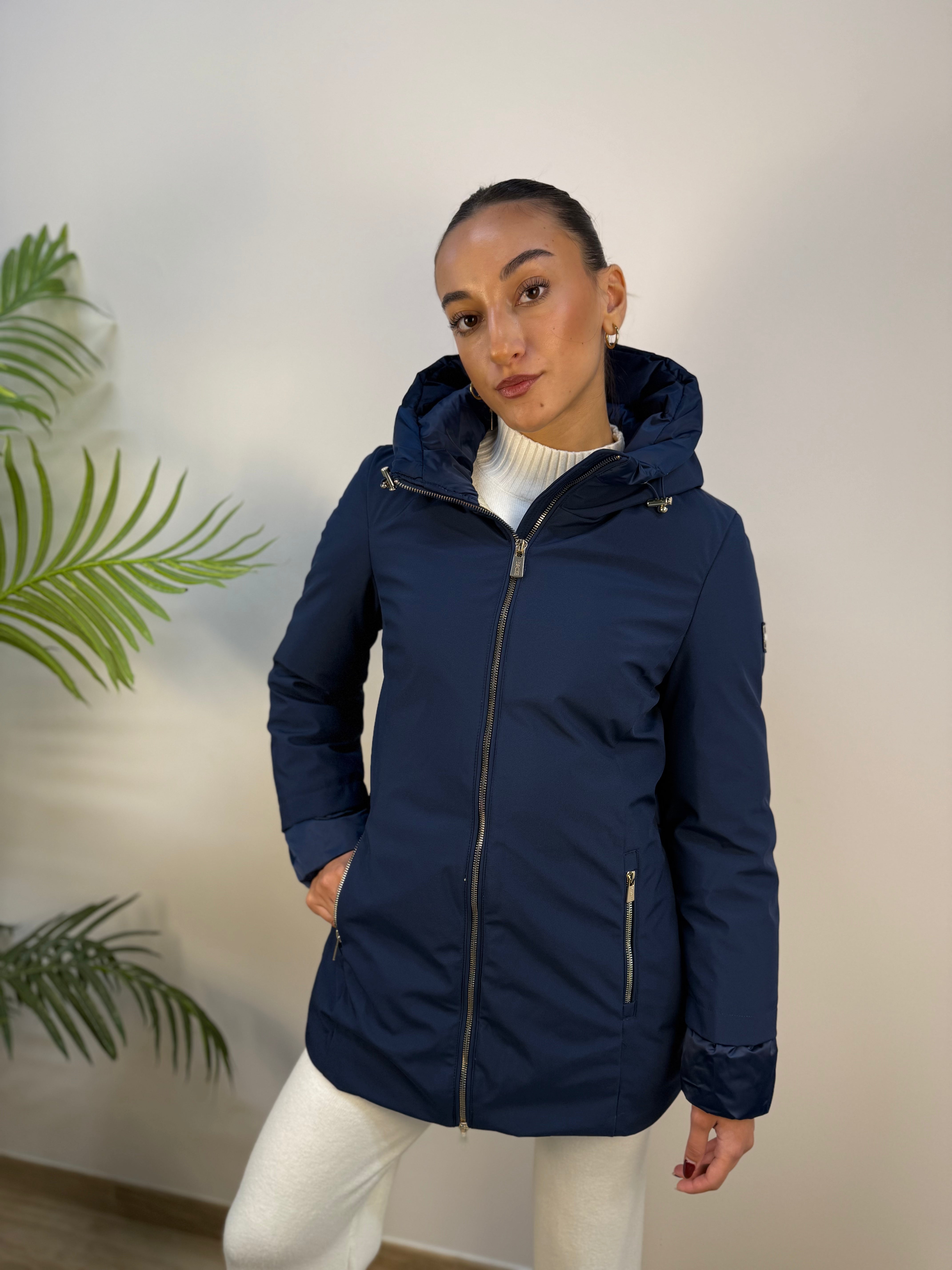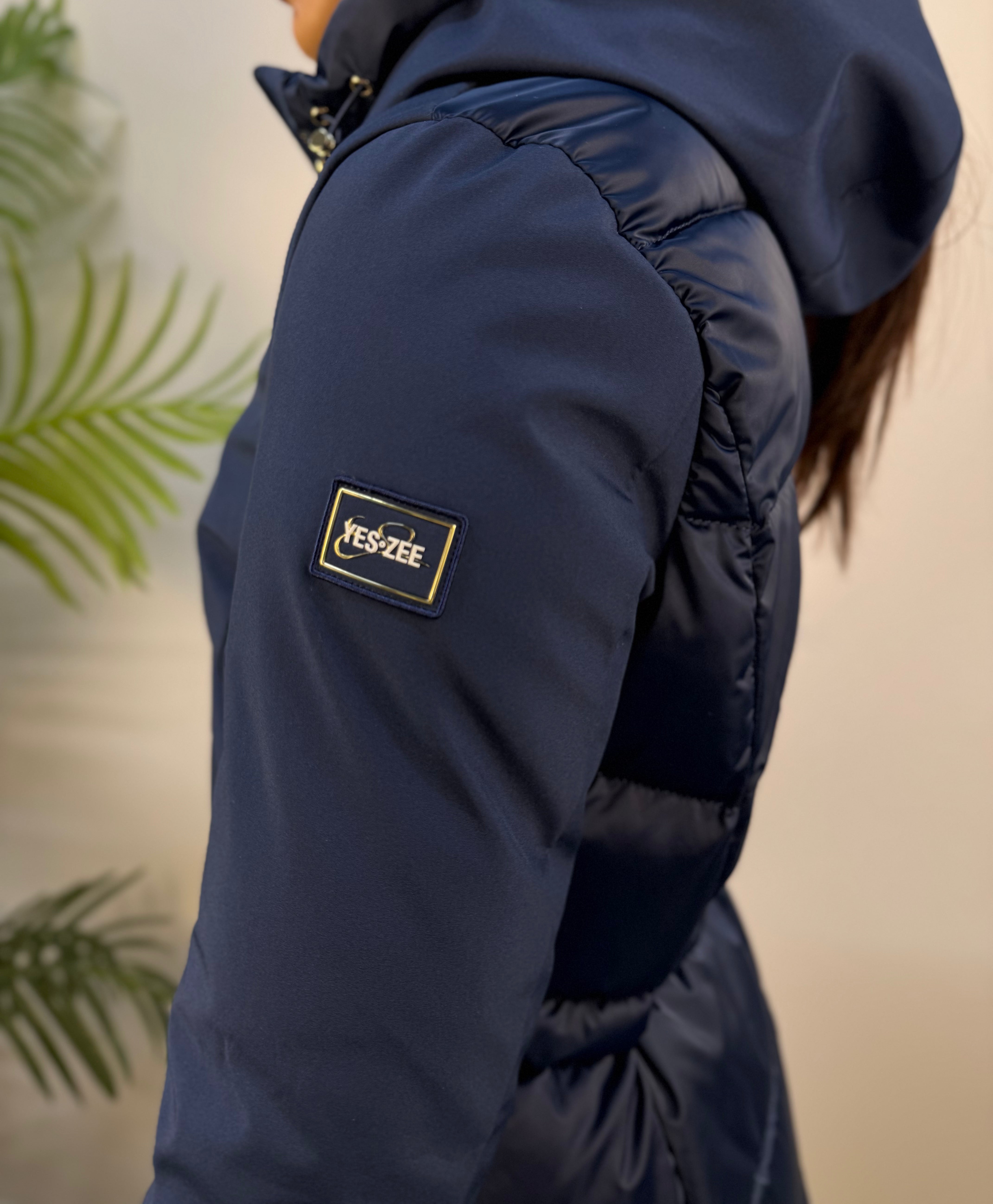 Piumino Yes-Zee con fronte in tessuto tecnico e retro e interno trapuntati, caldo e confortevole. Dotato di chiusura frontale con zip e tasche frontali con zip oro, in coordinato con la zip principale. I polsini elasticizzati garantiscono comfort e vestibilità sostenuta, per un capo pratico e raffinato.