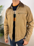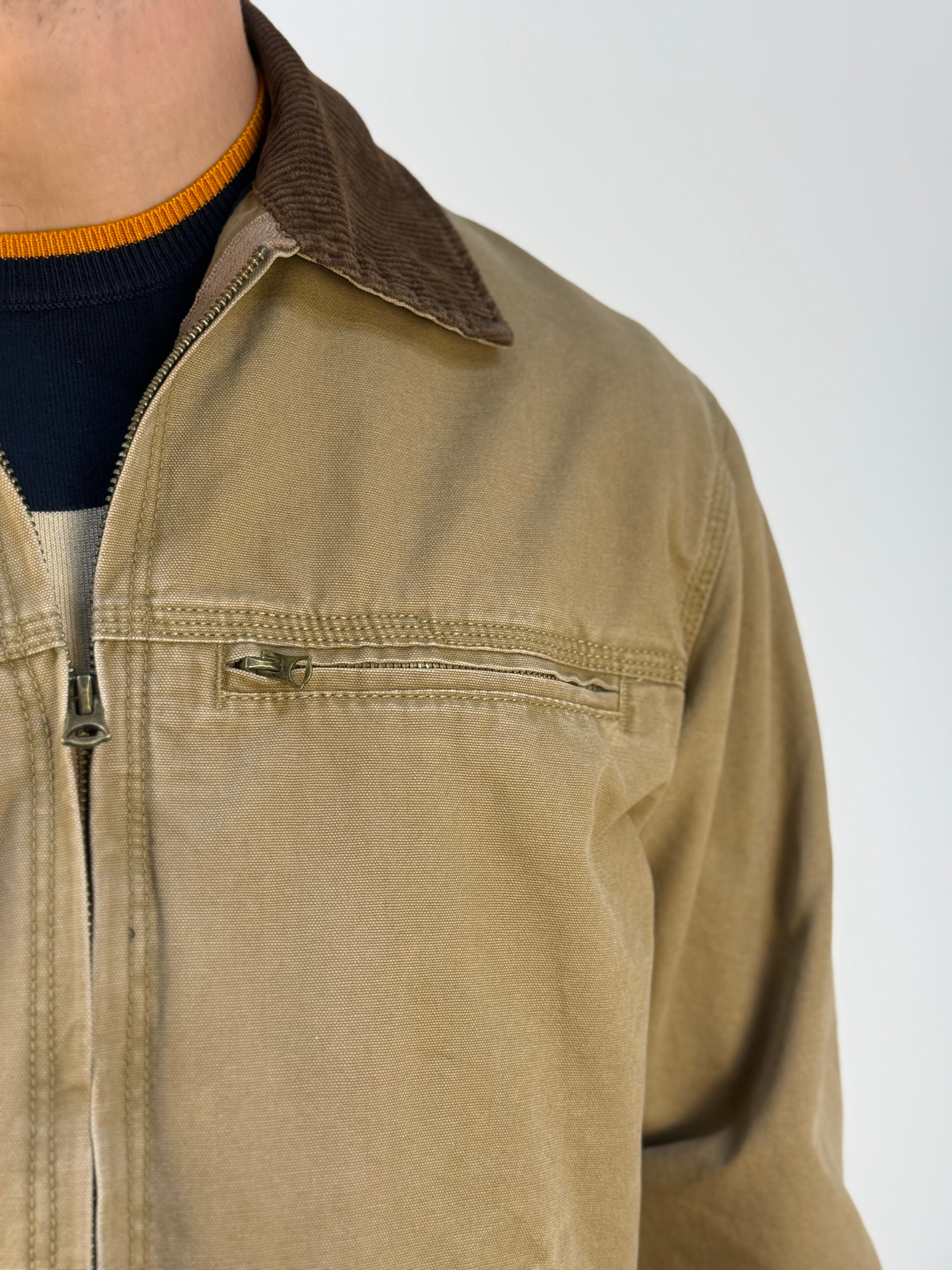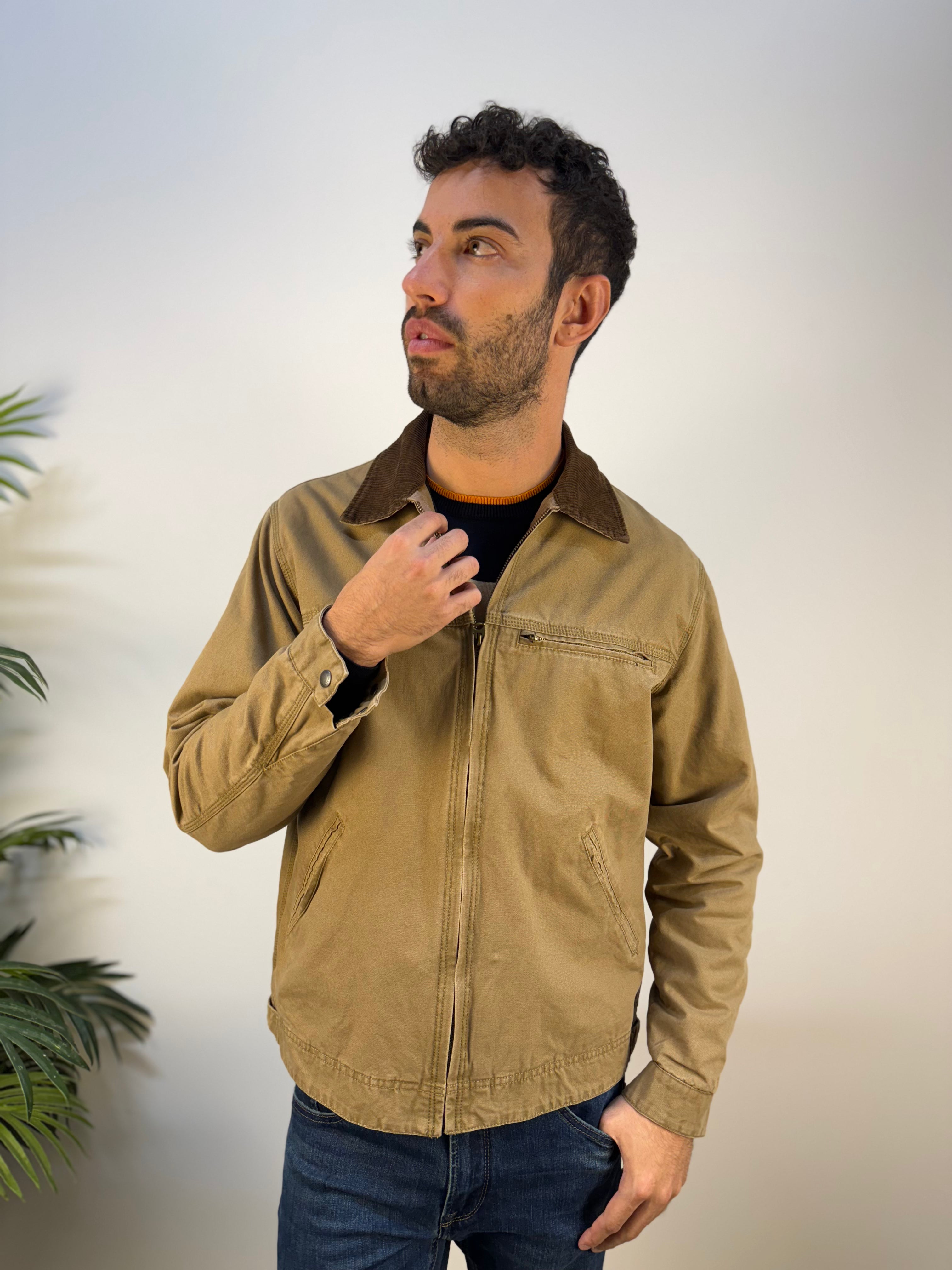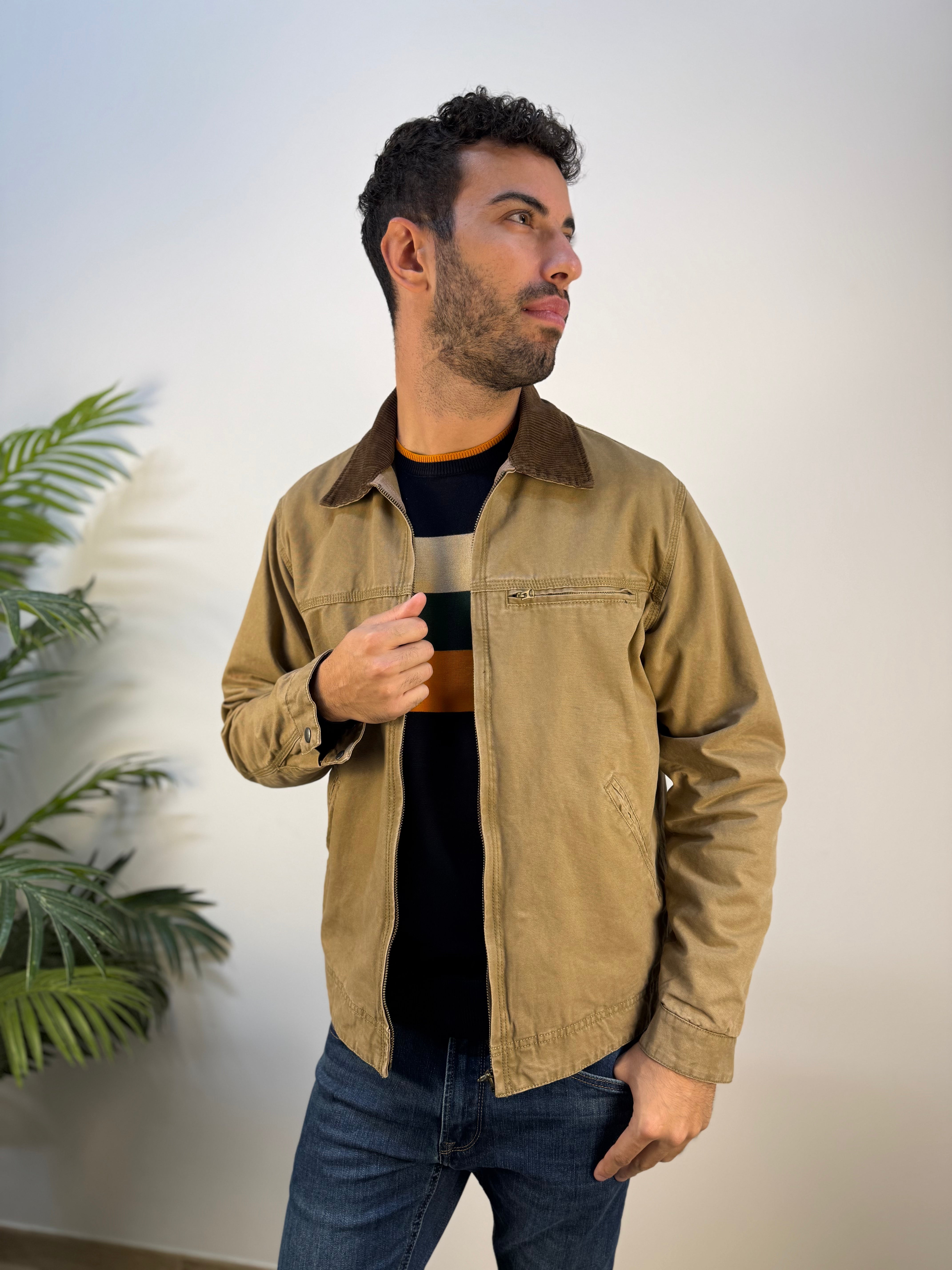 Giubbotto Palma3 dal tono cammello, caratterizzato da un design essenziale e raffinato. Il modello presenta una leggera imbottitura interna che assicura comfort e calore, mentre il colletto in camoscio aggiunge un tocco di eleganza materica. È dotato di una tasca sul cuore con chiusura a zip e di due tasche cucite applicate sul fronte. I polsini con bottone a pressione completano il capo, garantendo una vestibilità sicura e uno stile curato nei dettagli. Un giubbotto versatile, perfetto per affrontare la stagione con stile e comfort, ideale sia per look casual che più raffinati.