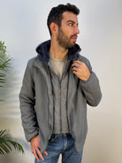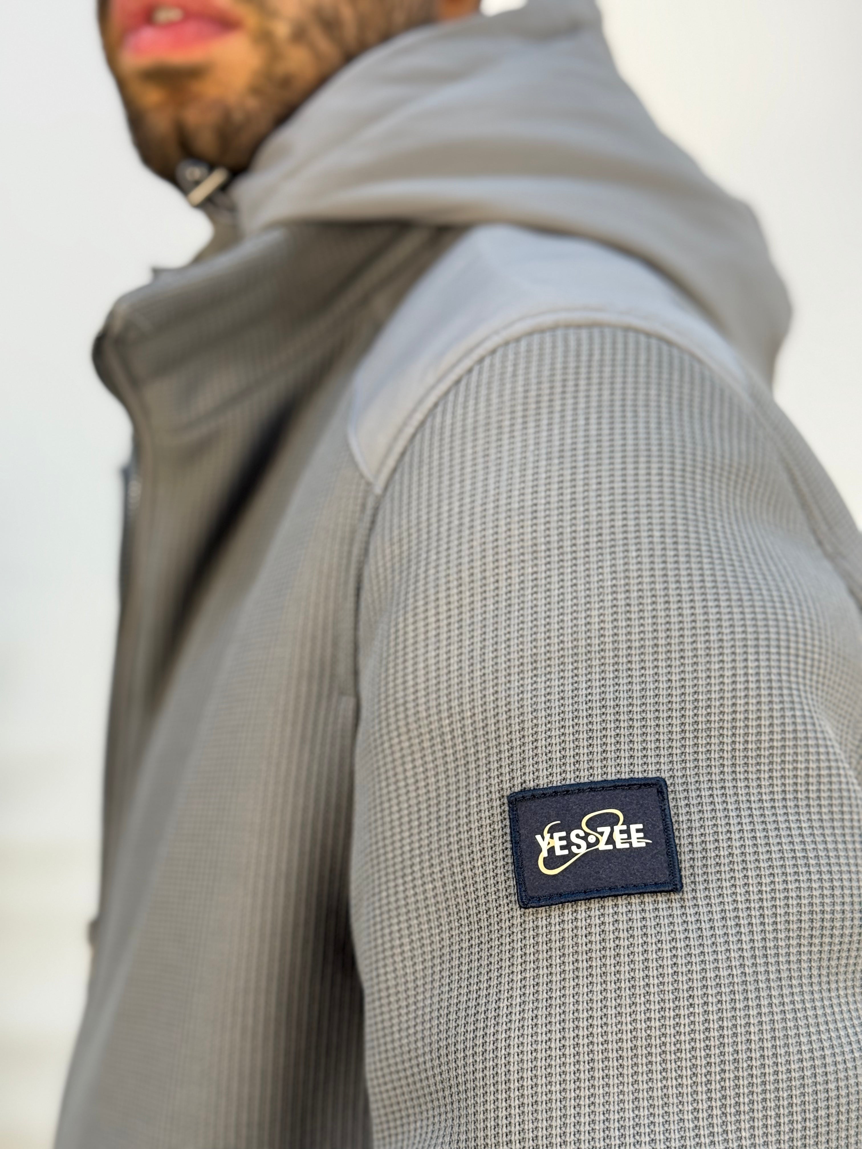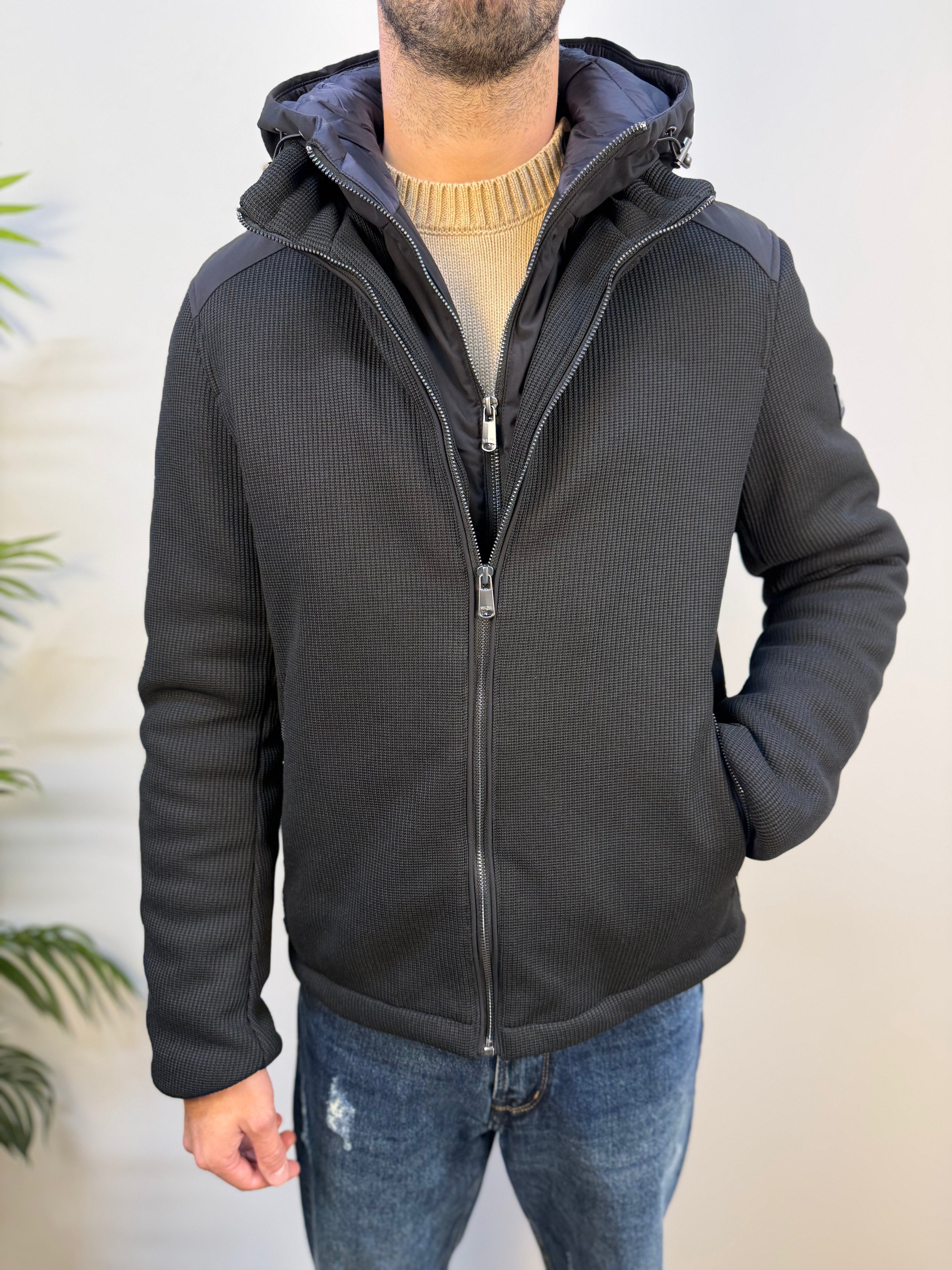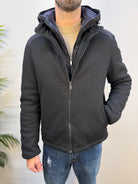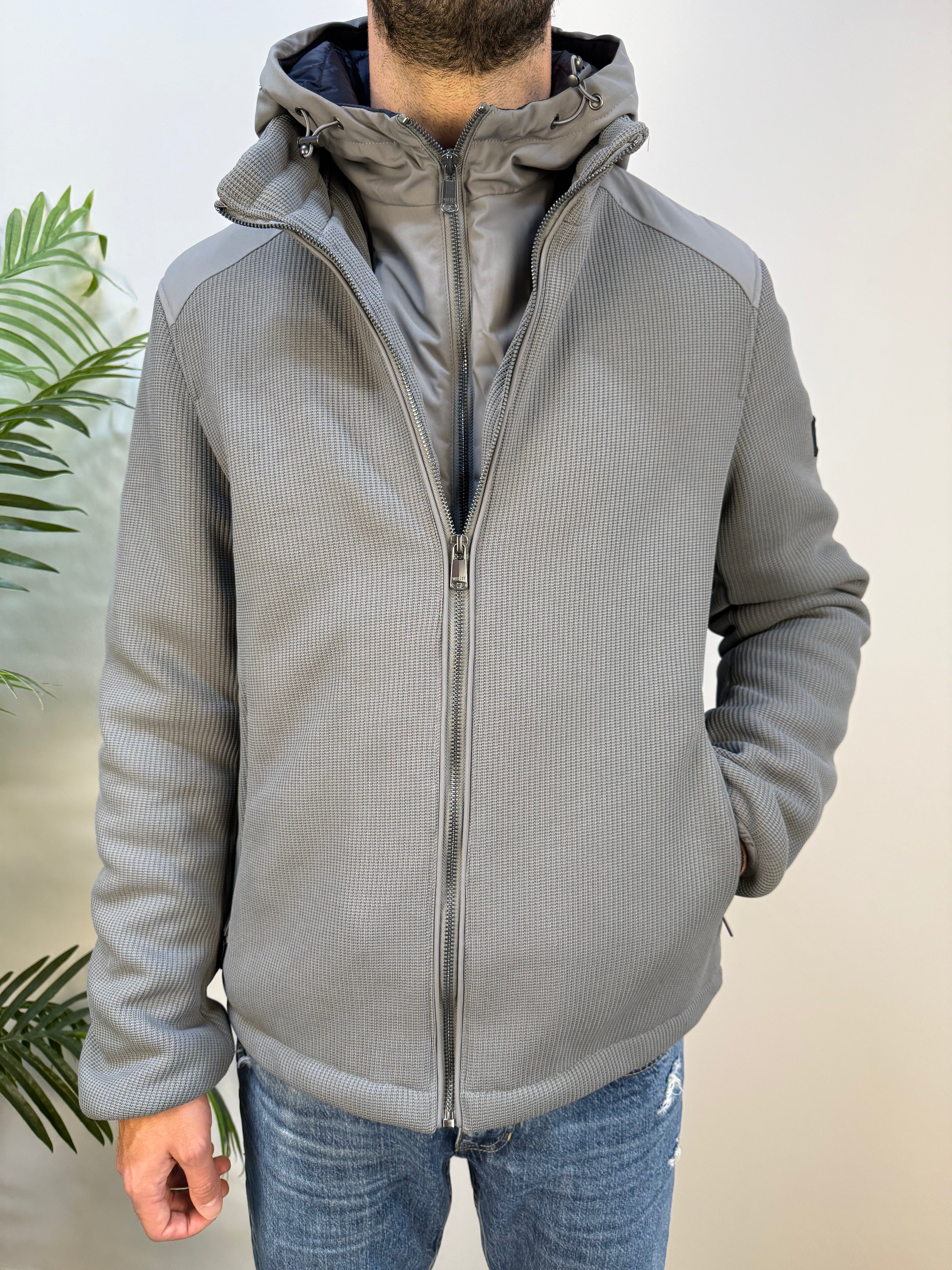 Giubbotto Yes-Zee con esterno in trama a maglia e interno imbottito, pensato per offrire calore e comfort. Dotato di antivento e cappuccio removibili tramite zip, è completato da tasche frontali con zip color argento e chiusura centrale con zip. Un capo pratico e versatile, perfetto per affrontare la stagione fredda con stile.