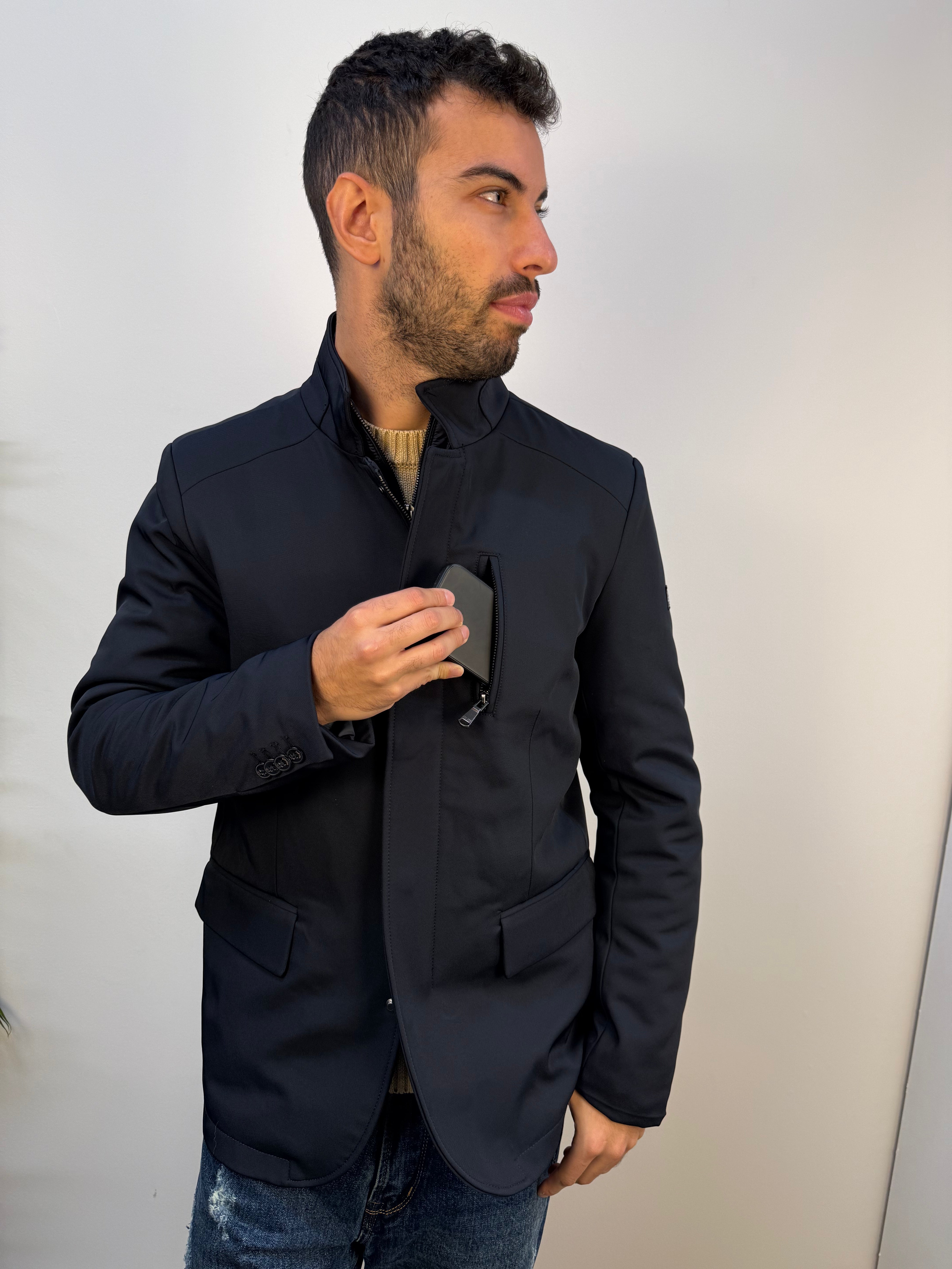 Giubbotto Yes-Zee realizzato in tessuto tecnico caldo e confortevole, dalla linea elegante e curata. Presenta due tasche frontali cucite e un taschino sul petto con zip. La chiusura con zip e bottoni a pressione nascosti assicura un design pulito e raffinato. Completa il modello l’antivento removibile e la patch logata sulla manica, per un look moderno e distintivo.