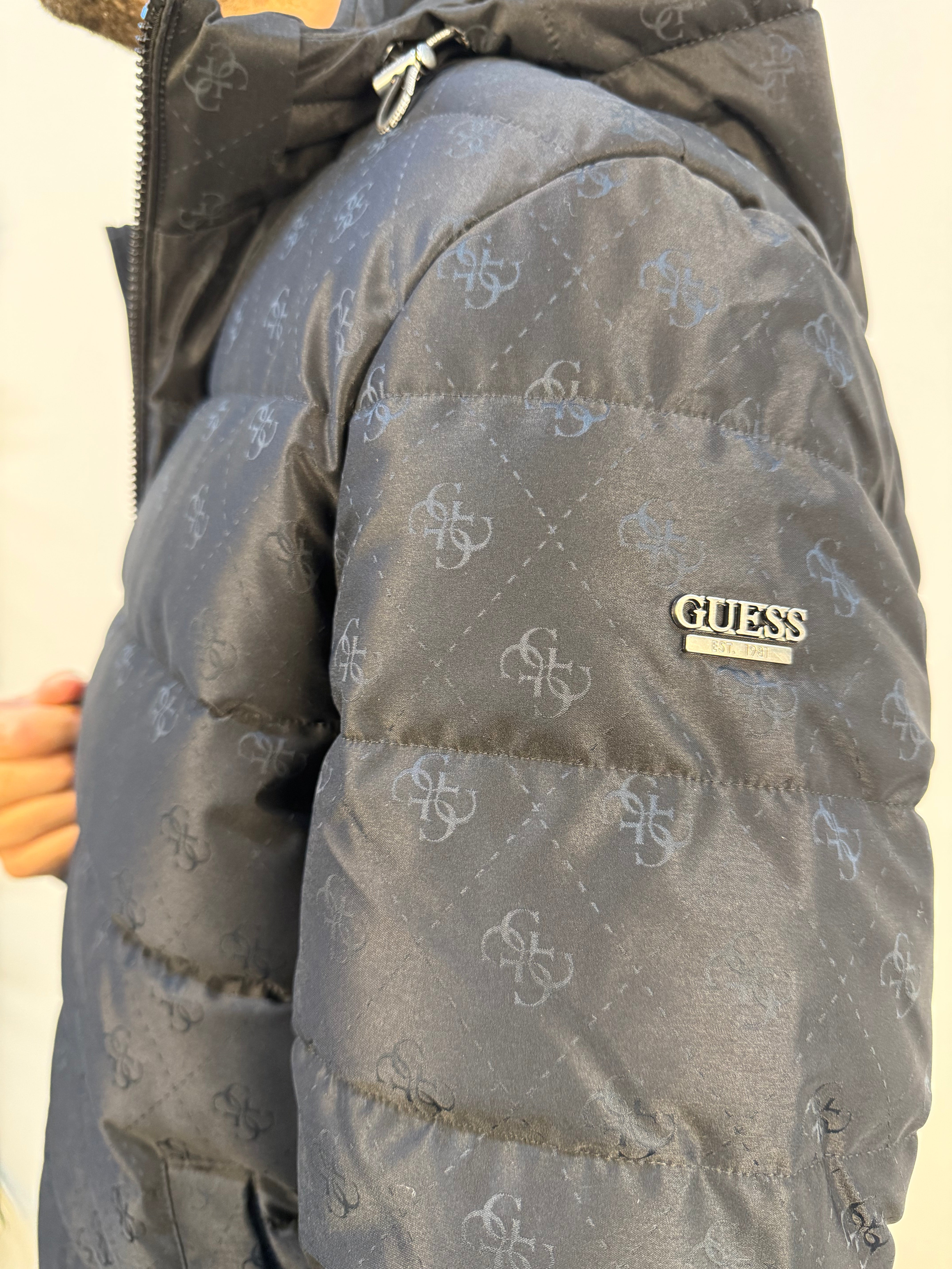 Piumino Guess con chiusura a zip e delicata trama logata 4G all over leggermente a contrasto, per un effetto elegante e discreto. Dotato di tasche frontali con bottone a pressione e cappuccio removibile con cursori elasticizzati per regolarne l’ampiezza. Realizzato in tessuto water resistant, è caldo e avvolgente, perfetto per le giornate più fredde. Completa il design il piccolo logo metallico sulla manica, dettaglio distintivo e raffinato.