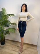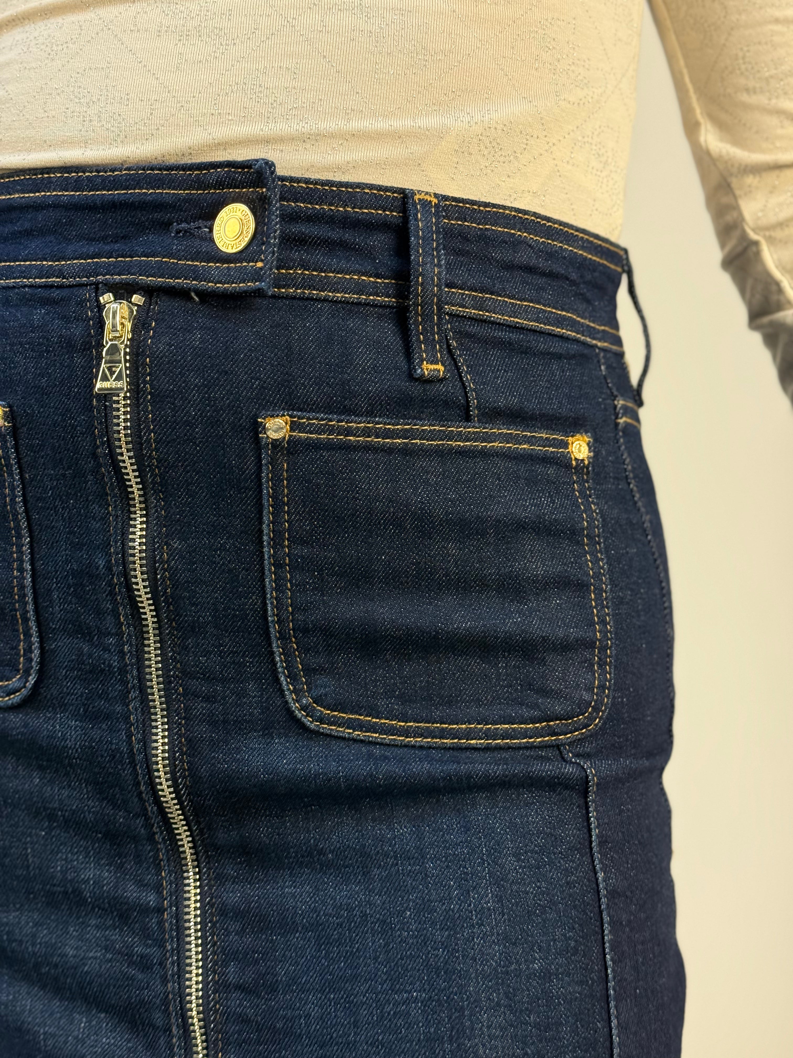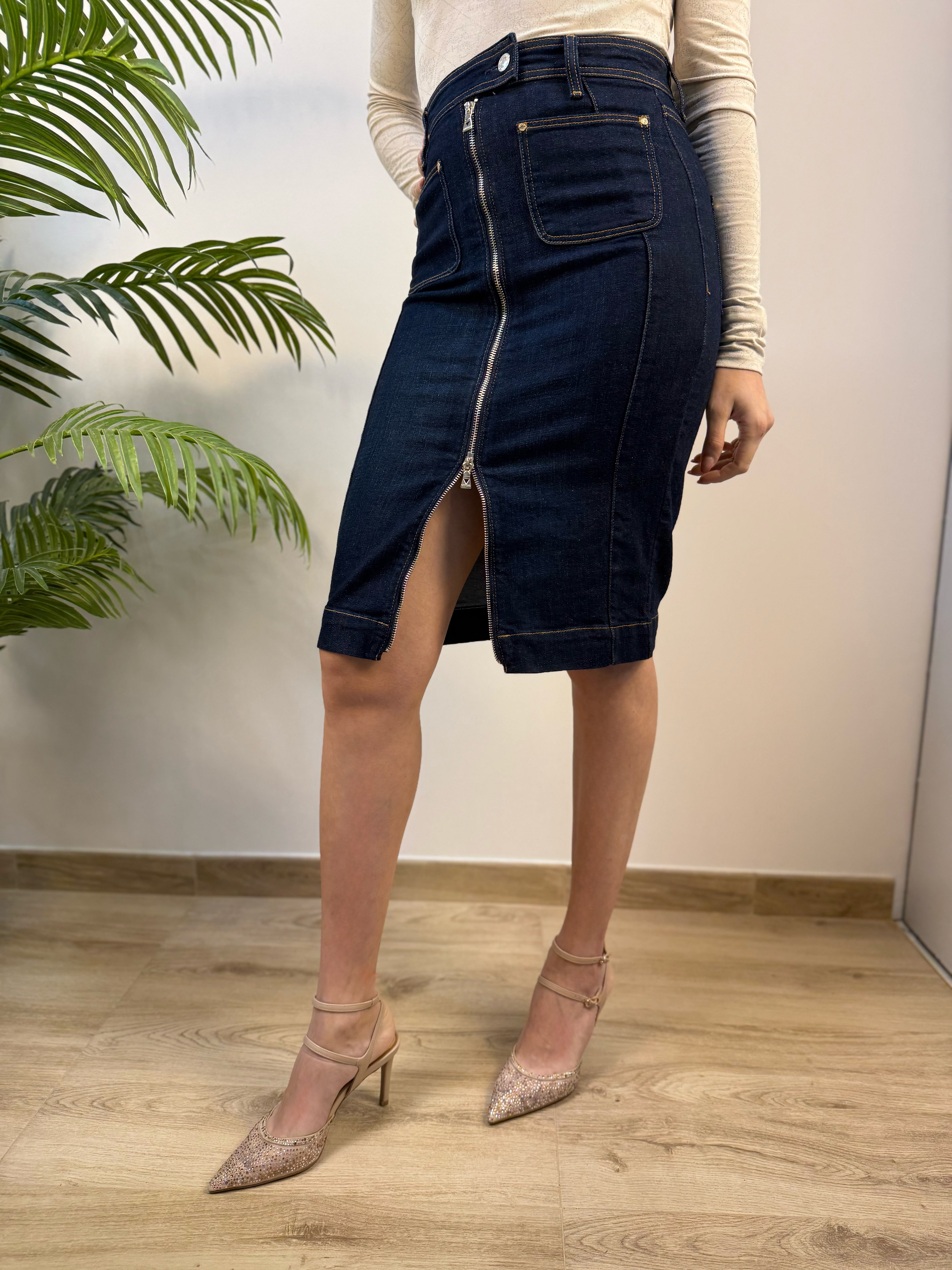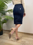 Gonna GUESS longuette in denim. Zip frontale con spacco centrale regolabile.