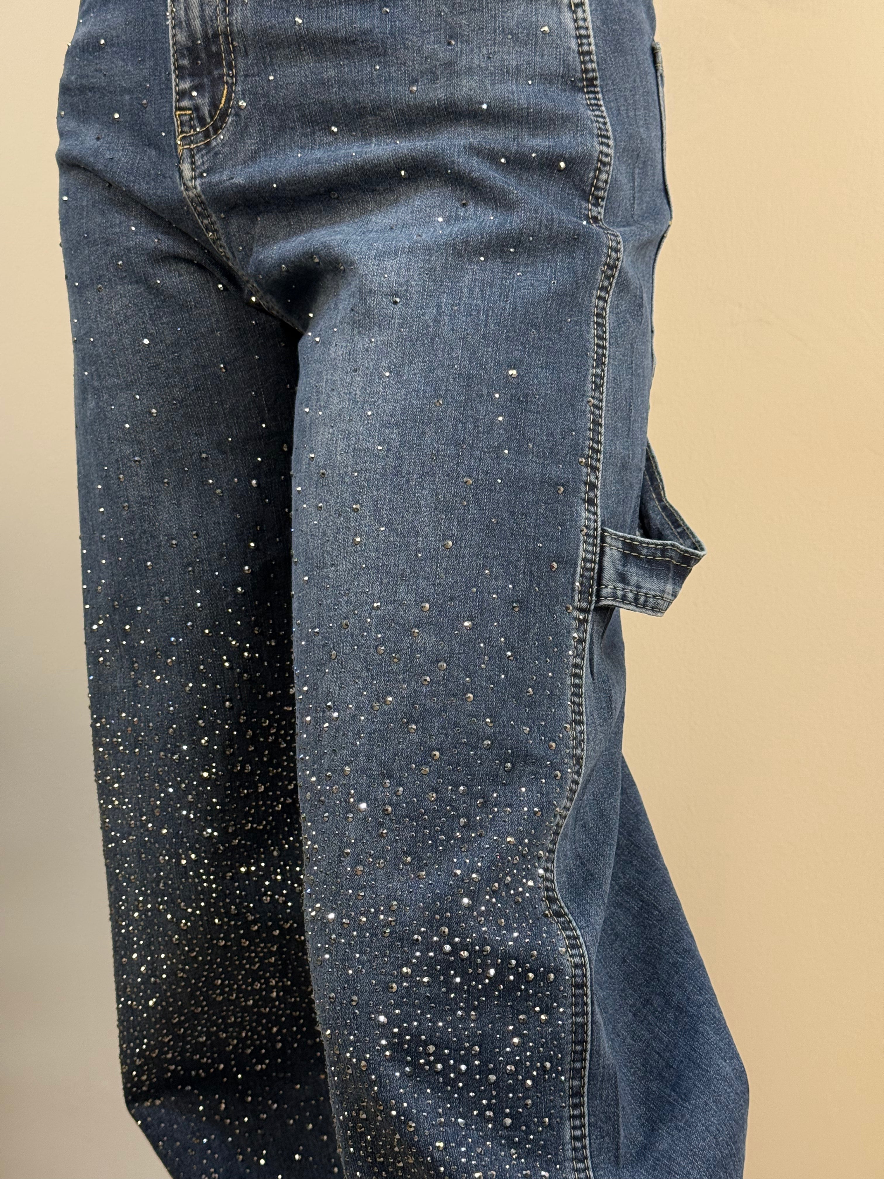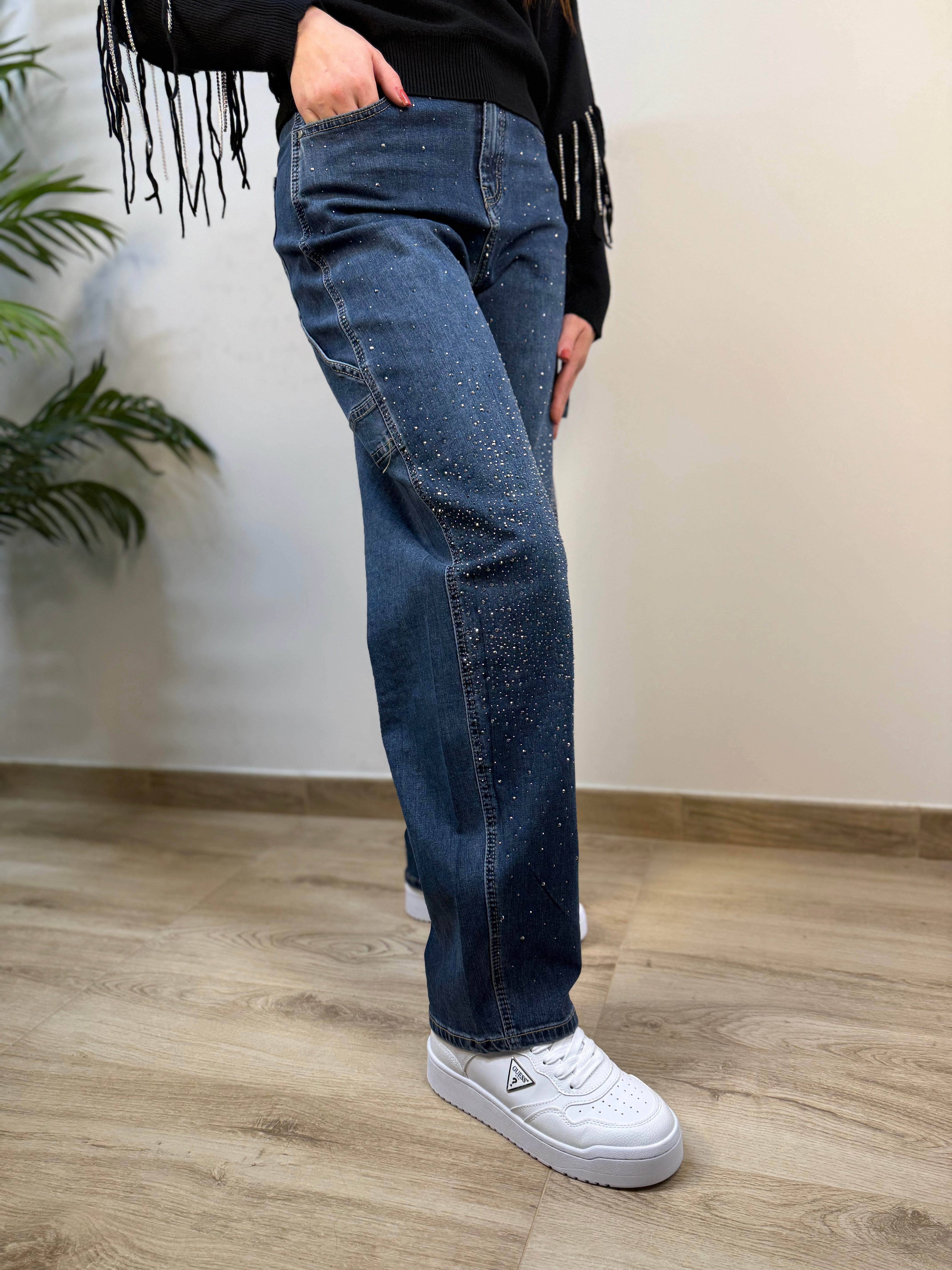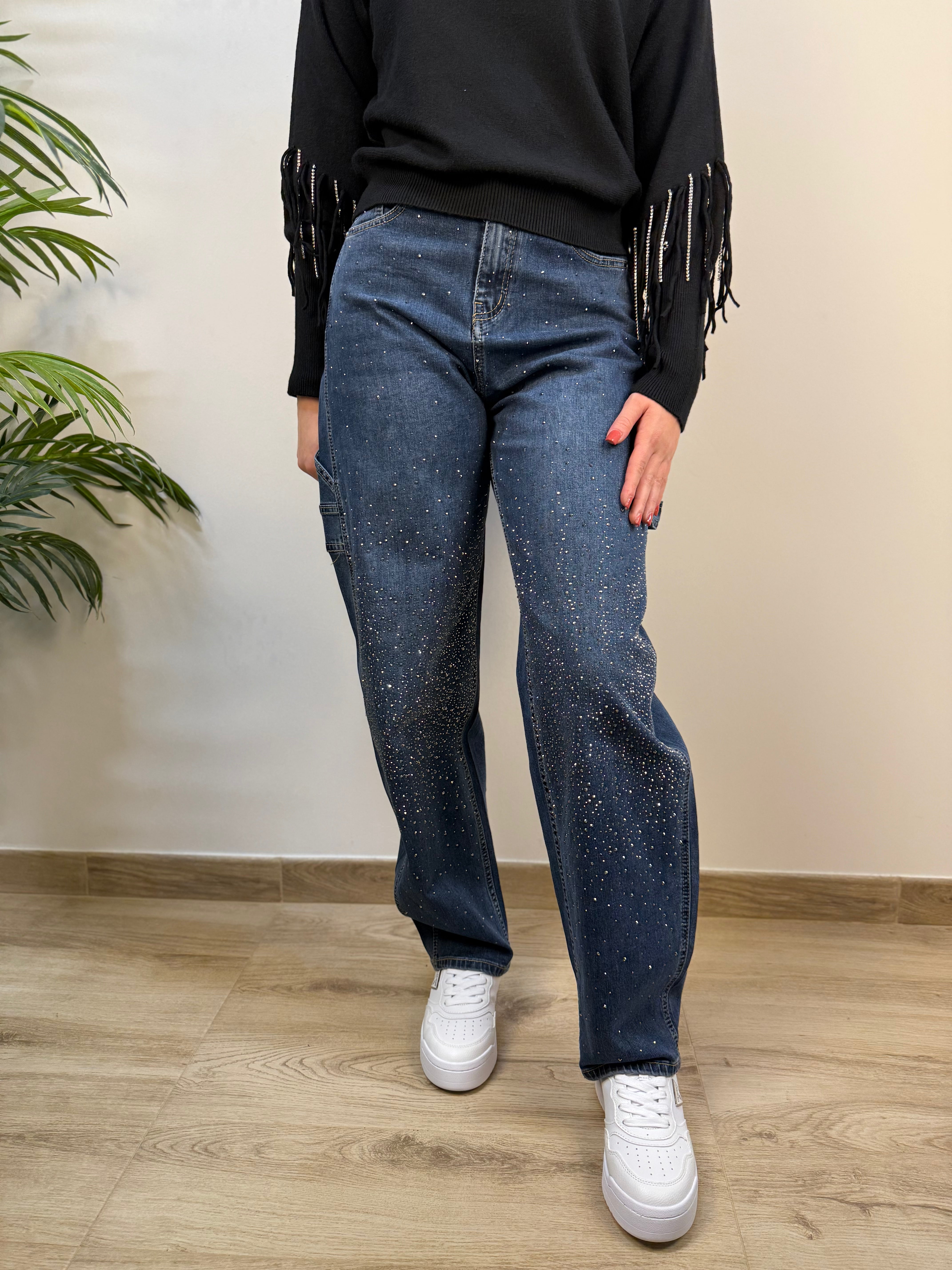 Jeans banana a vita alta con strass frontali