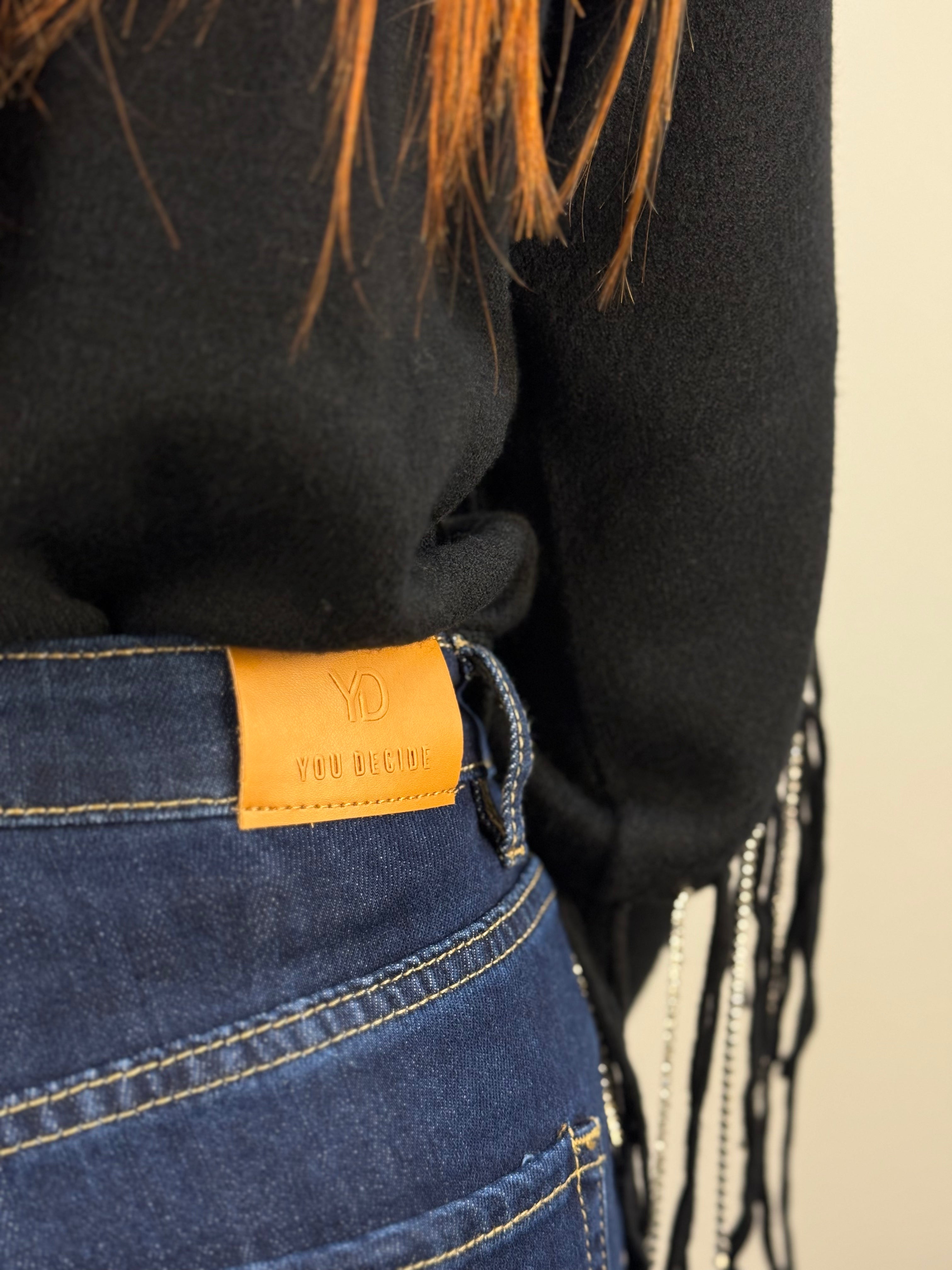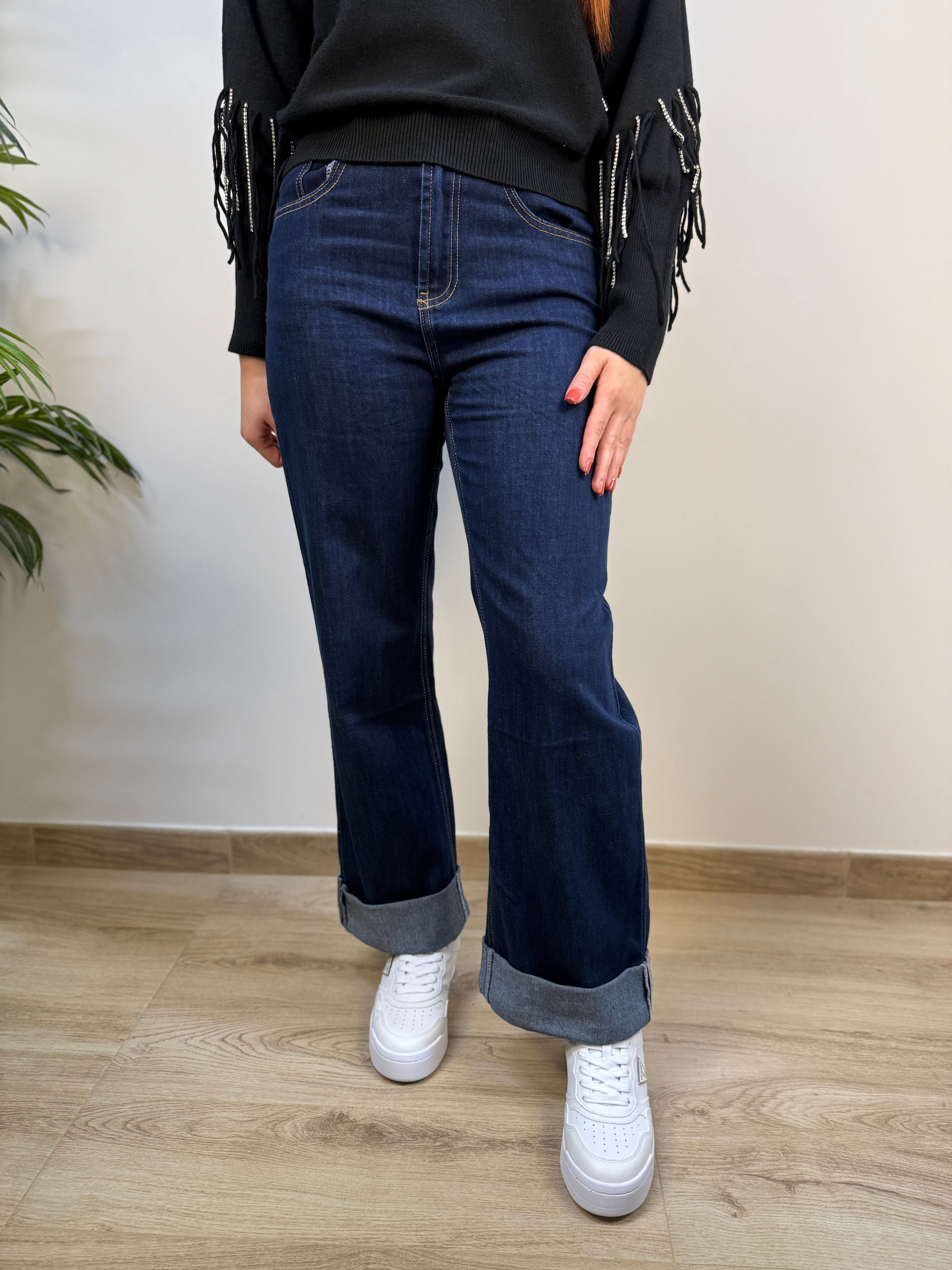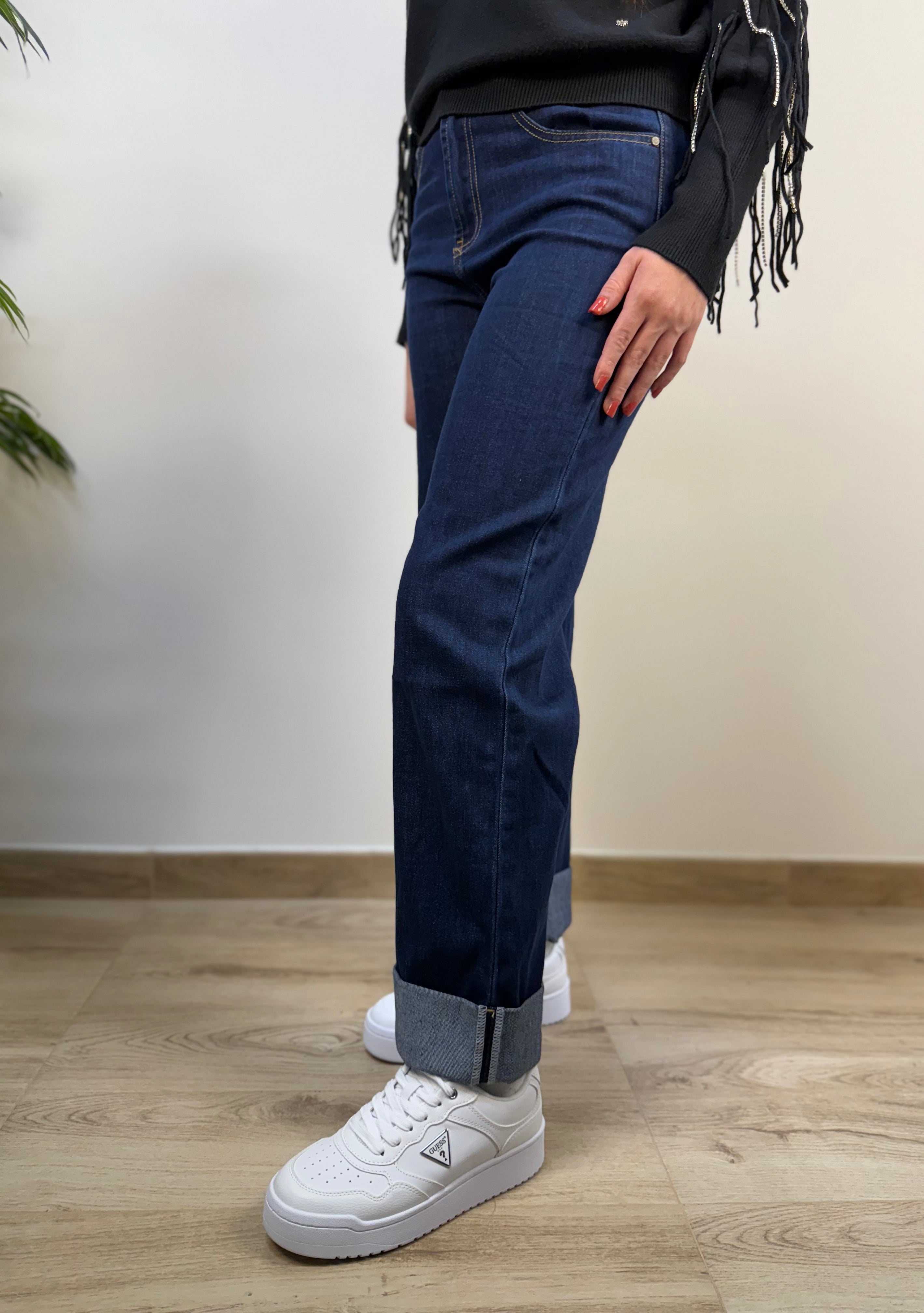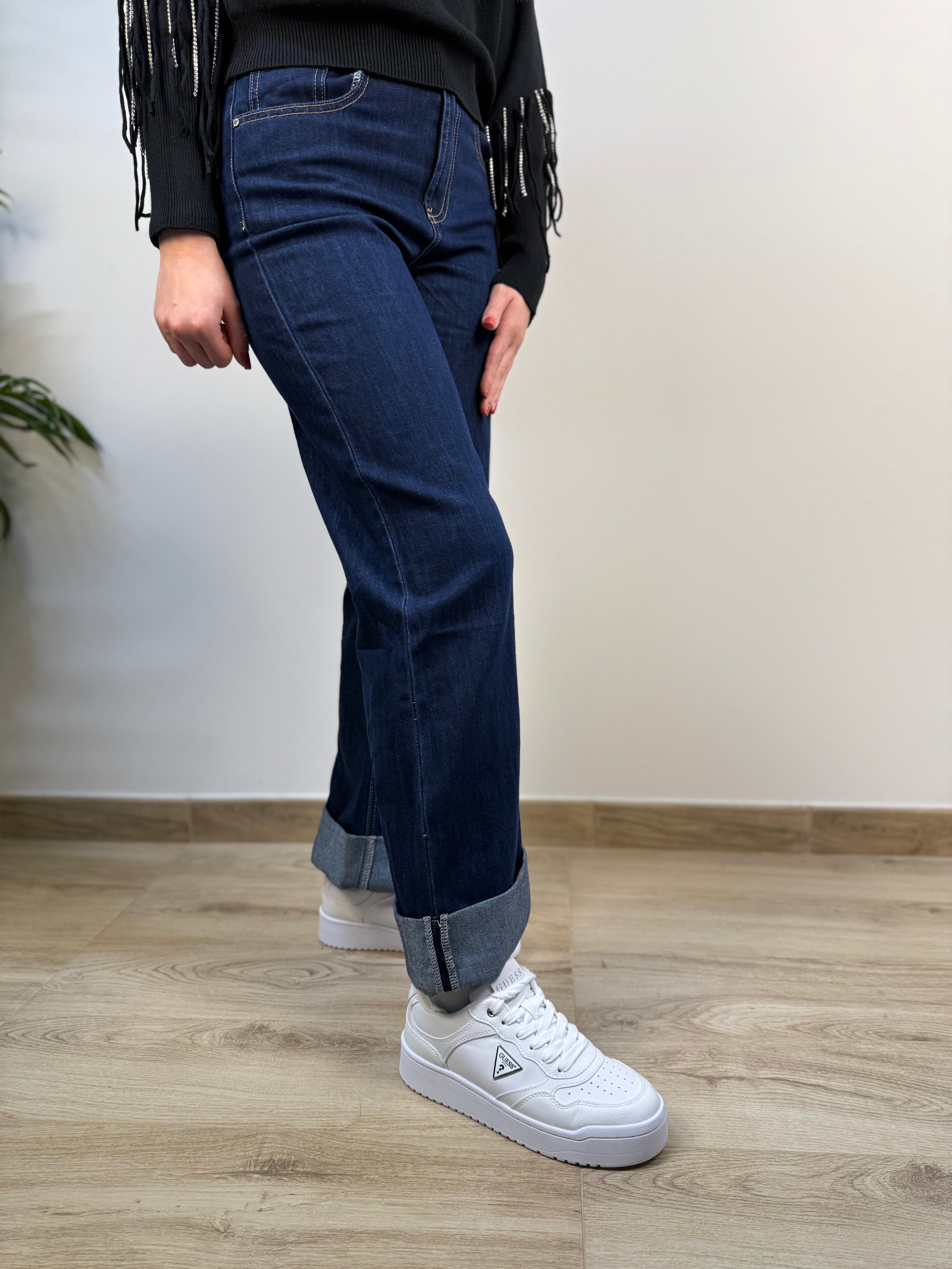 Jeans You Decide realizzato in denim scuro dal tessuto sostenuto e fermo, che mantiene la forma e valorizza la silhouette. Il modello presenta le classiche tasche e un risvolto cucito a fine gamba, dettaglio che aggiunge un tocco casual e contemporaneo. La gamba dritta morbida garantisce comfort e libertà di movimento, rendendo questo jeans un capo versatile e di tendenza, perfetto per completare look quotidiani con stile e personalità.