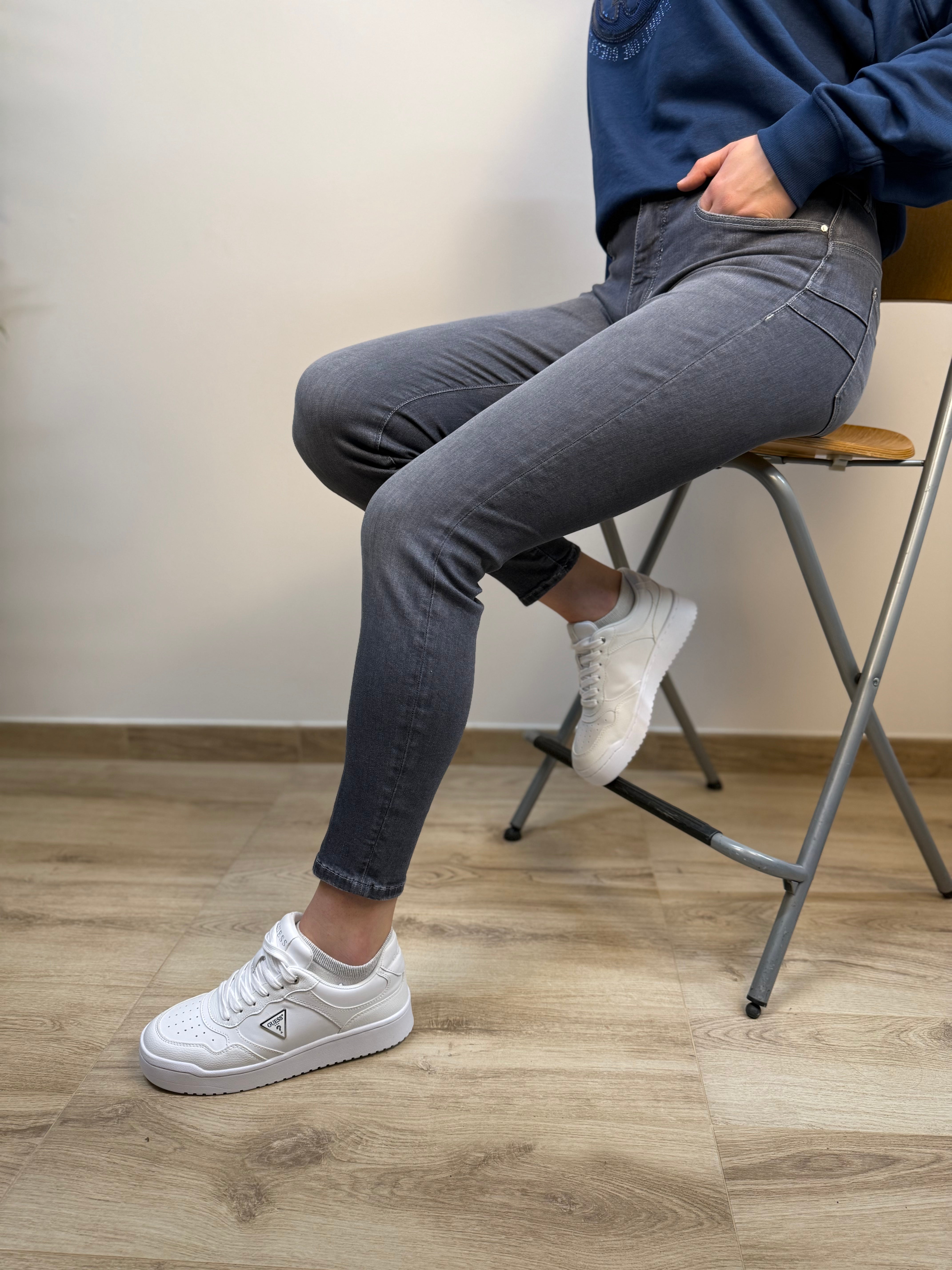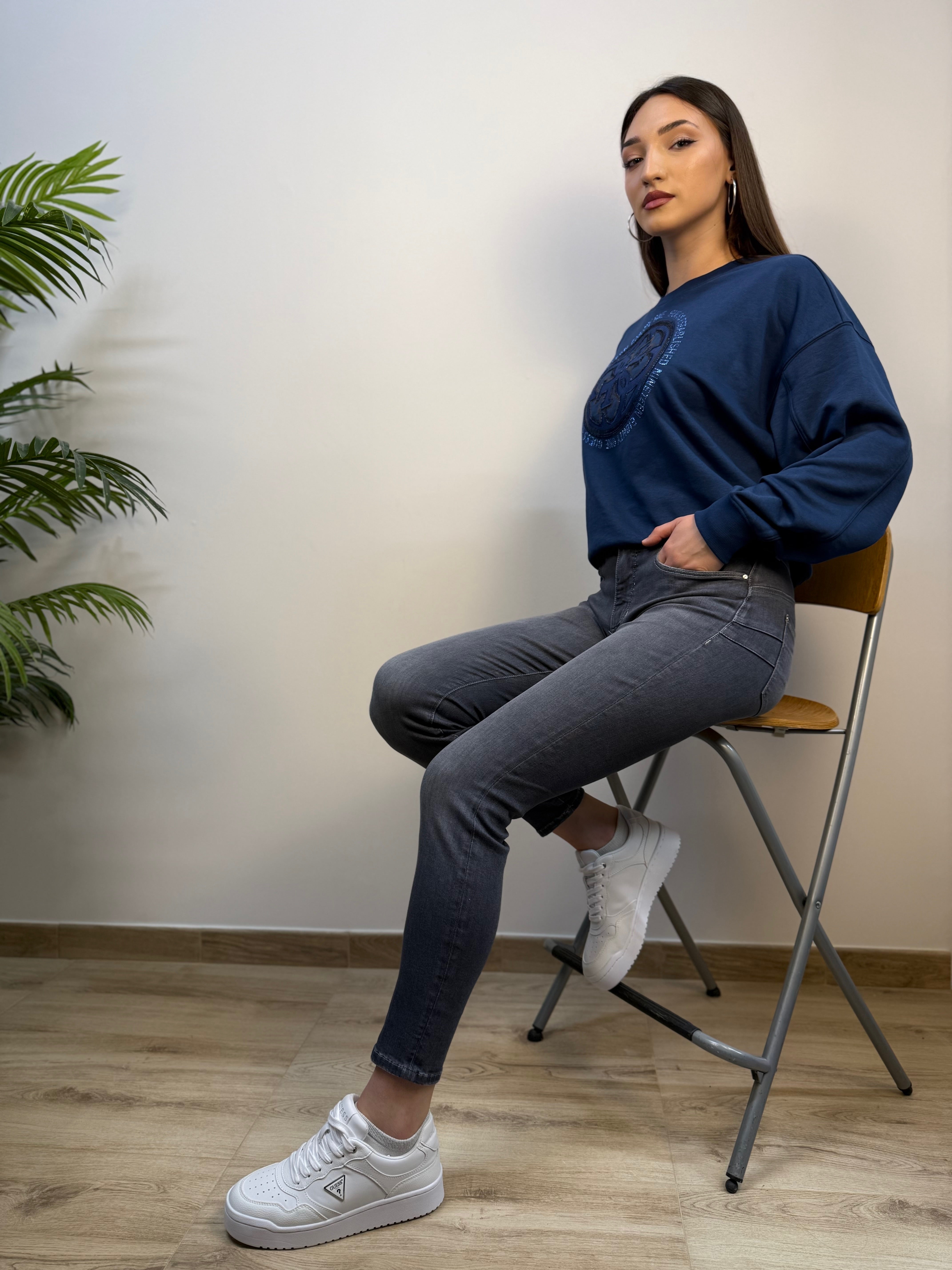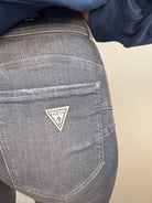 Jeans skinny Guess realizzati in misto cotone elasticizzato, pensati per offrire comfort e una vestibilità avvolgente. La vita alta e la gamba stretta valorizzano la silhouette, creando un look moderno e femminile. Il modello presenta il classico design a 5 tasche ed è proposto in un raffinato lavaggio grigio, versatile e adatto a diverse occasioni, dal casual quotidiano agli abbinamenti più ricercati. La chiusura con due bottoni e zip frontale garantisce una tenuta sicura, mentre la patch logata sulla tasca posteriore aggiunge un dettaglio distintivo e iconico del brand. La lunghezza interna della gamba è di circa 73,7 cm (29 pollici), ideale per un fit preciso e alla moda.
