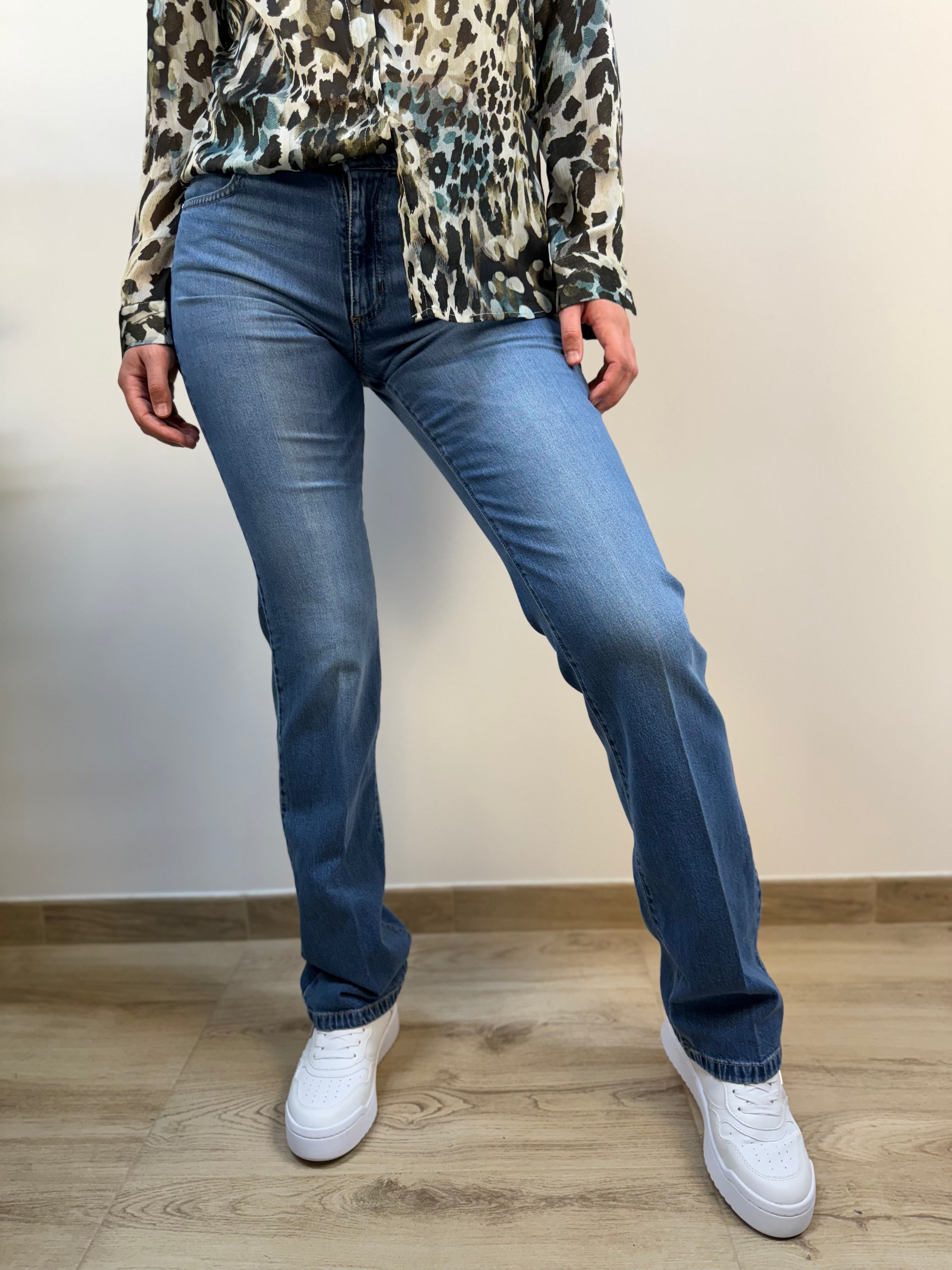 Jeans STRAIGHT fit con dettagli argento e piega centrale