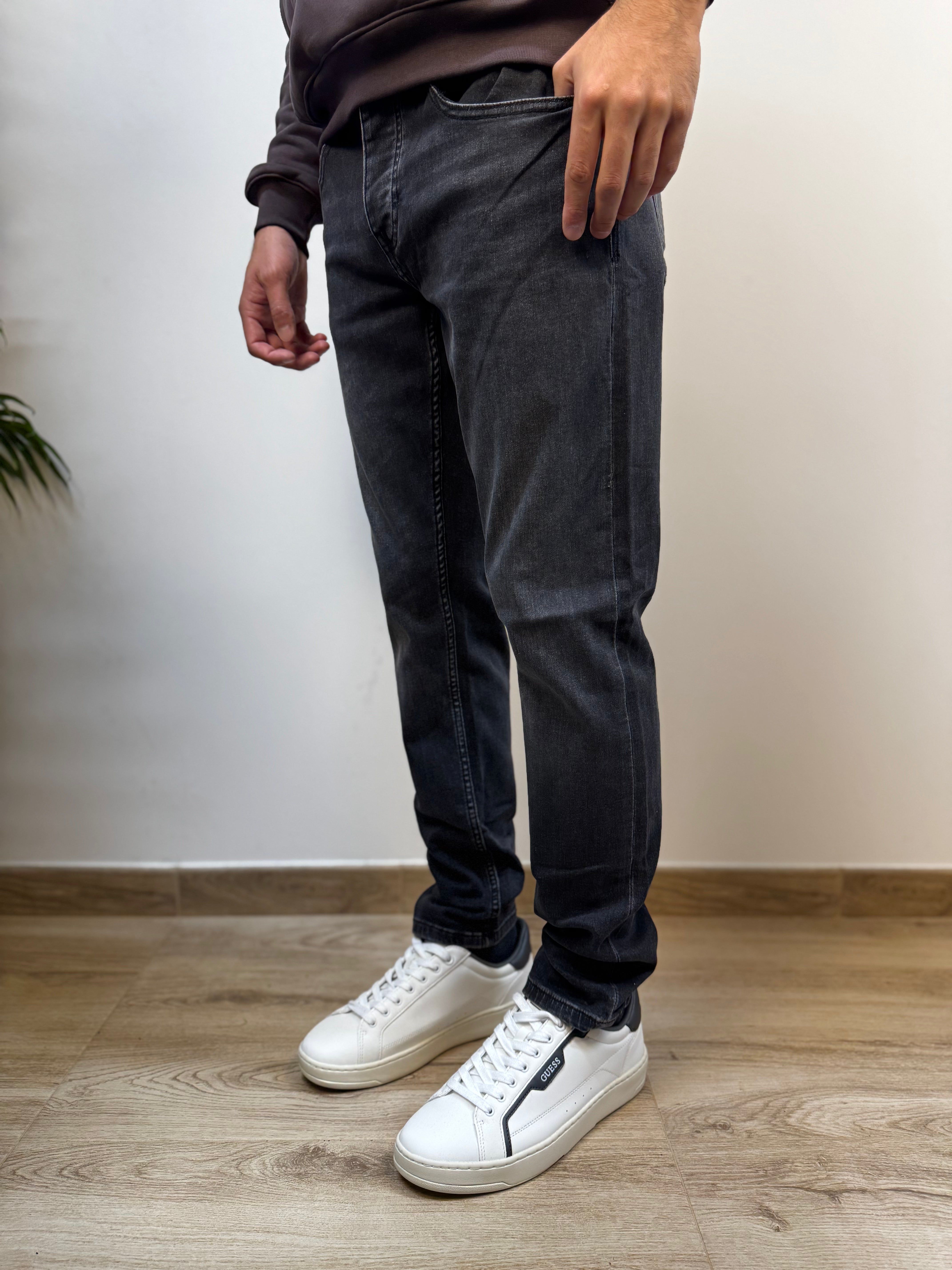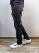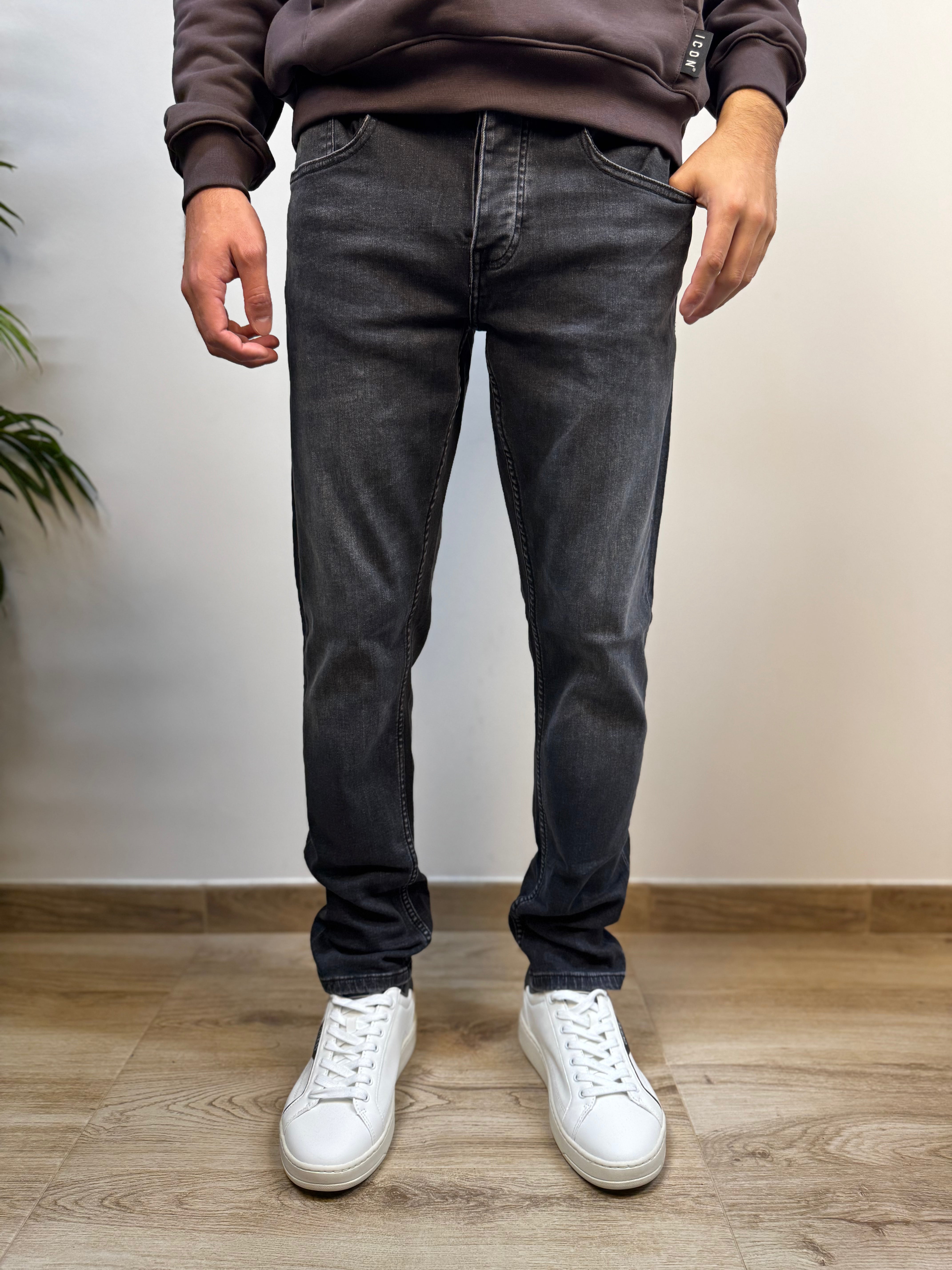 Jeans Urban Ring dal taglio slim, pensati per chi cerca una vestibilità moderna e definita senza rinunciare al comfort. Il modello segue la linea della gamba in modo aderente ma non troppo stretto, valorizzando la silhouette e offrendo un look pulito e versatile. Realizzati in denim leggermente elasticizzato, garantiscono libertà di movimento e una vestibilità comoda per tutta la giornata. Il lavaggio grigio scuro dona un tocco raffinato e contemporaneo, ideale sia per outfit casual che per abbinamenti più eleganti. Completa il modello la chiusura con bottone e zip e il design essenziale, perfetto per chi ama uno stile sobrio ma curato nei dettagli.