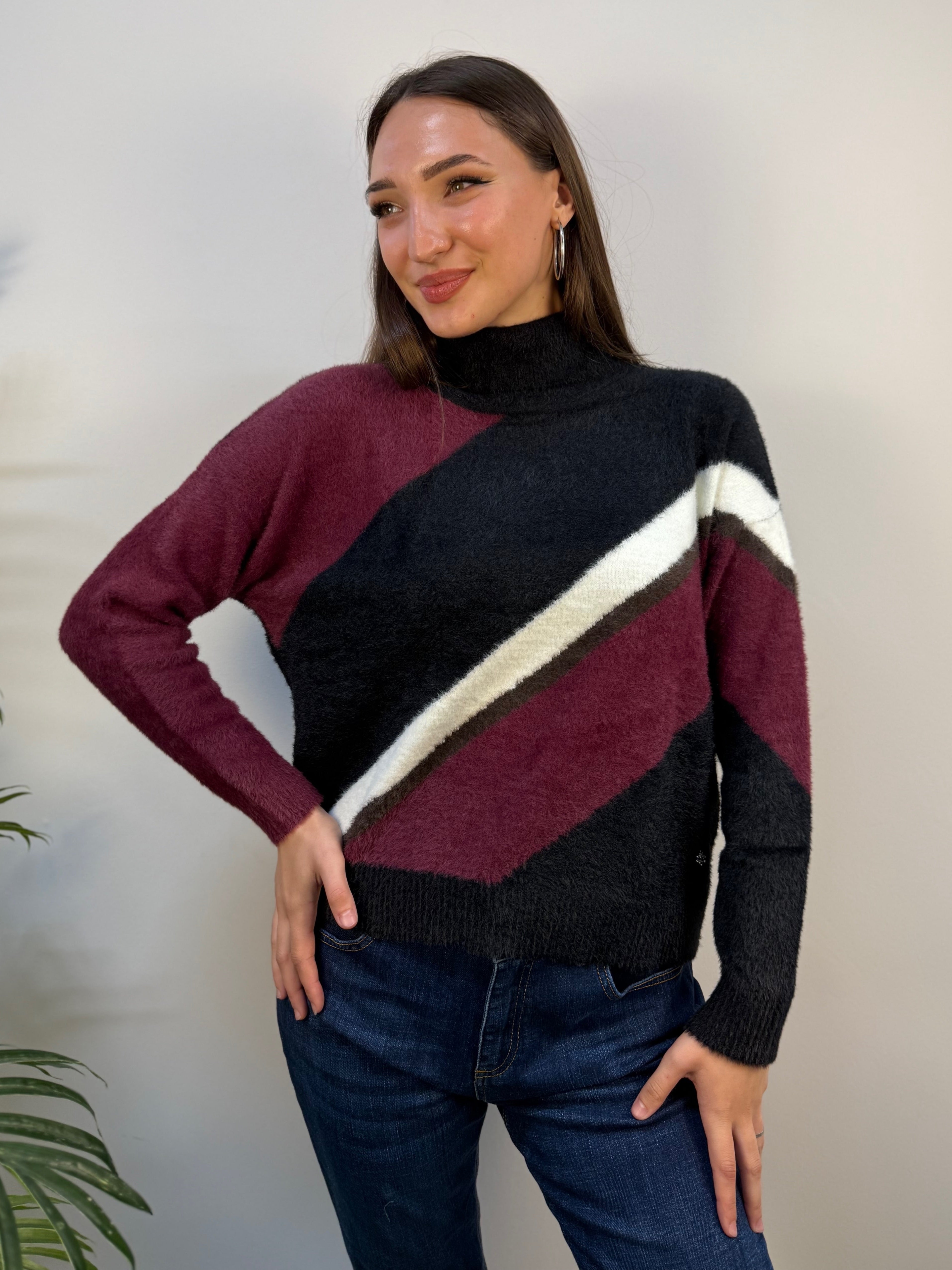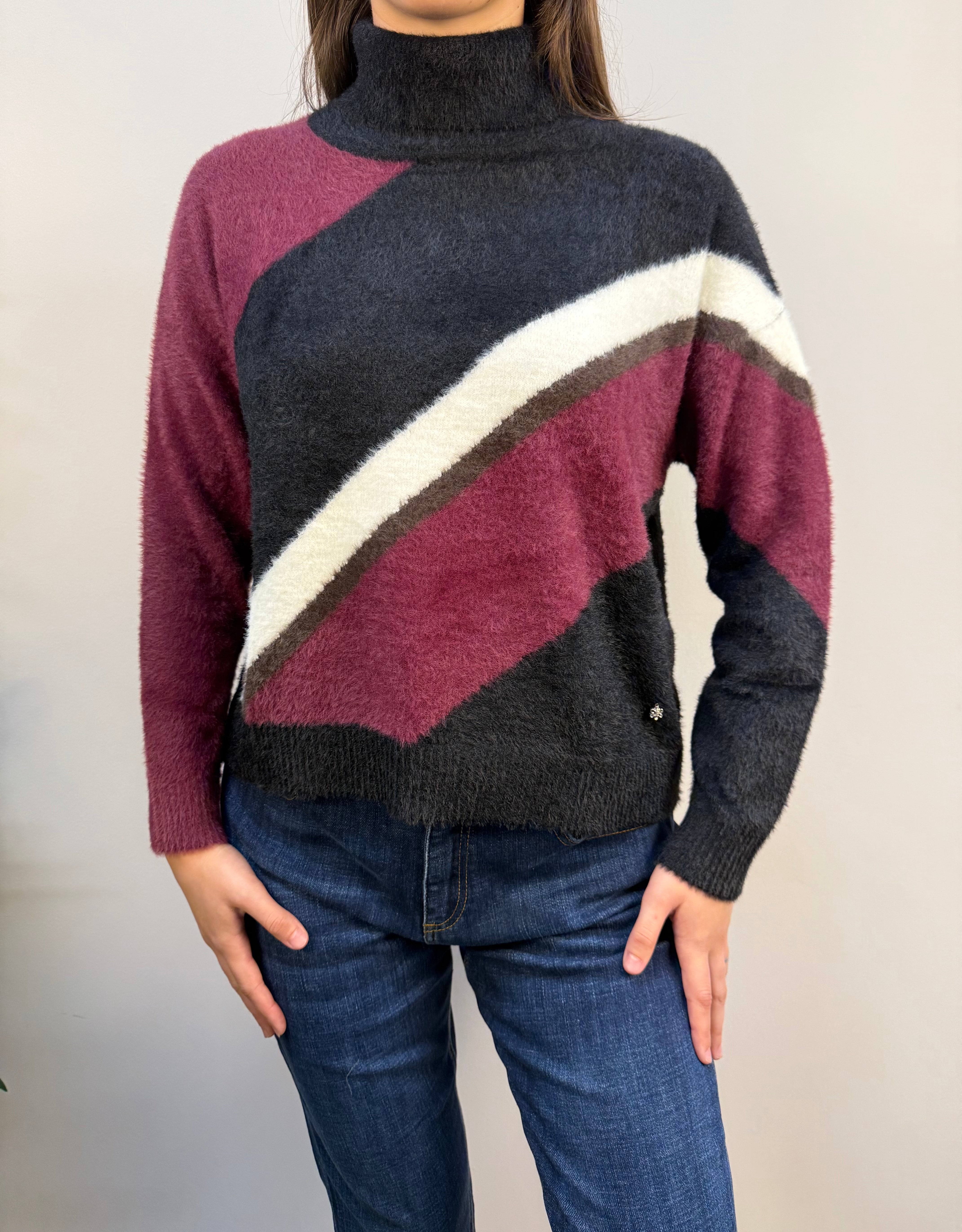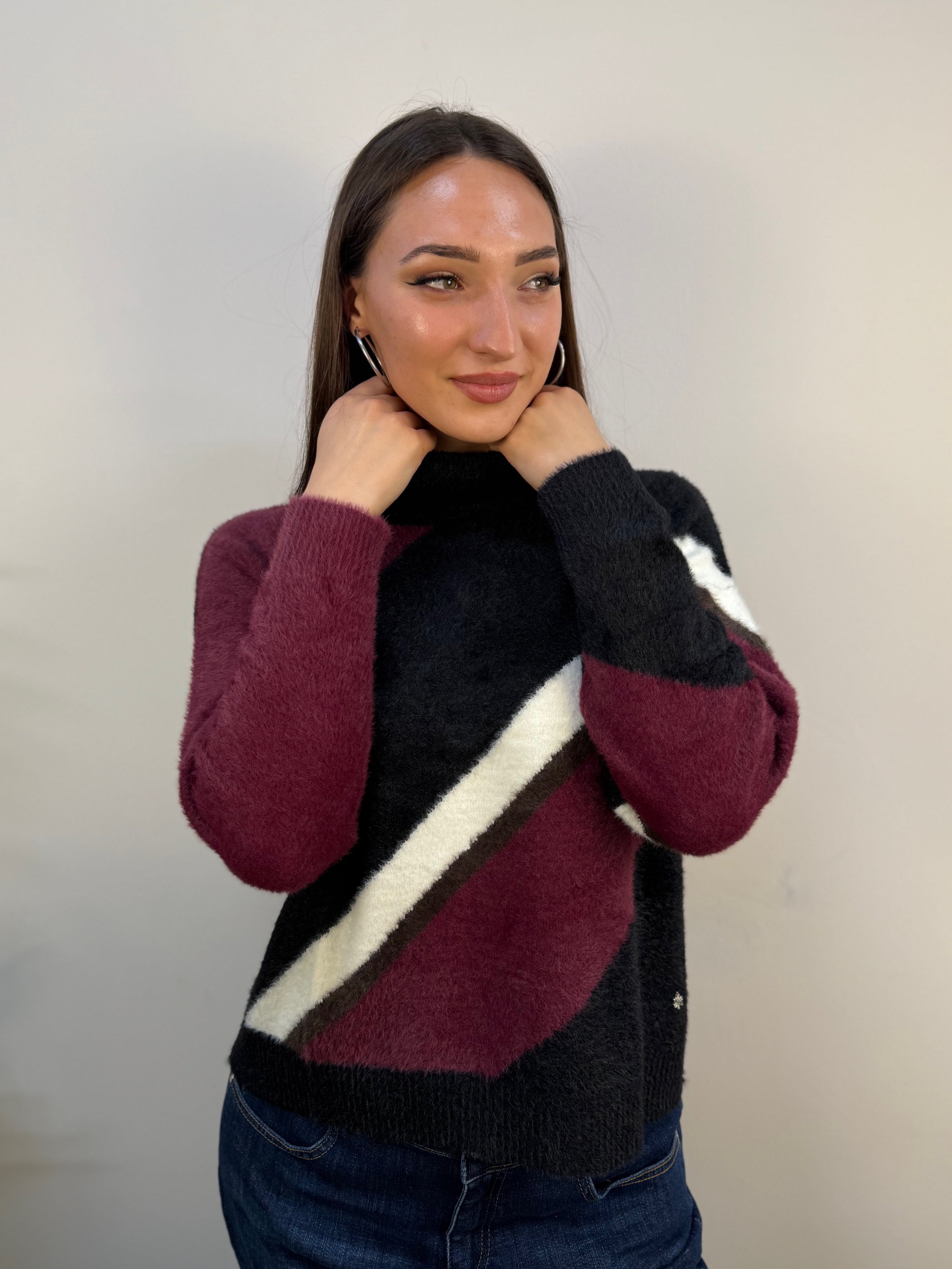 Avvolgente e super cozy, questo dolcevita Fresh Flower a collo alto è un abbraccio di morbidezza e stile. Realizzato in un filato soffice e peloso, conquista con la sua texture calda e la fantasia nei toni del nero, bianco, marrone e bordeaux, perfetta per la stagione fredda. Il collo alto offre protezione e comfort, mentre la vestibilità rilassata lo rende ideale per affrontare le giornate più fredde senza rinunciare allo stile. Un capo statement da indossare con denim, pantaloni eleganti o gonne in maglia per un look casual ma ricercato.