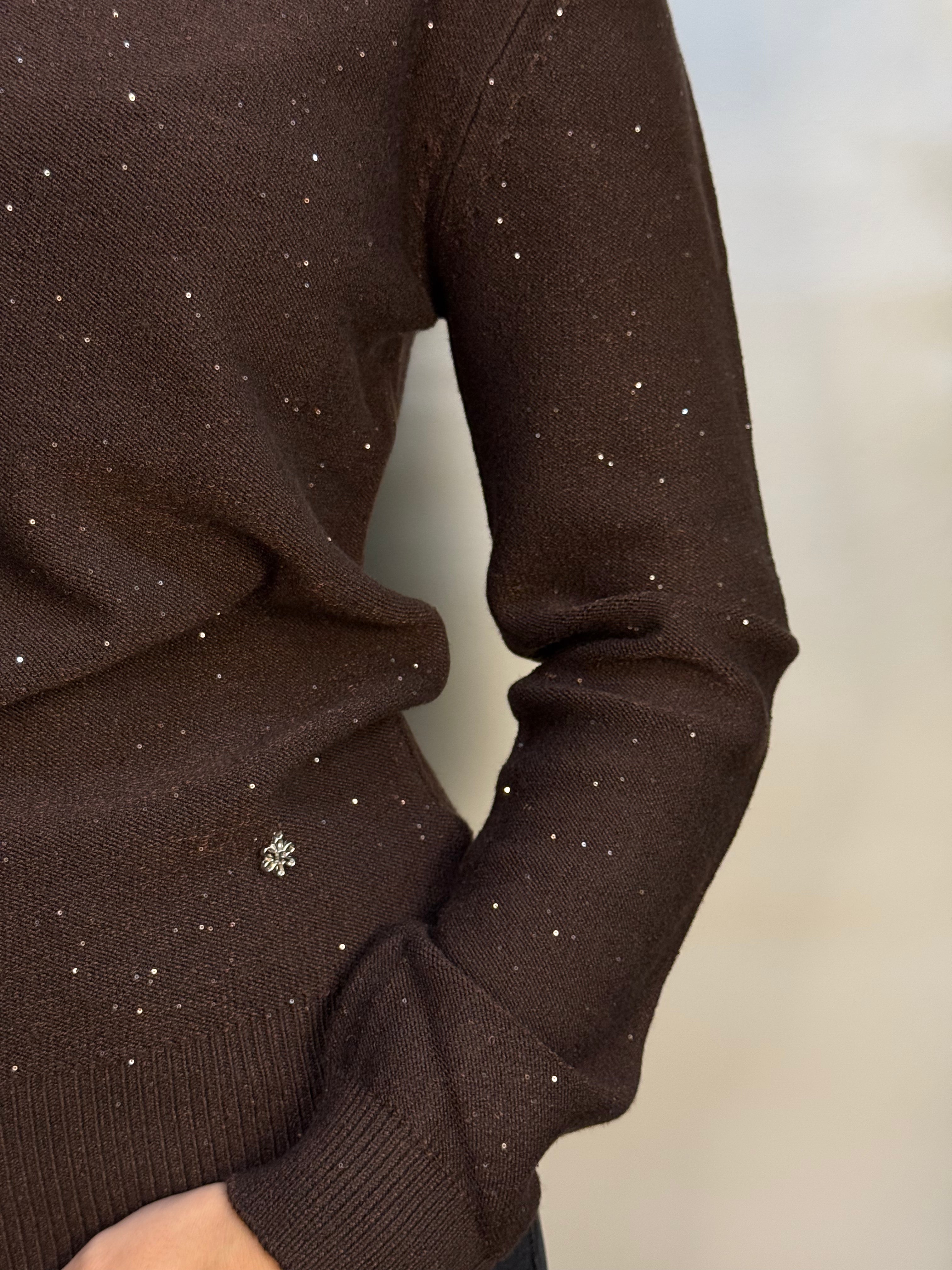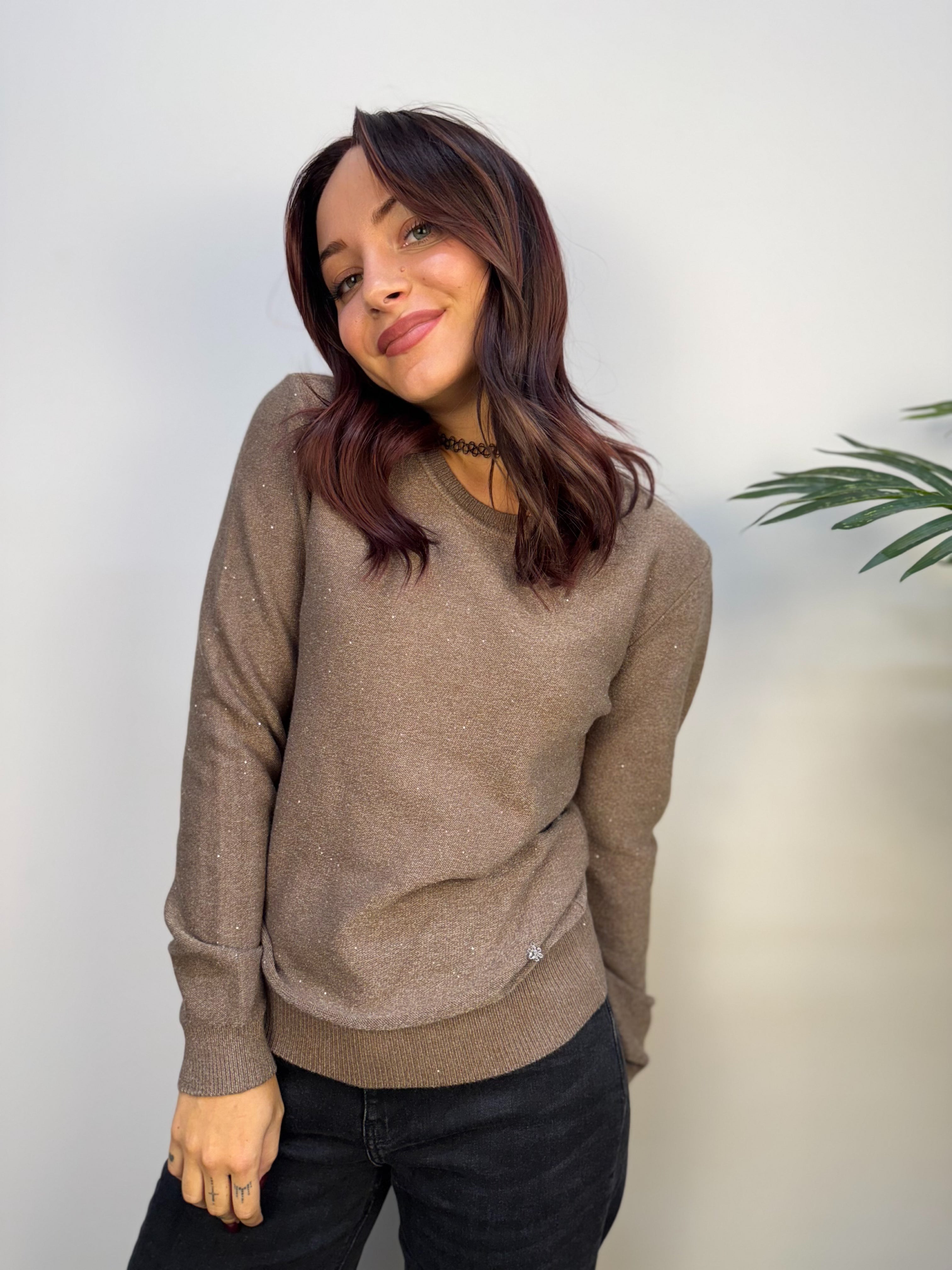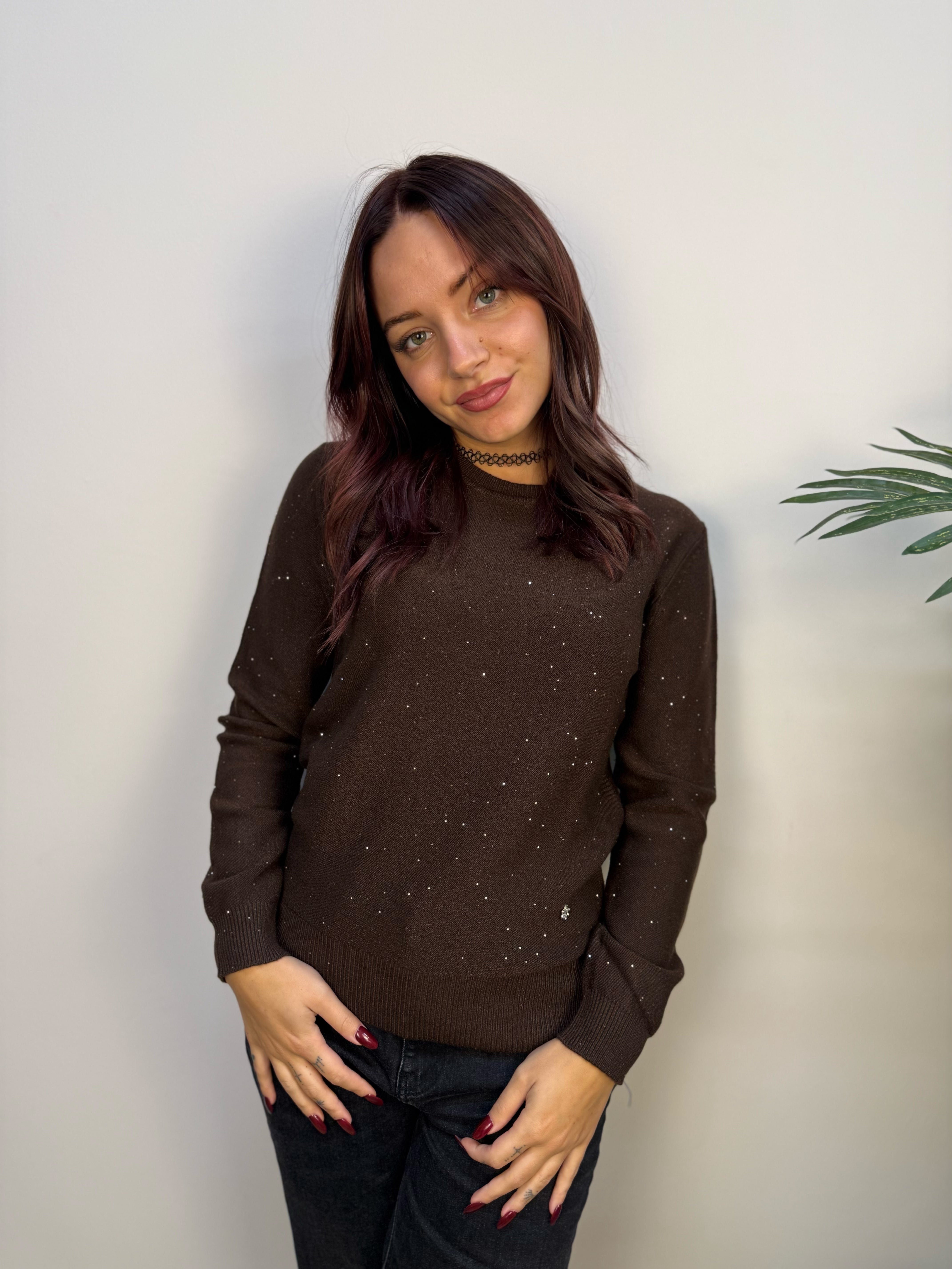 Maglia girocollo in misto viscosa con micropaillettes all over