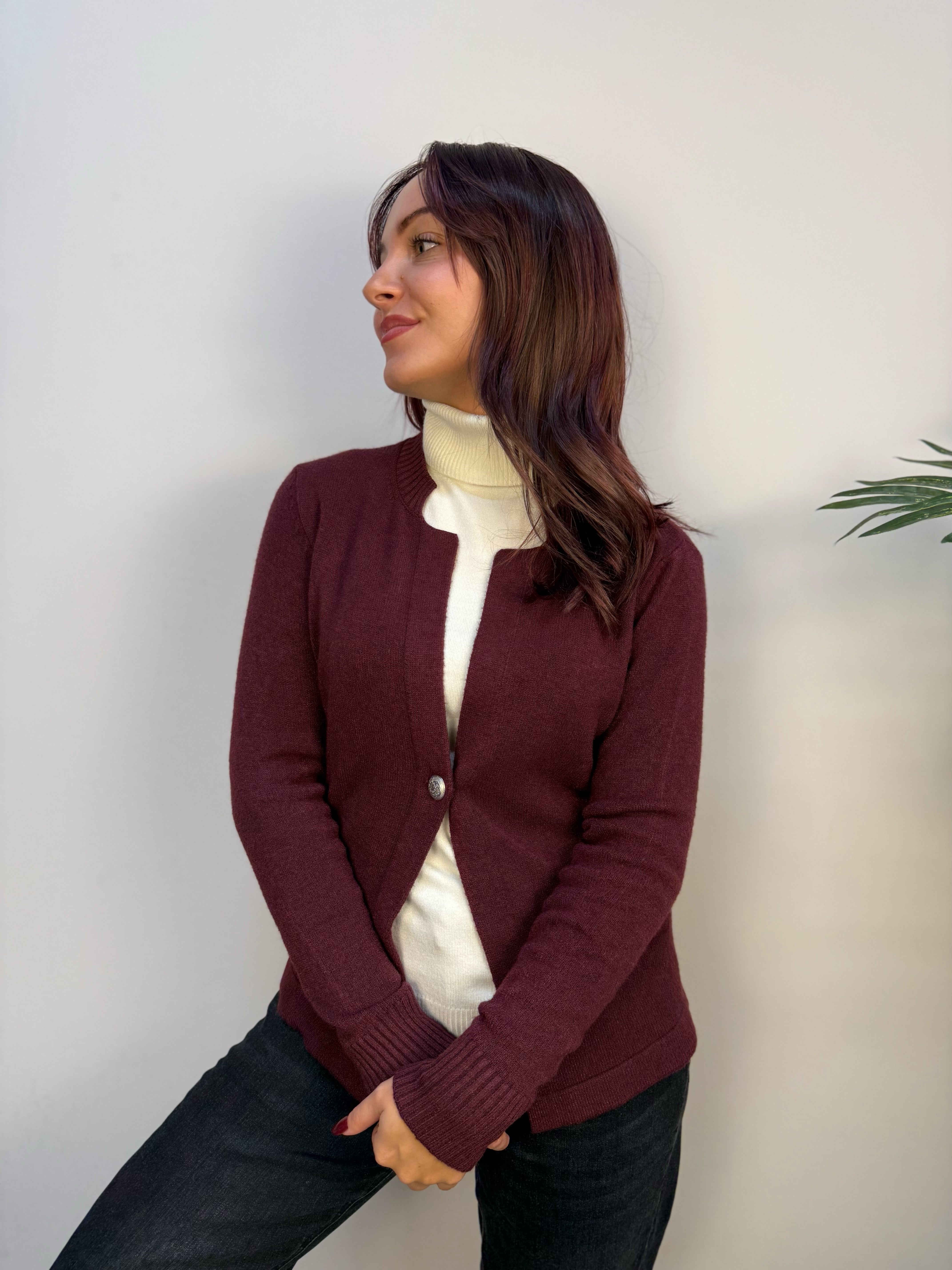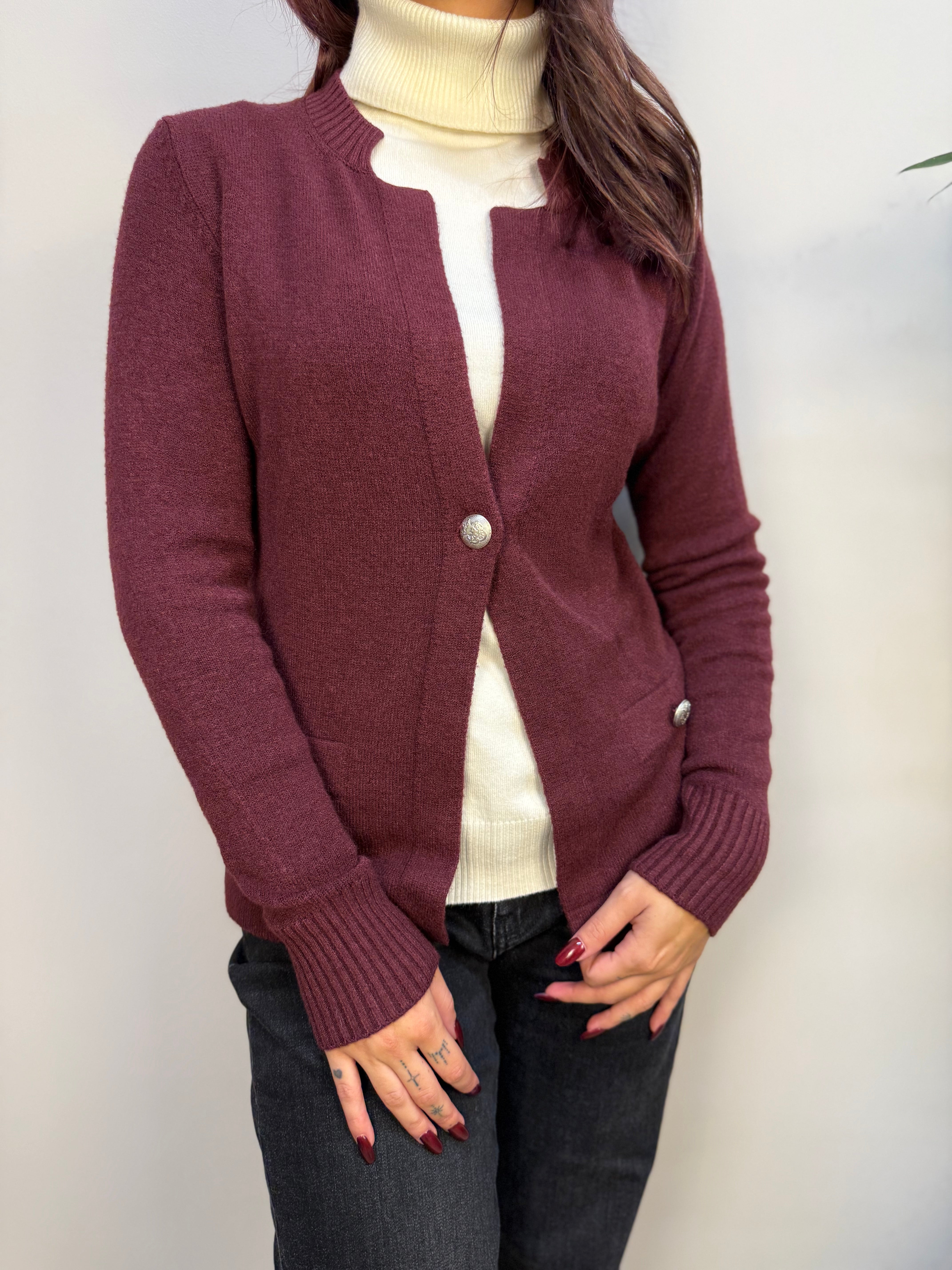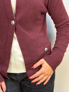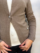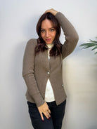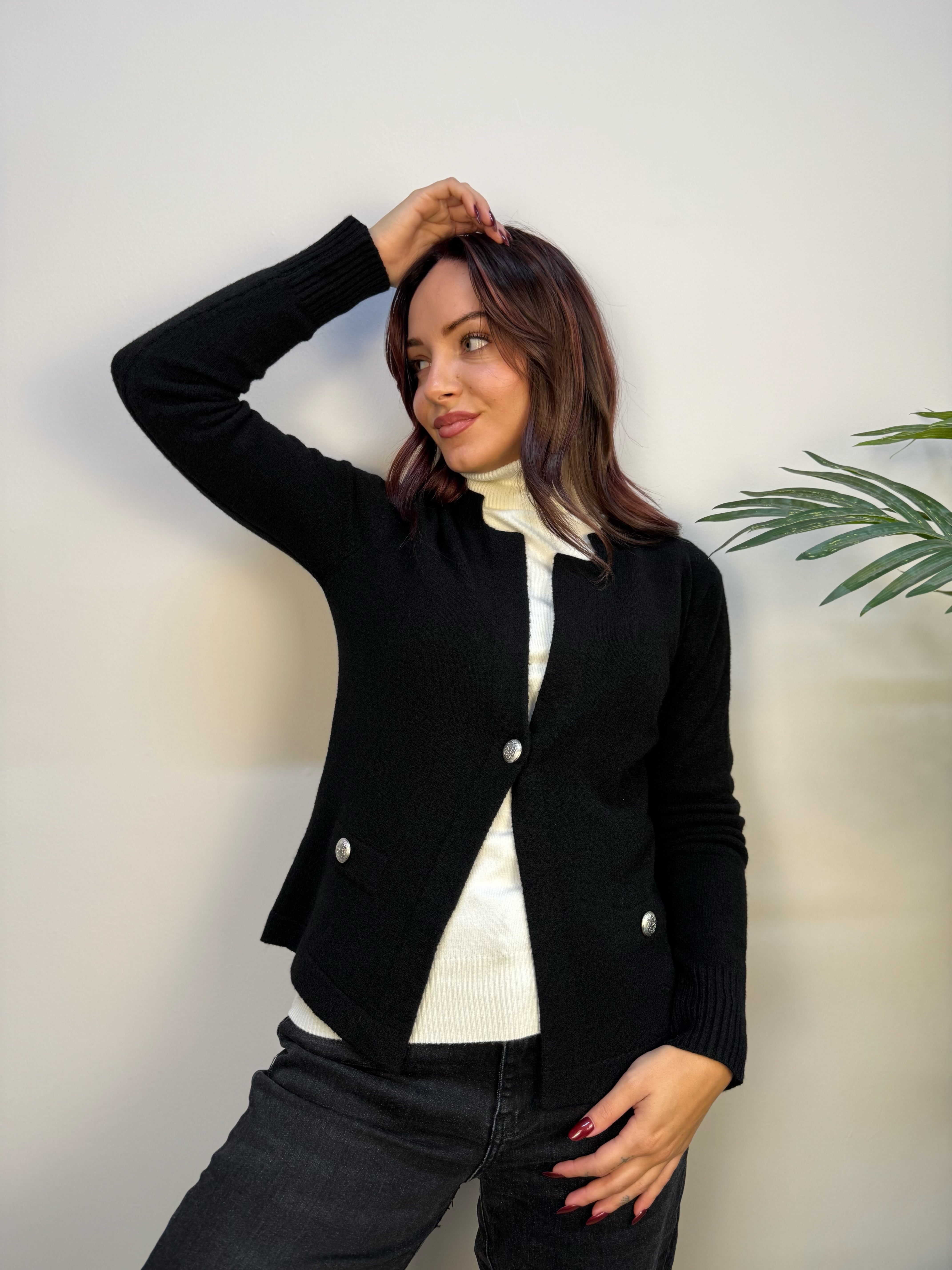 Un capo intramontabile con un tocco di luce: questo cardigan Susy Mix in filato morbido e delicato si distingue per la sua chiusura con bottone singolo e l’applicazione di bottoni decorativi in metallo dorato, che ne esaltano la linea con un’eleganza discreta. Disponibile in diverse varianti colore, è perfetto per completare qualsiasi look, dal più casual al più sofisticato. La vestibilità comoda e la texture piacevole lo rendono un alleato ideale per la stagione.