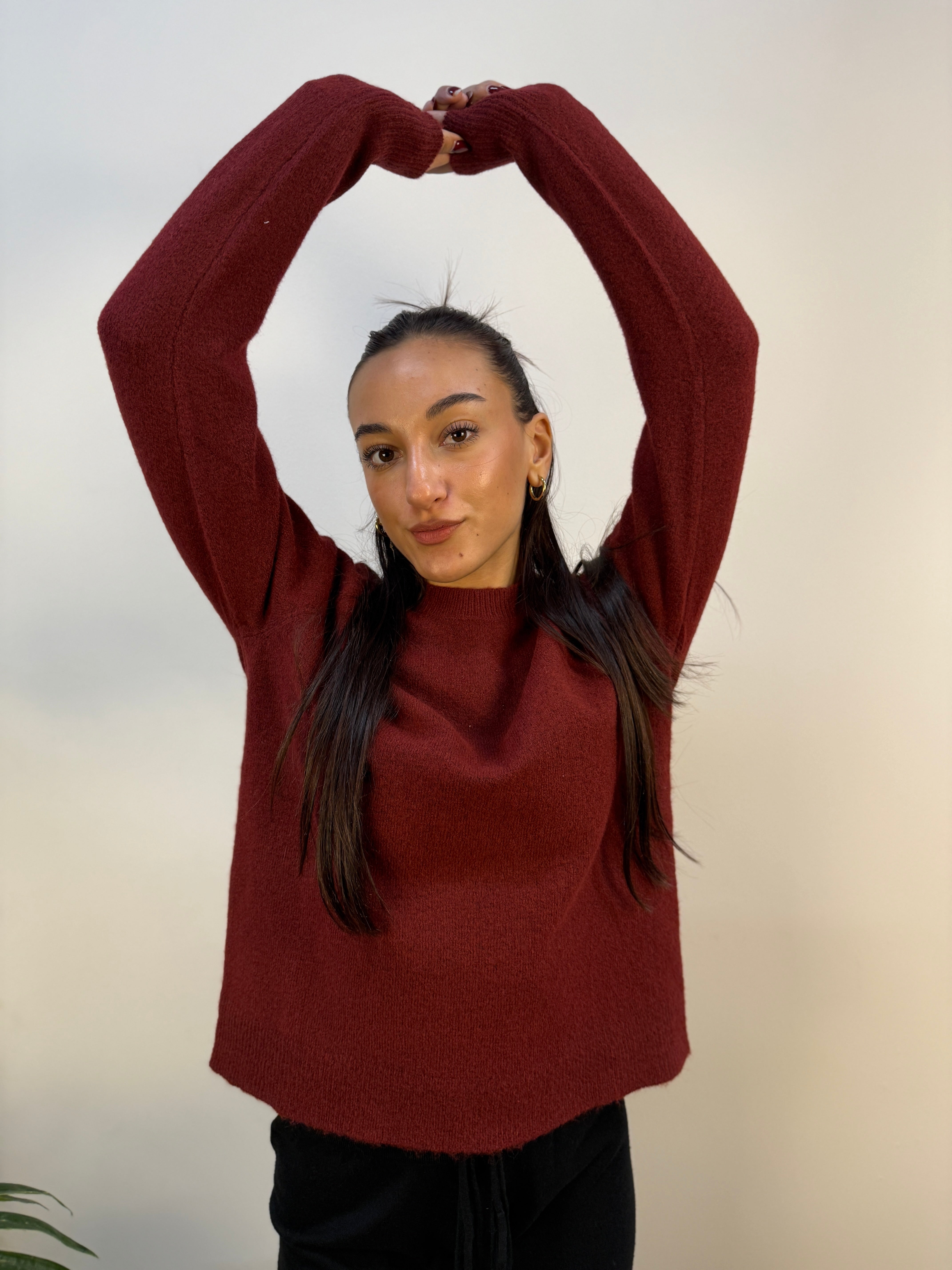 Maglia Blash a mezzo collo in tinta unita, realizzata con un filato morbido e caldo arricchito da una percentuale di lana che garantisce un comfort termico ideale per la stagione invernale. Il design è impreziosito da polsini e fascione a costine, che assicurano una perfetta vestibilità e un effetto avvolgente. Lo scollo a costine valorizza il taglio semplice ma raffinato, mentre la struttura super elasticizzata segue armoniosamente le linee del corpo, offrendo libertà di movimento e una sensazione di benessere per tutto il giorno.