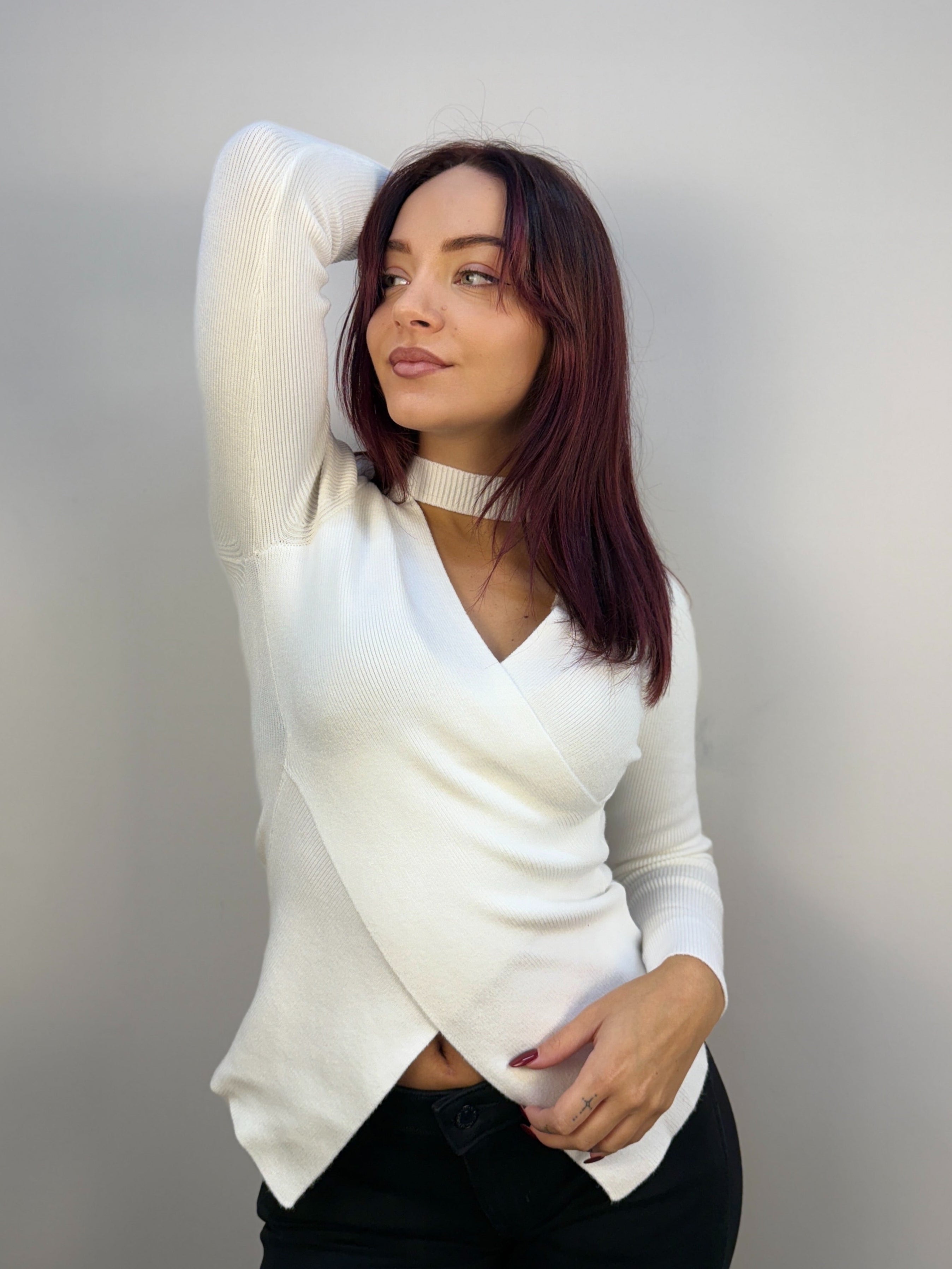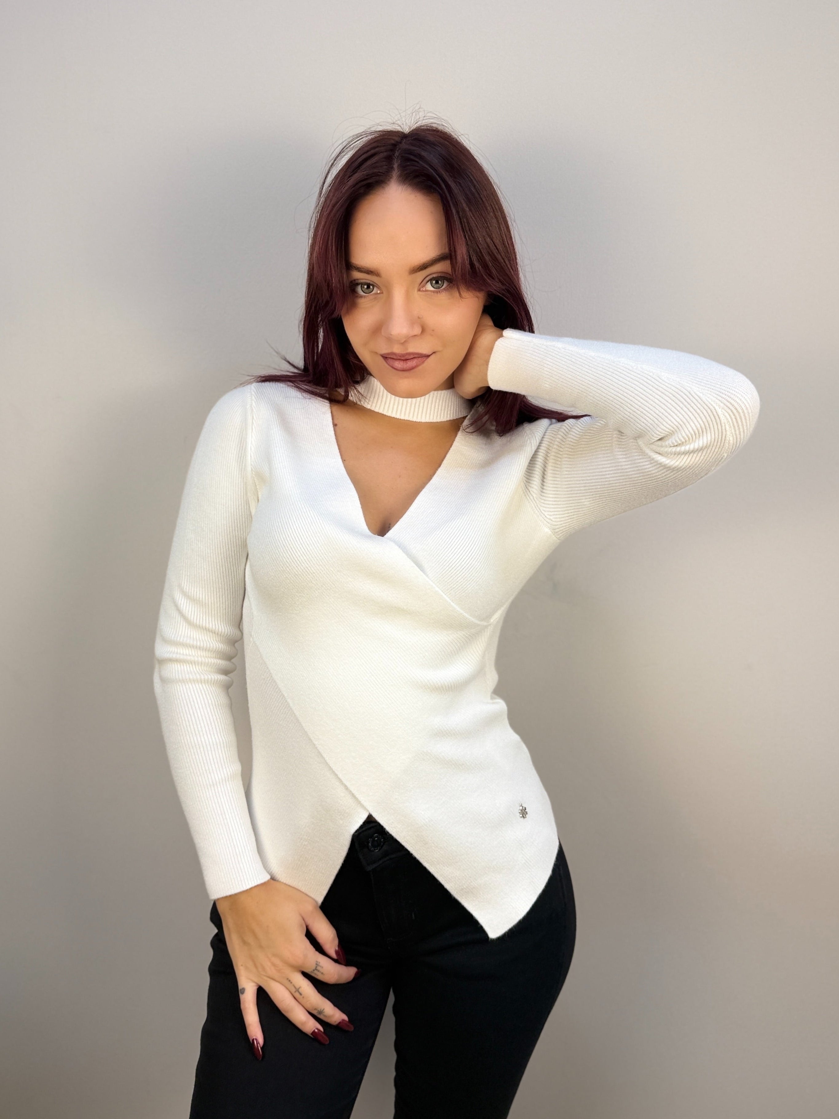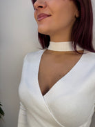 Maglia con scollo incrociato e choker removibile
