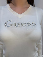 Essenziale ma raffinata, questa maglia a manica lunga in tinta unita è proposta nelle varianti panna o nero. Il design presenta uno scollo a V, con polsini, scollo e fascione elasticizzati a costine, per un fit comodo e strutturato.