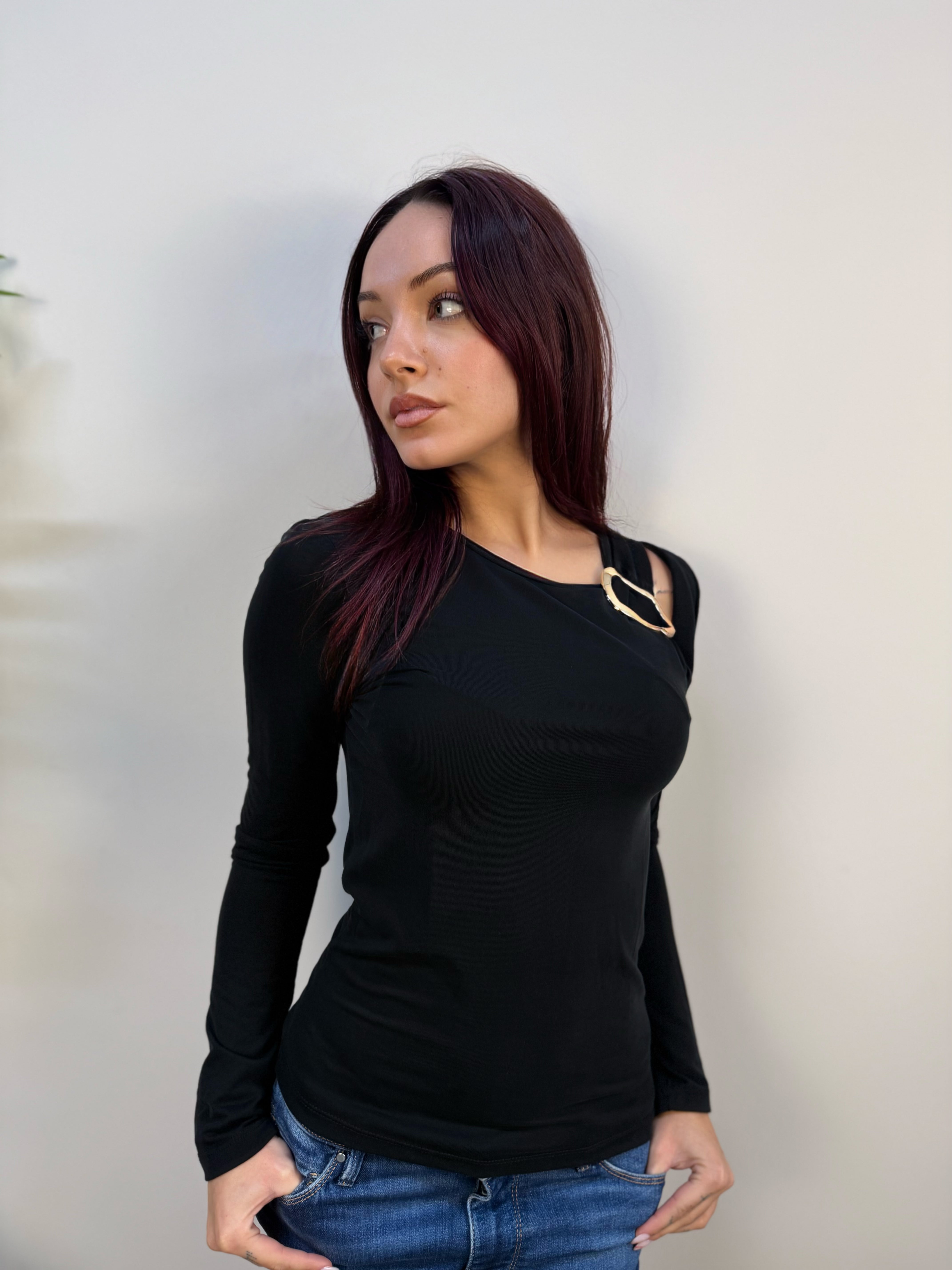 Maglia RINASCIMENTO a maniche lunghe con cut-out sulla spalla sinistra e dettaglio in oro.
