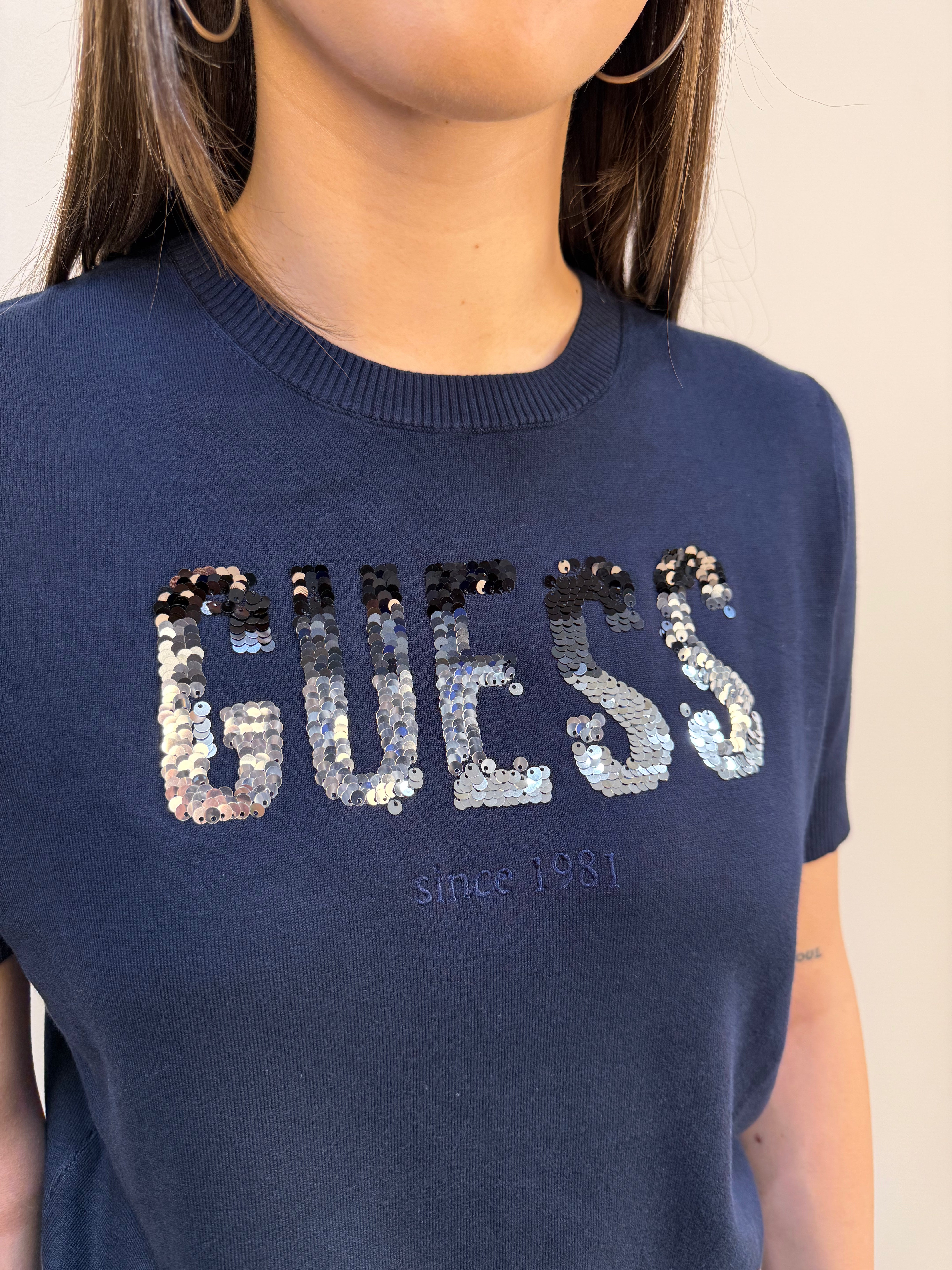 Maglia in tessuto morbido ed elasticizzato con logo in paillettes